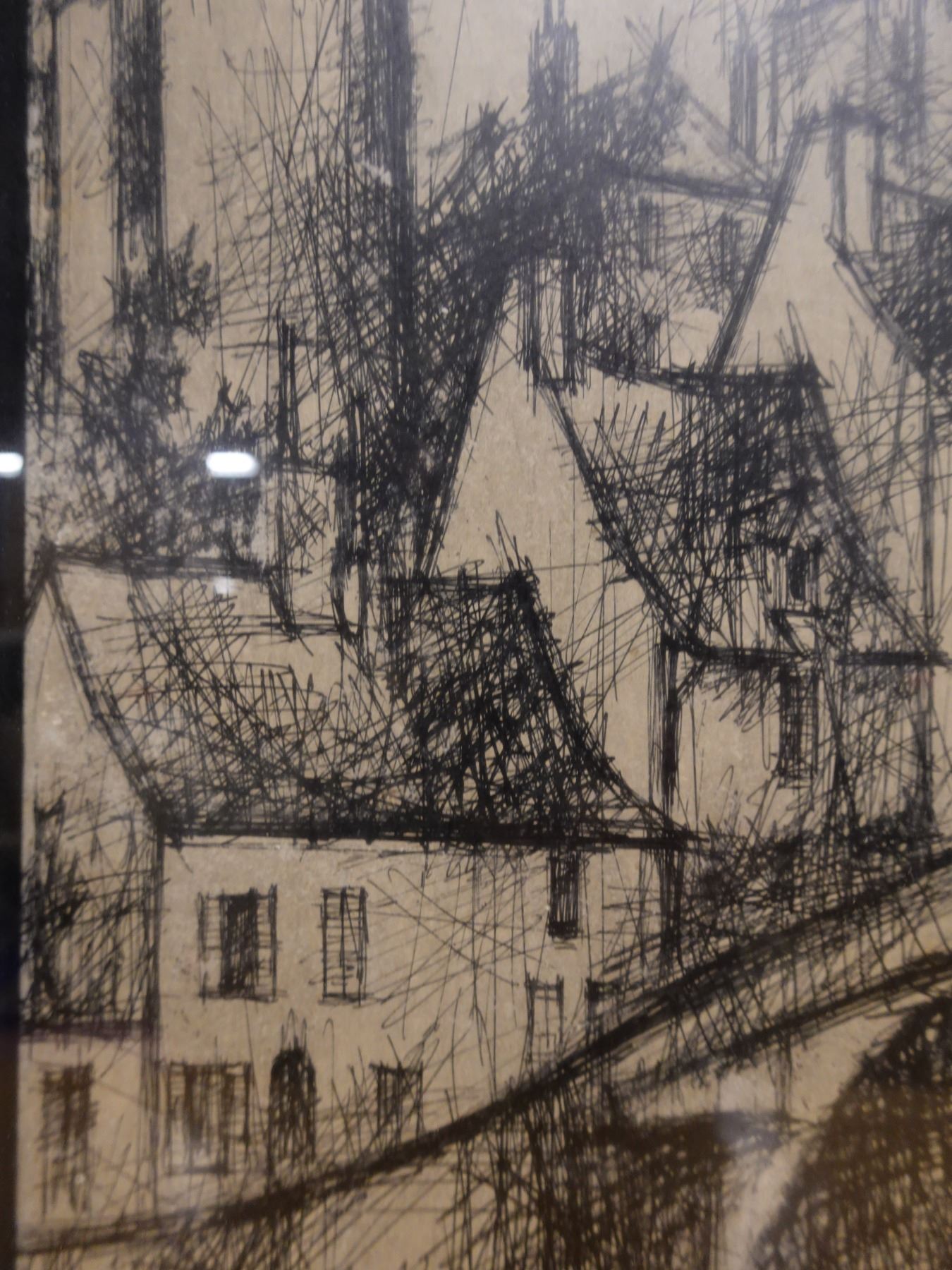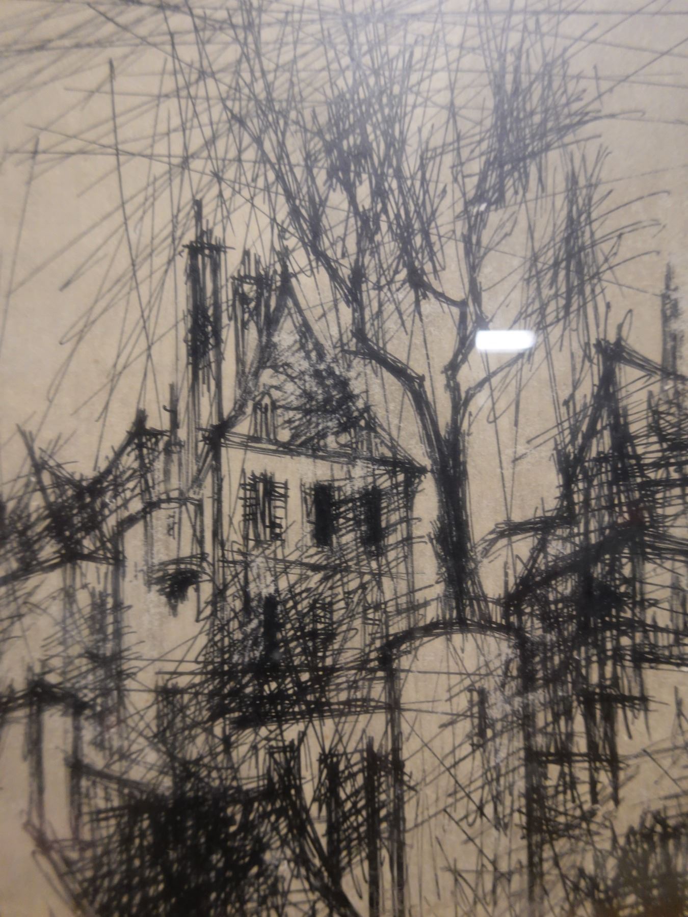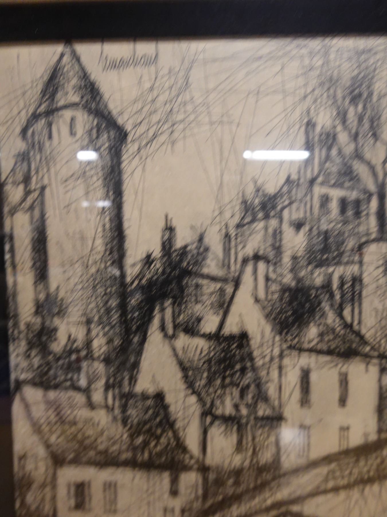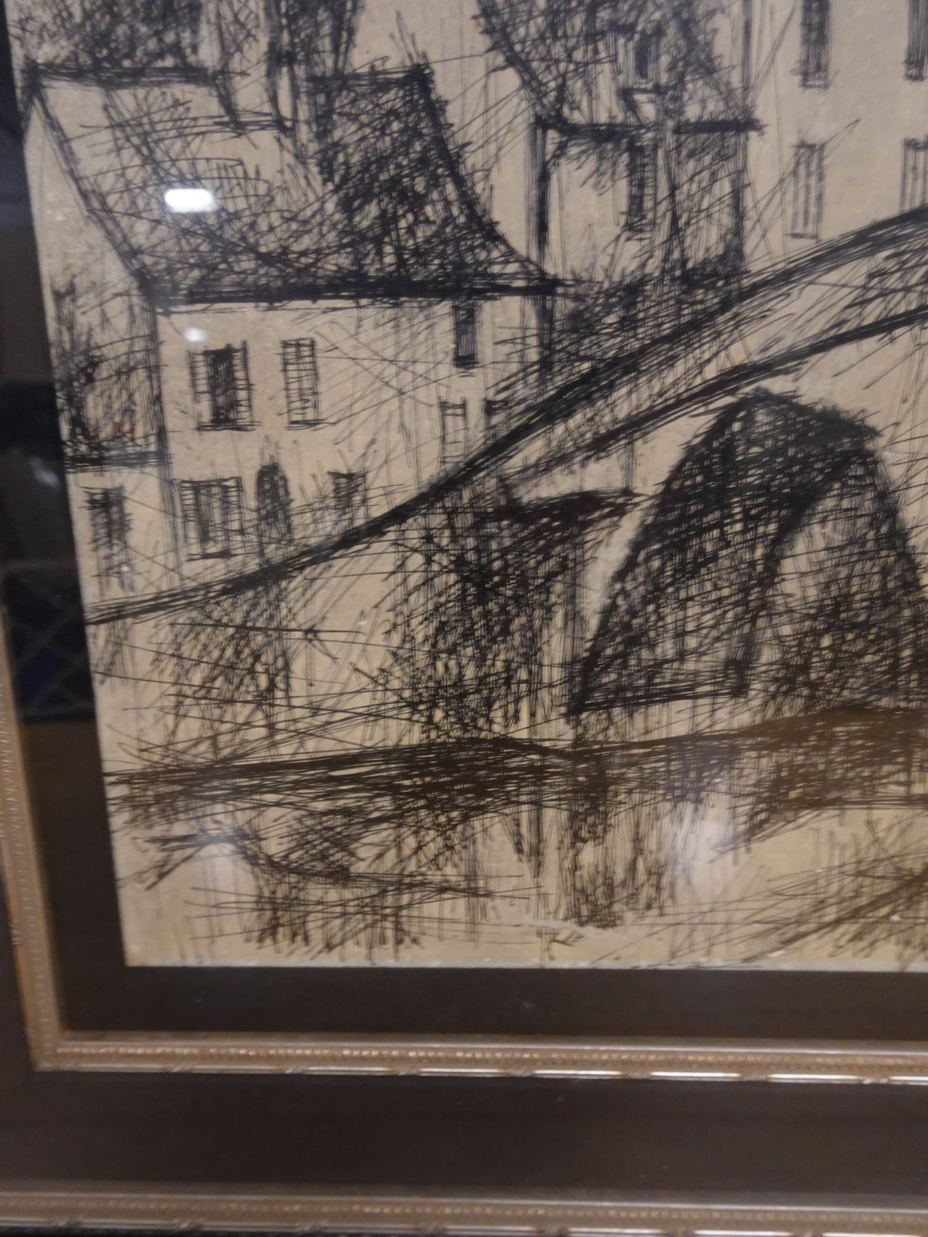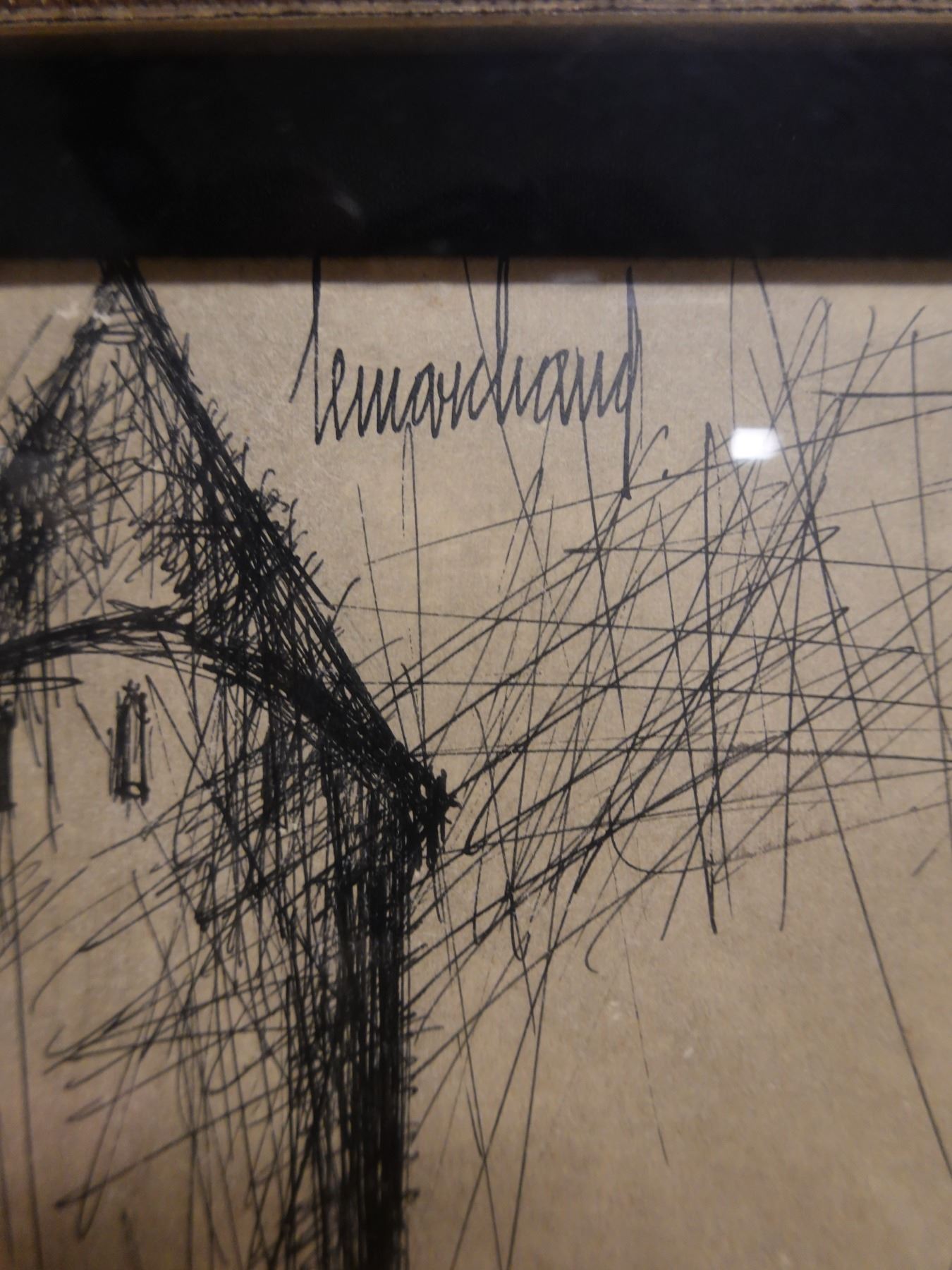 Landscape Scene Sketch Signed by Artist Lemarchand (?), Framed 19" x 26"