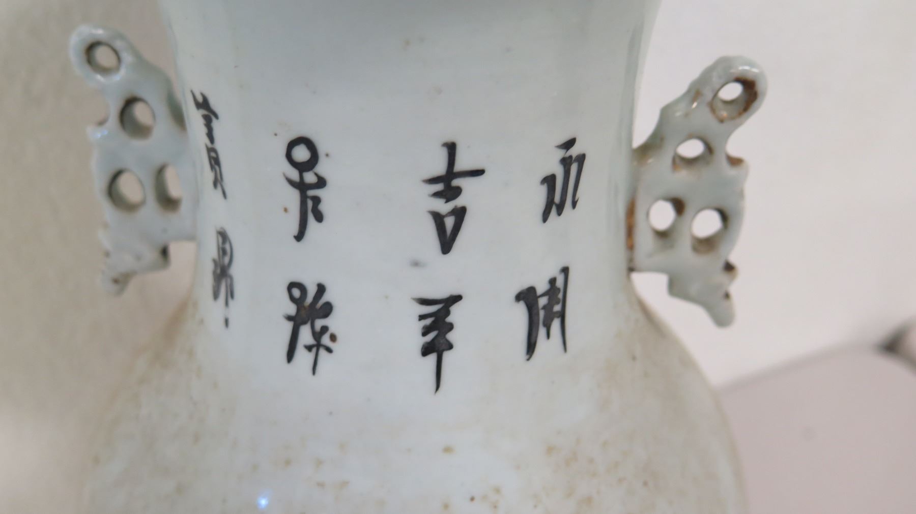 Large 17" White Red Porcelain Oriental Vase w/ Dragon