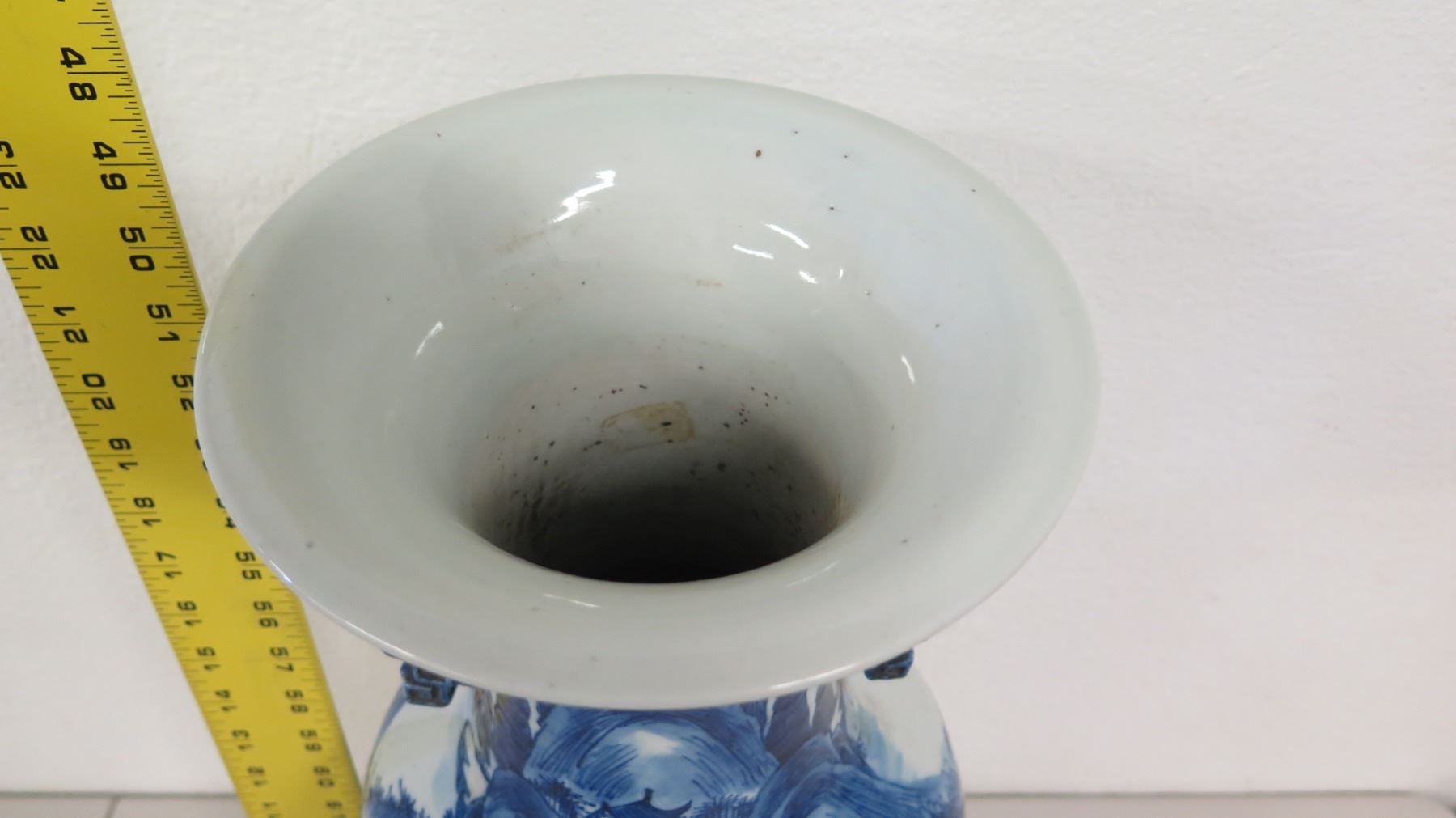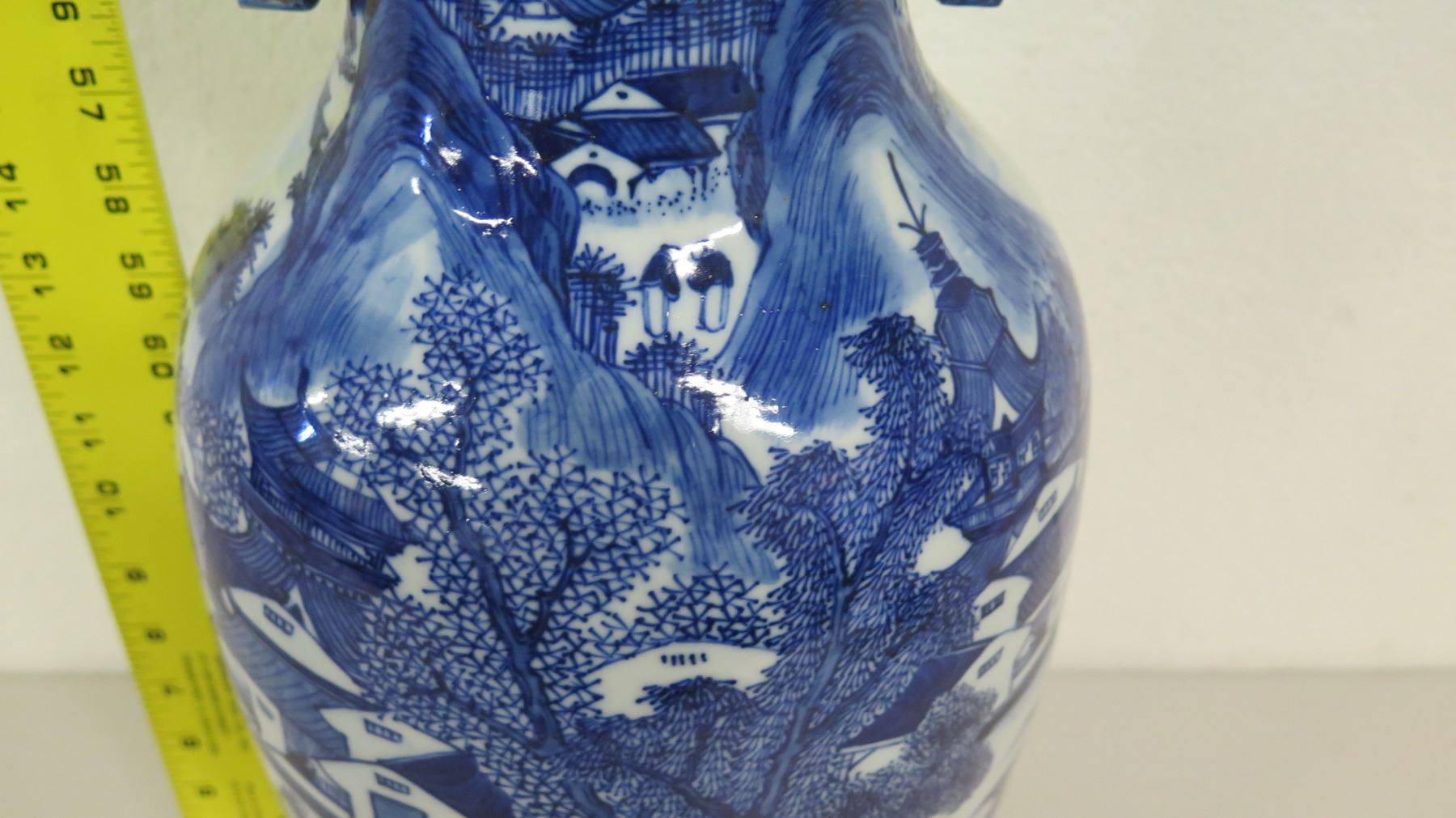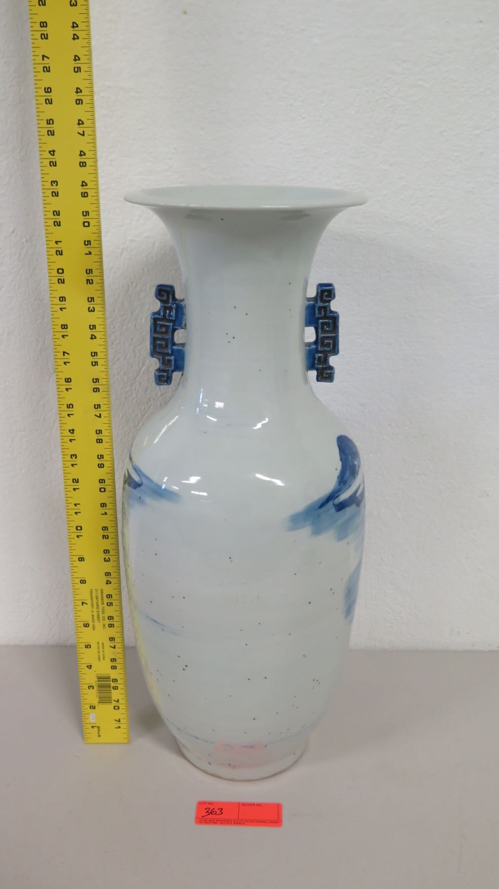 Large 23" White Blue Porcelain Vase - Oriental Scene