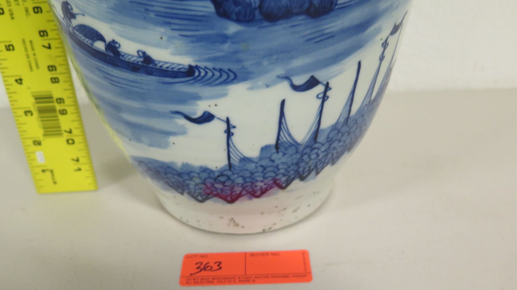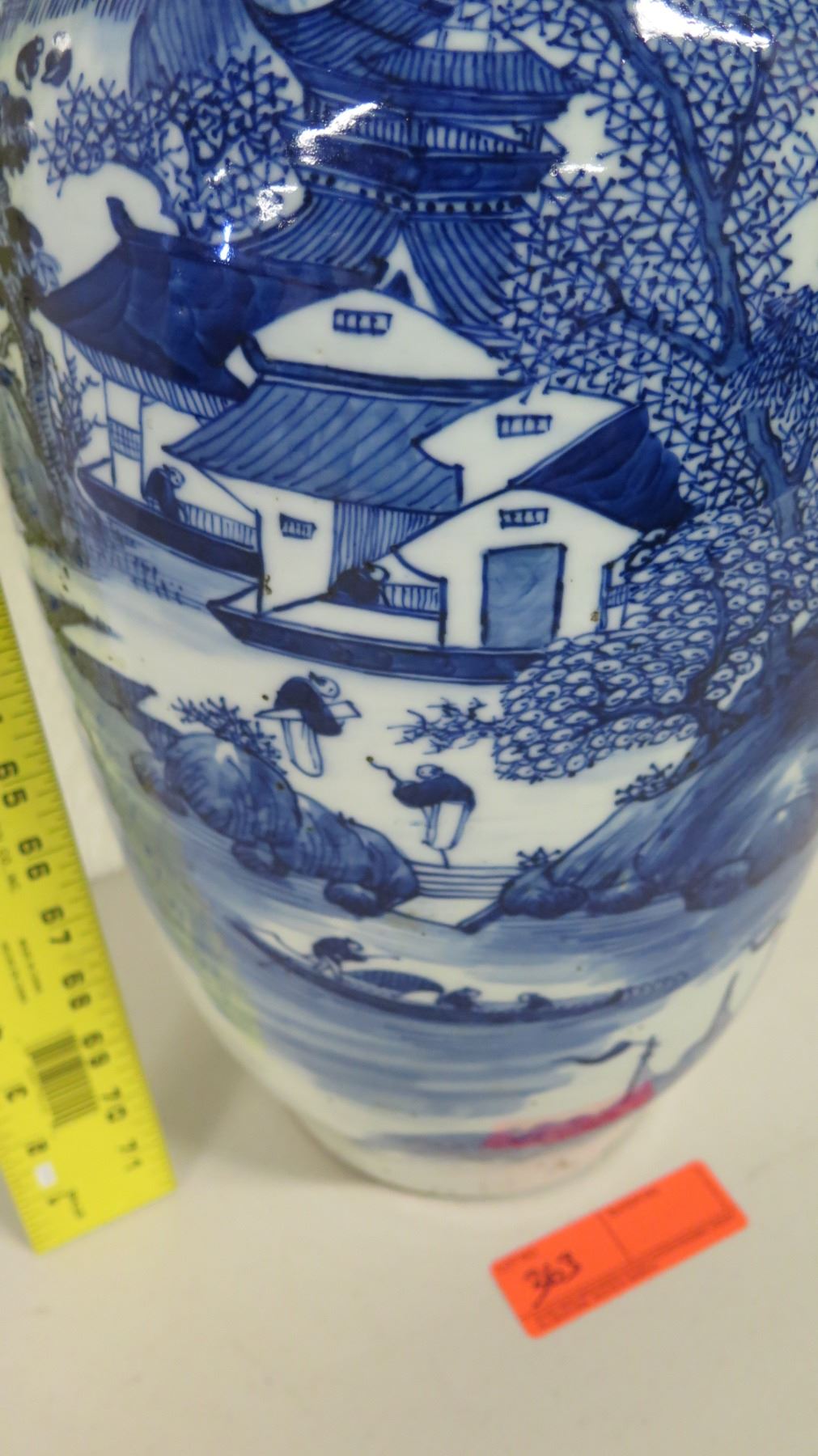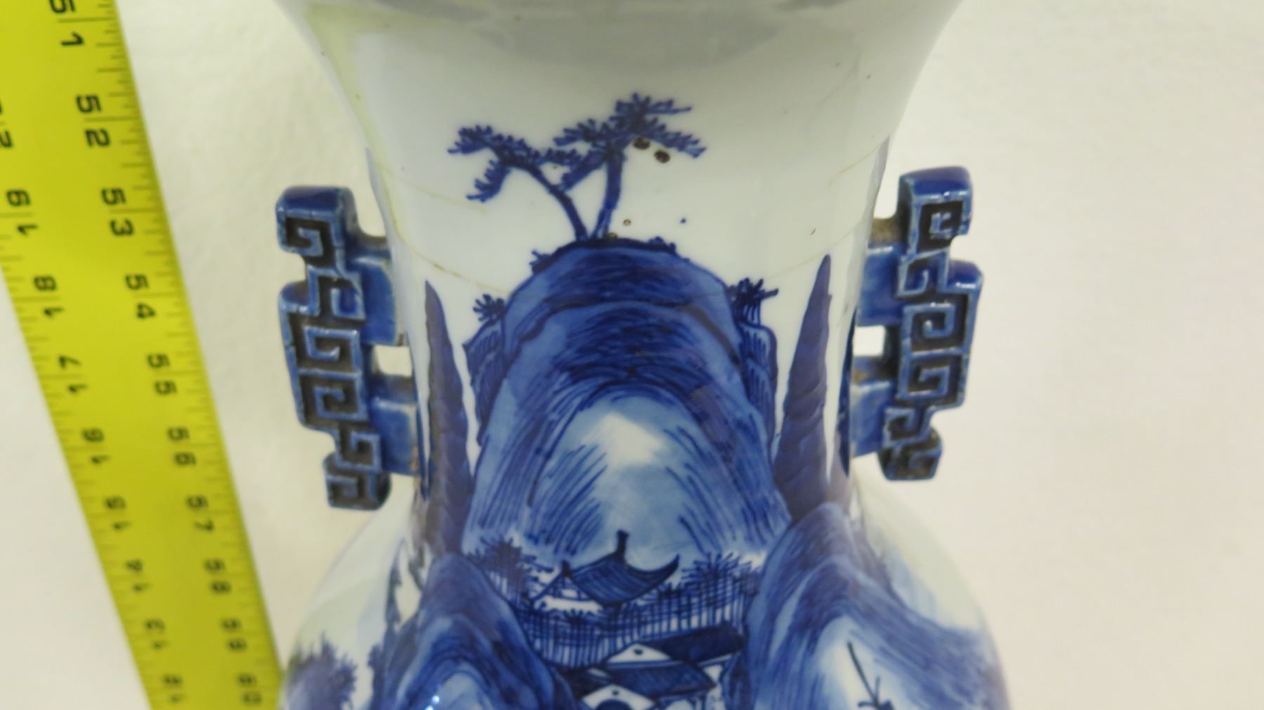 Large 23" White Blue Porcelain Vase - Oriental Scene