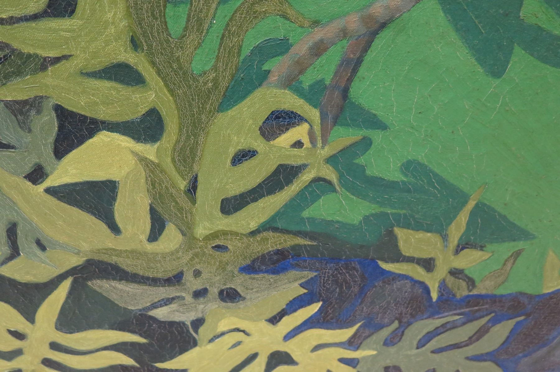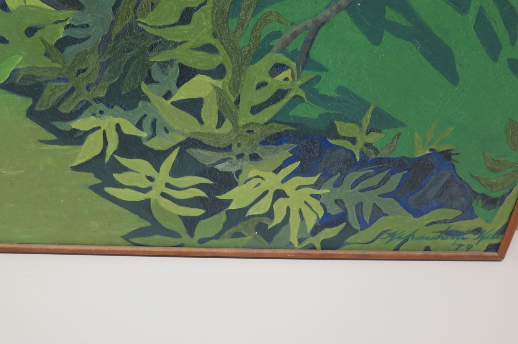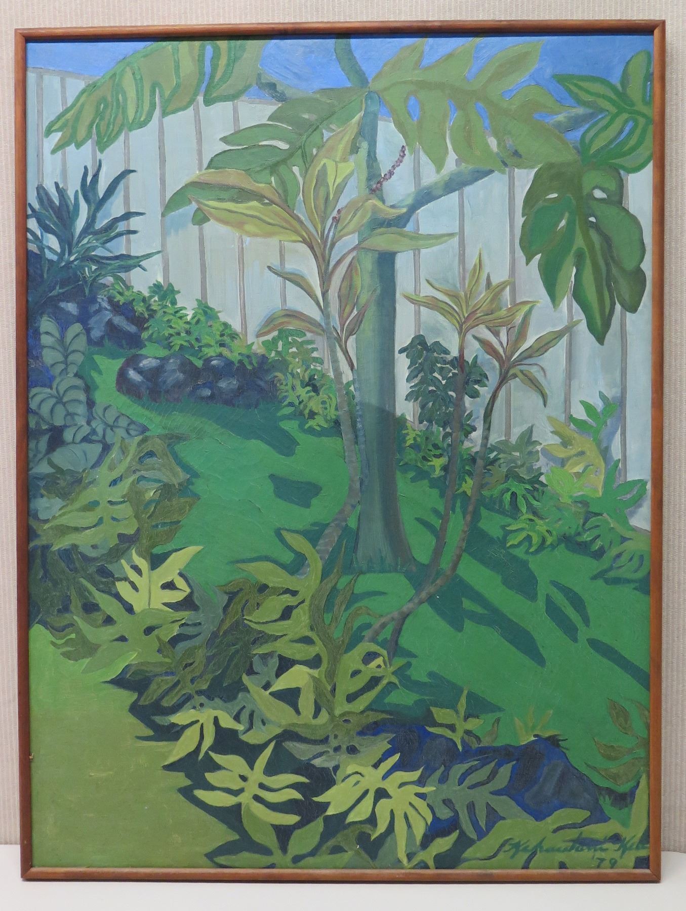 Large 37x49 Framed Original Painting on Canvas: Tropical Foliage, Signed by Artist Keaulani Kea '79