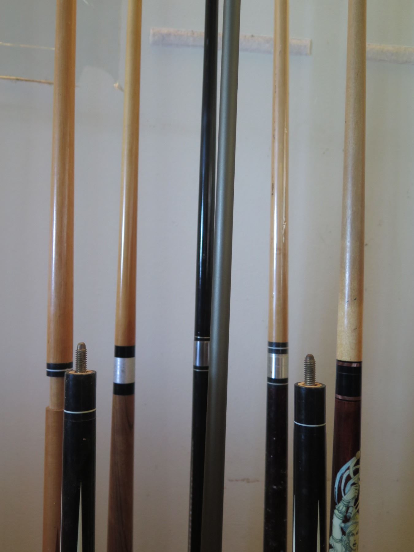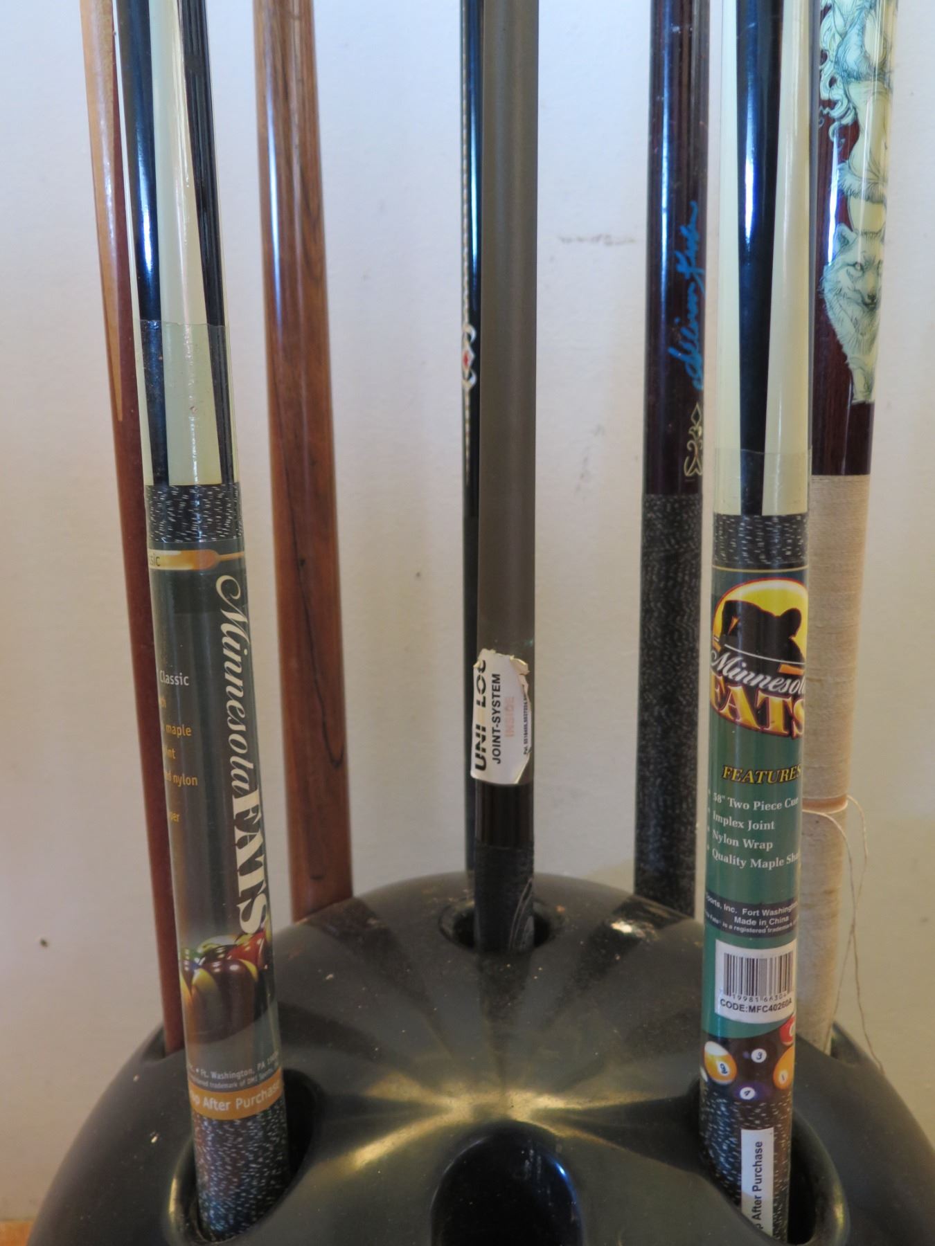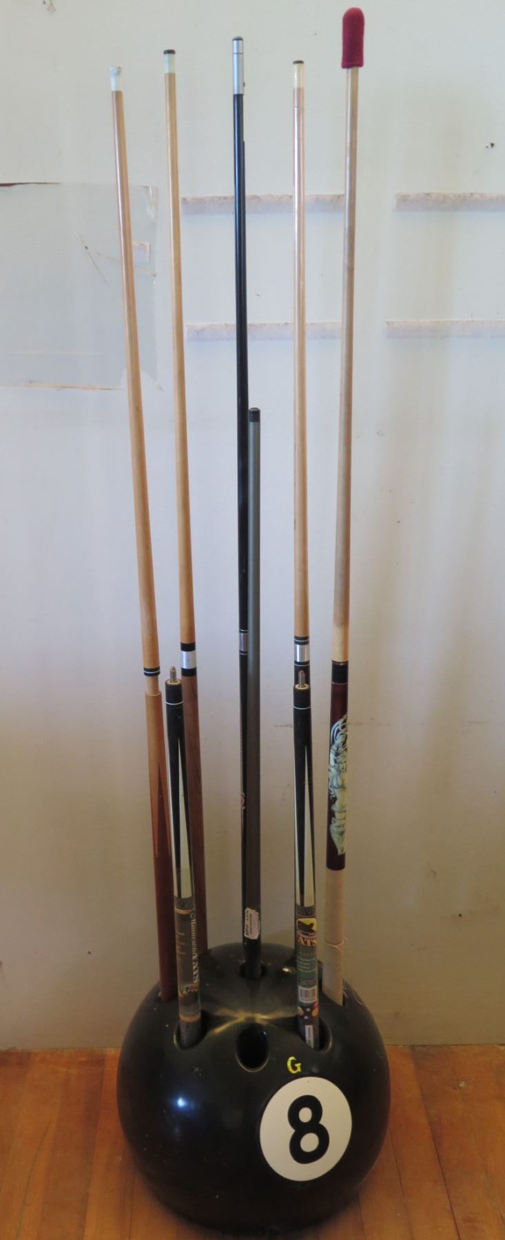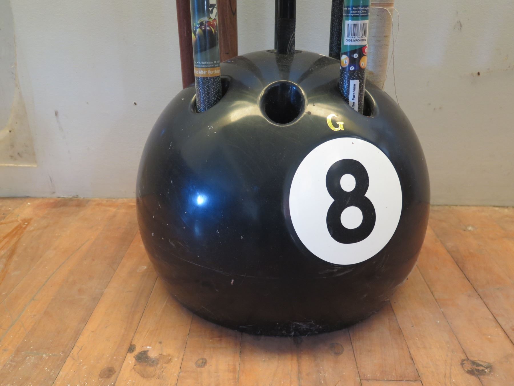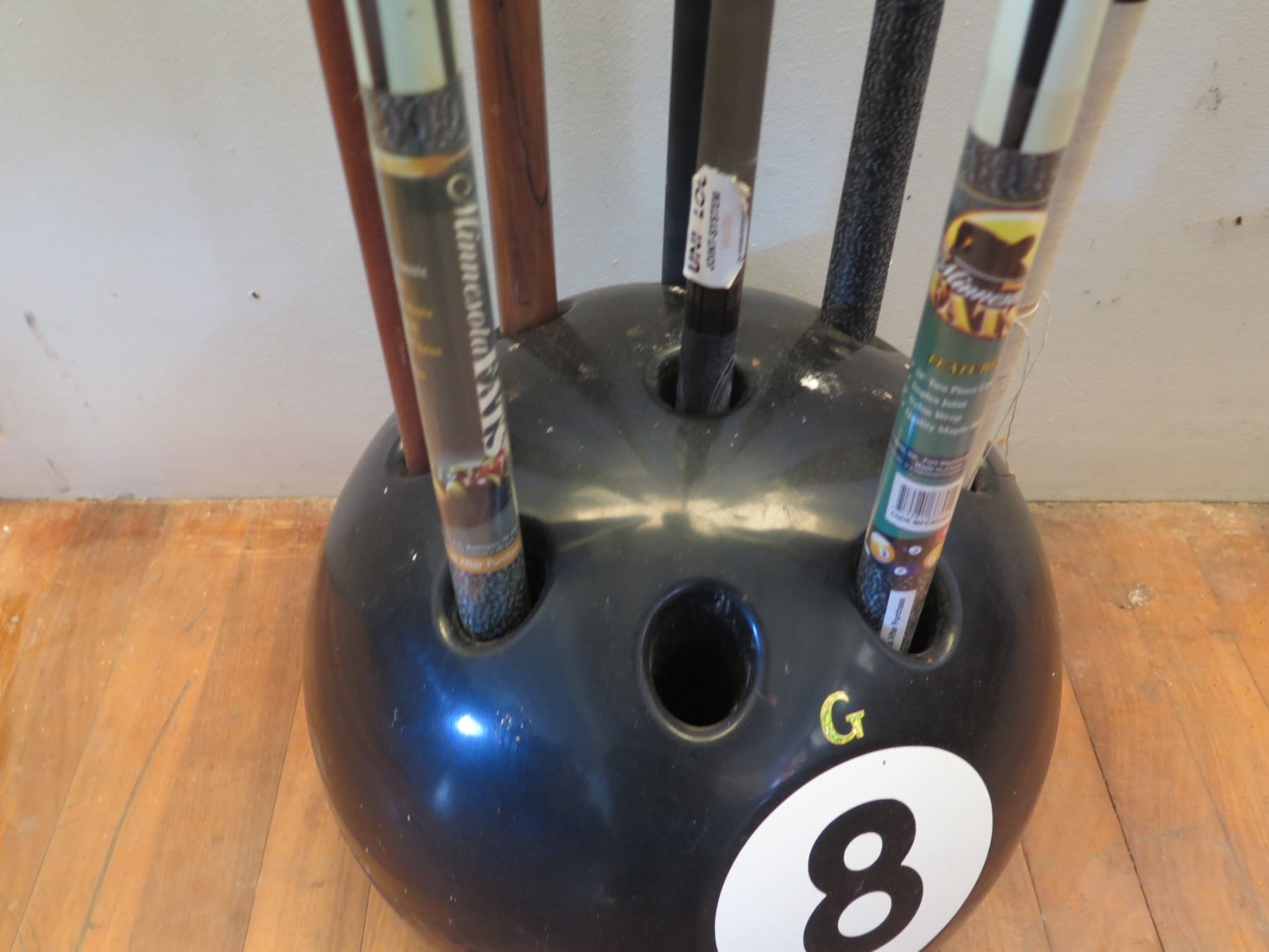 Large 8-Ball Cue Stick Holder w/ 5+ Cue Sticks 60"H