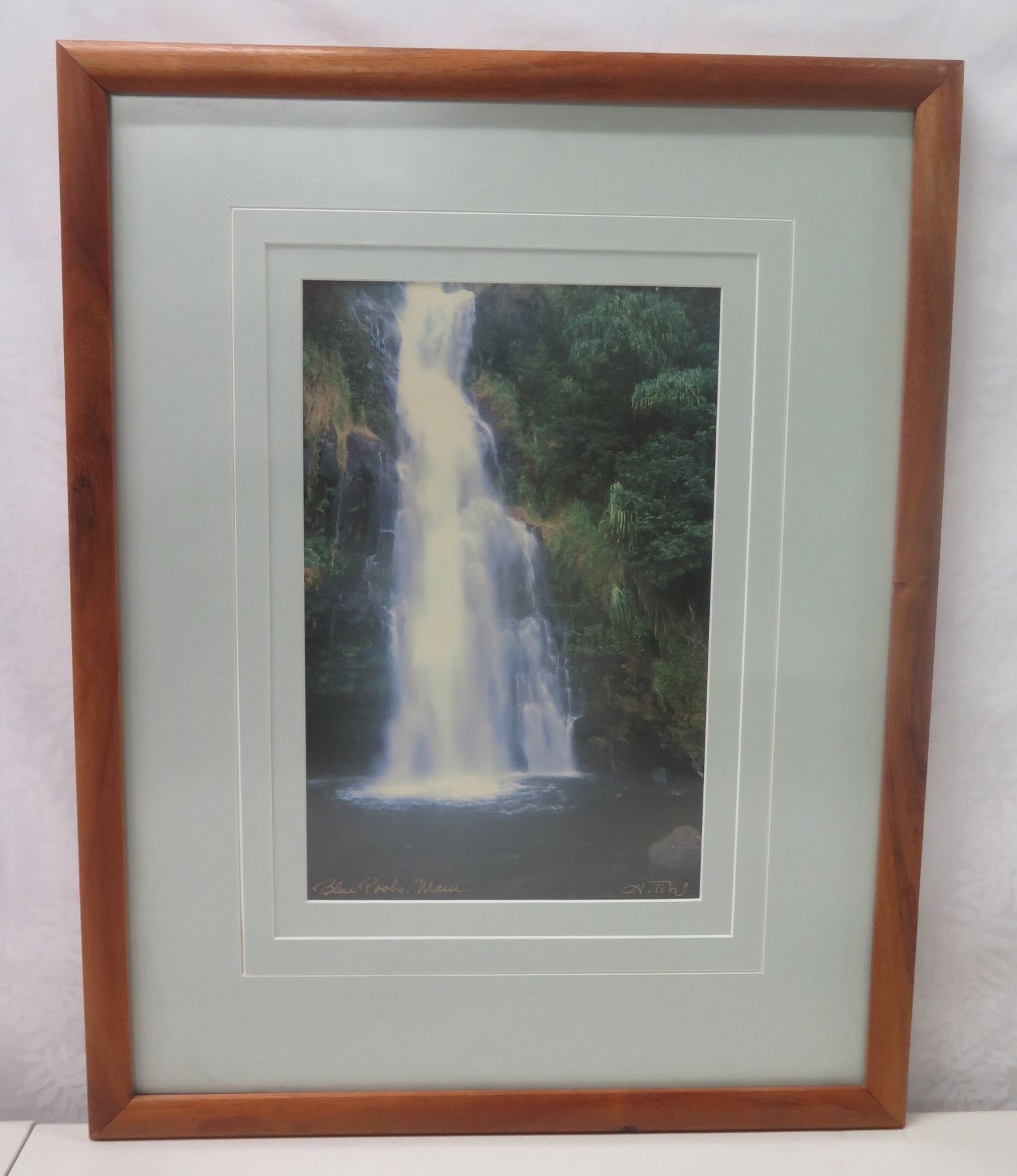 Large Blue Pools, Maui Artwork Signed by Artist, Wood Framed