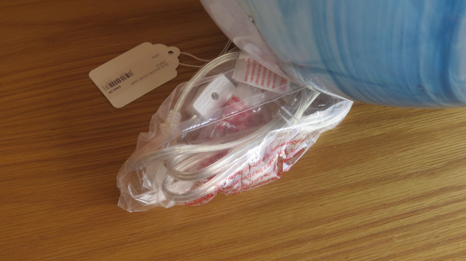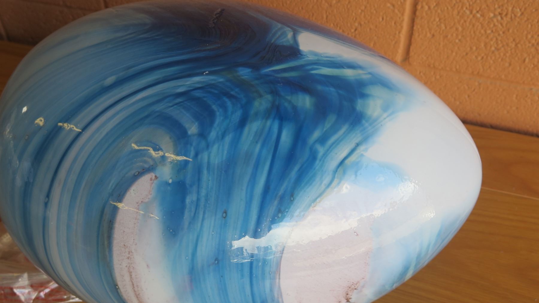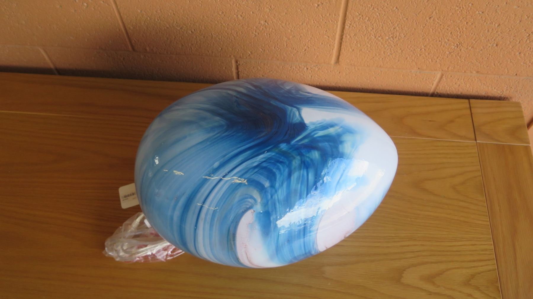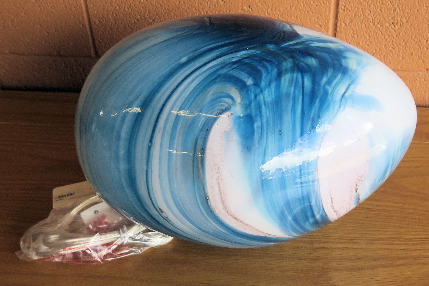 Large Blue/White 'Watercolor' Swirl Glass Lamp (Retail $360)