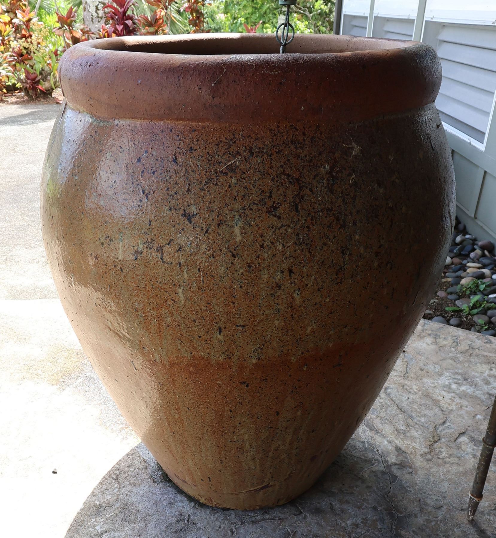 Large Brown Planter Pot 22" Dia, 34"H (rain chain not included)