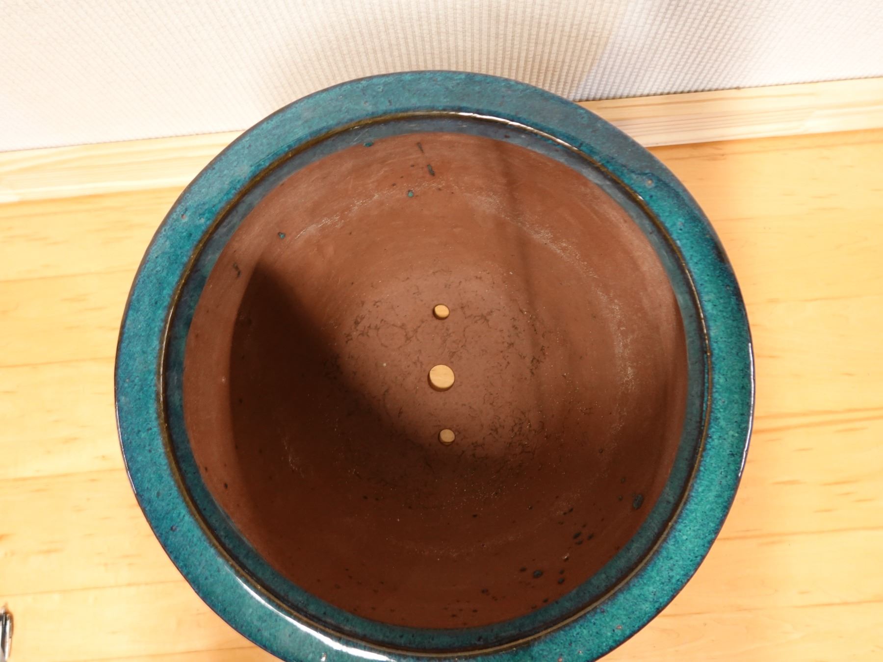 Large Ceramic Blue Glazed Koi Garden Pot 15" Dia, 14"H