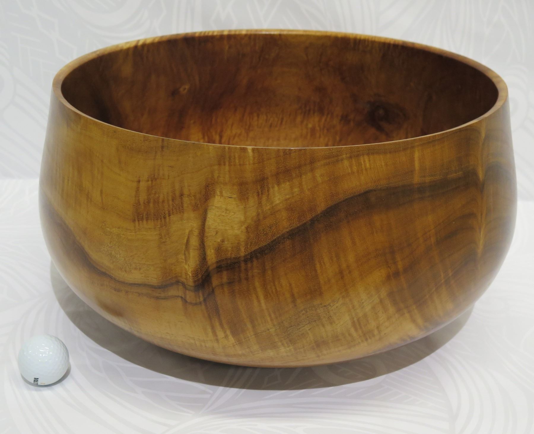 Large Curly Koa Wood Bowl, Artist Robert W. Butts, Approx. 18" Dia, 10" Tall