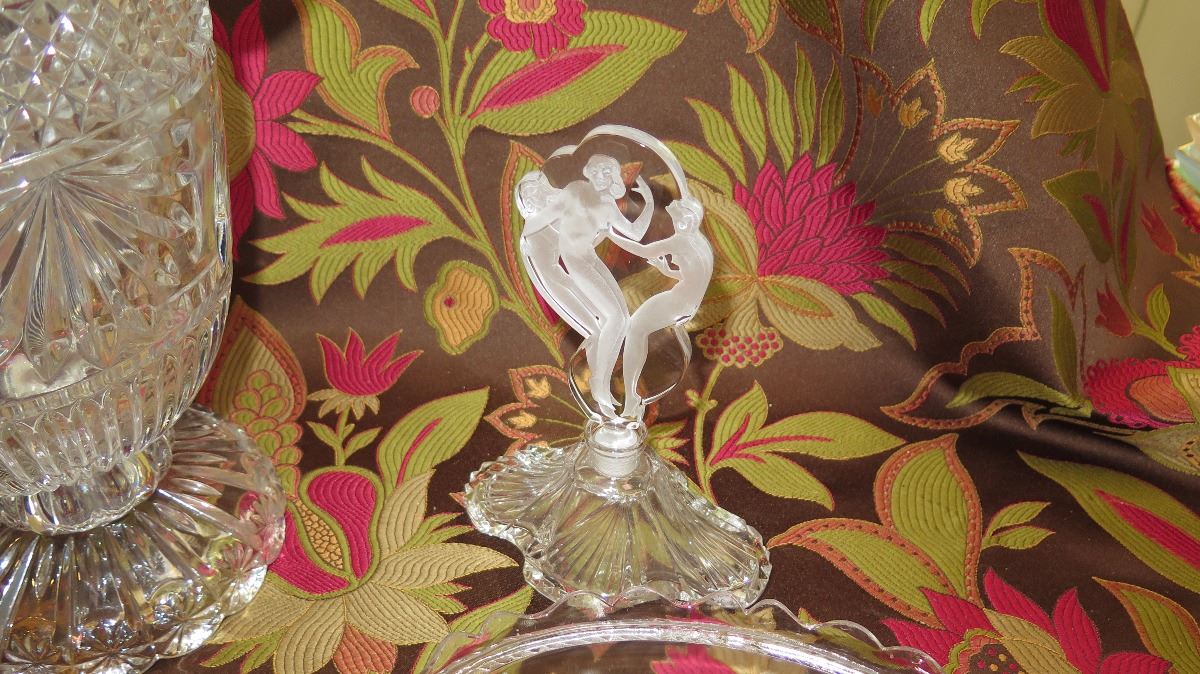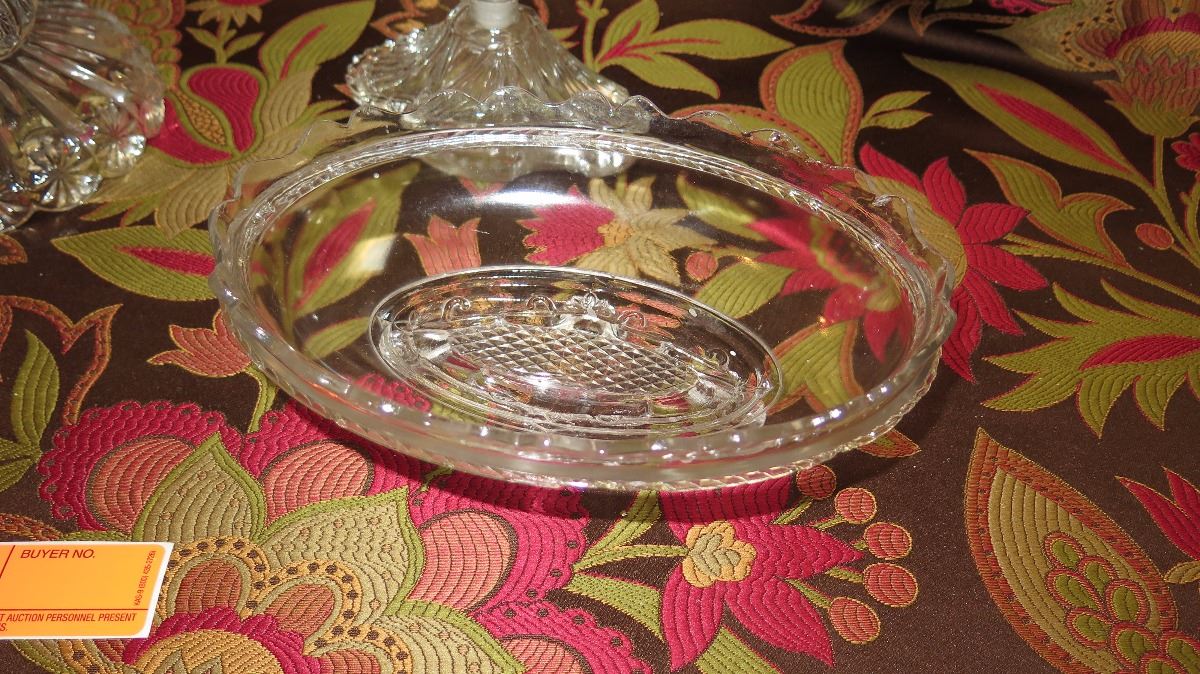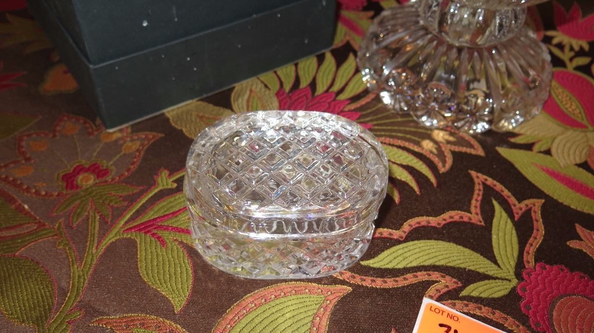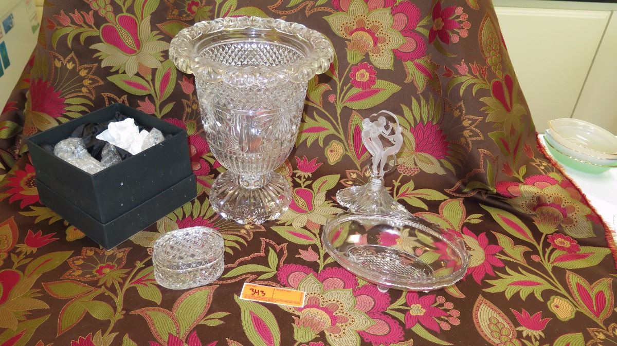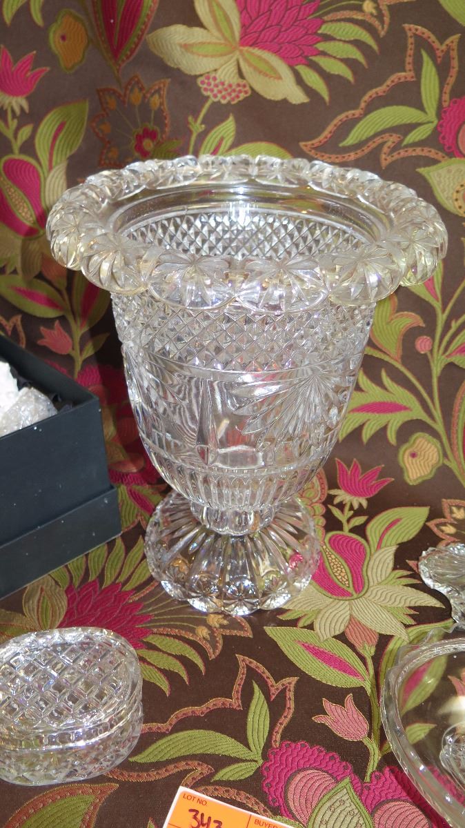 Large Cut Crystal Flower Urn, Oval Dish, Oval Trinket Box, Etch Glass Perfume Bottle