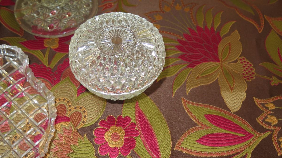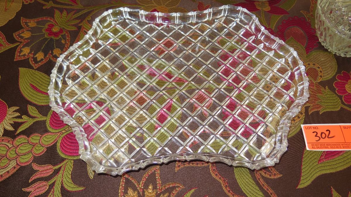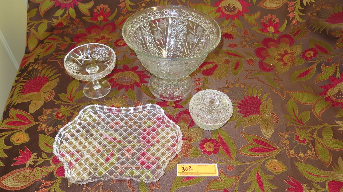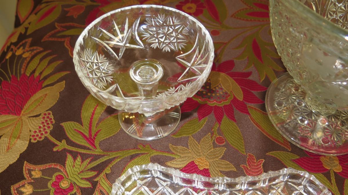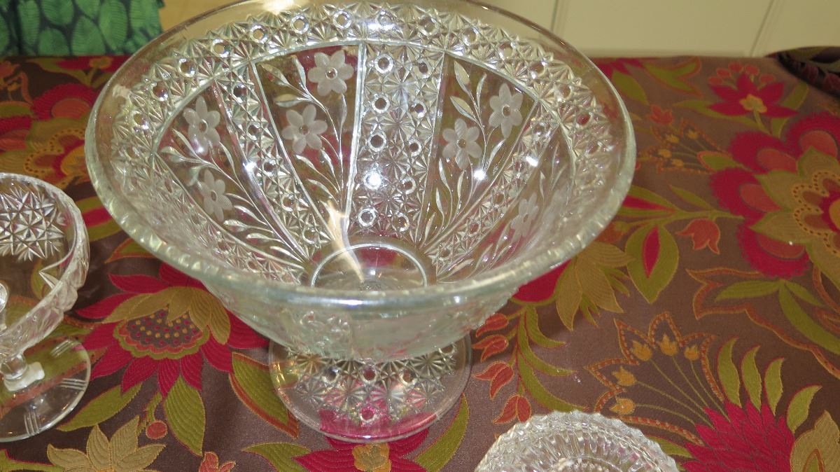Large Cut Crystal Stemmed Bowl (Approx. 7.5" H), Lidded Bowl, Tray, Candy Dish