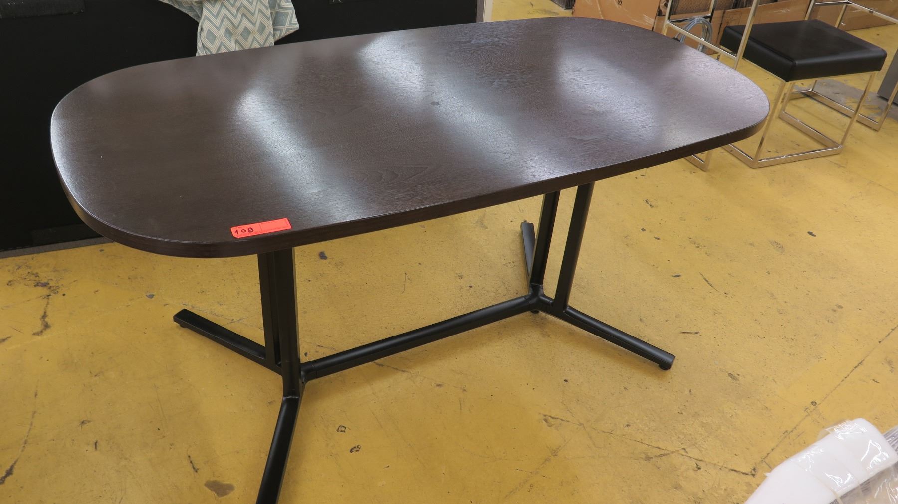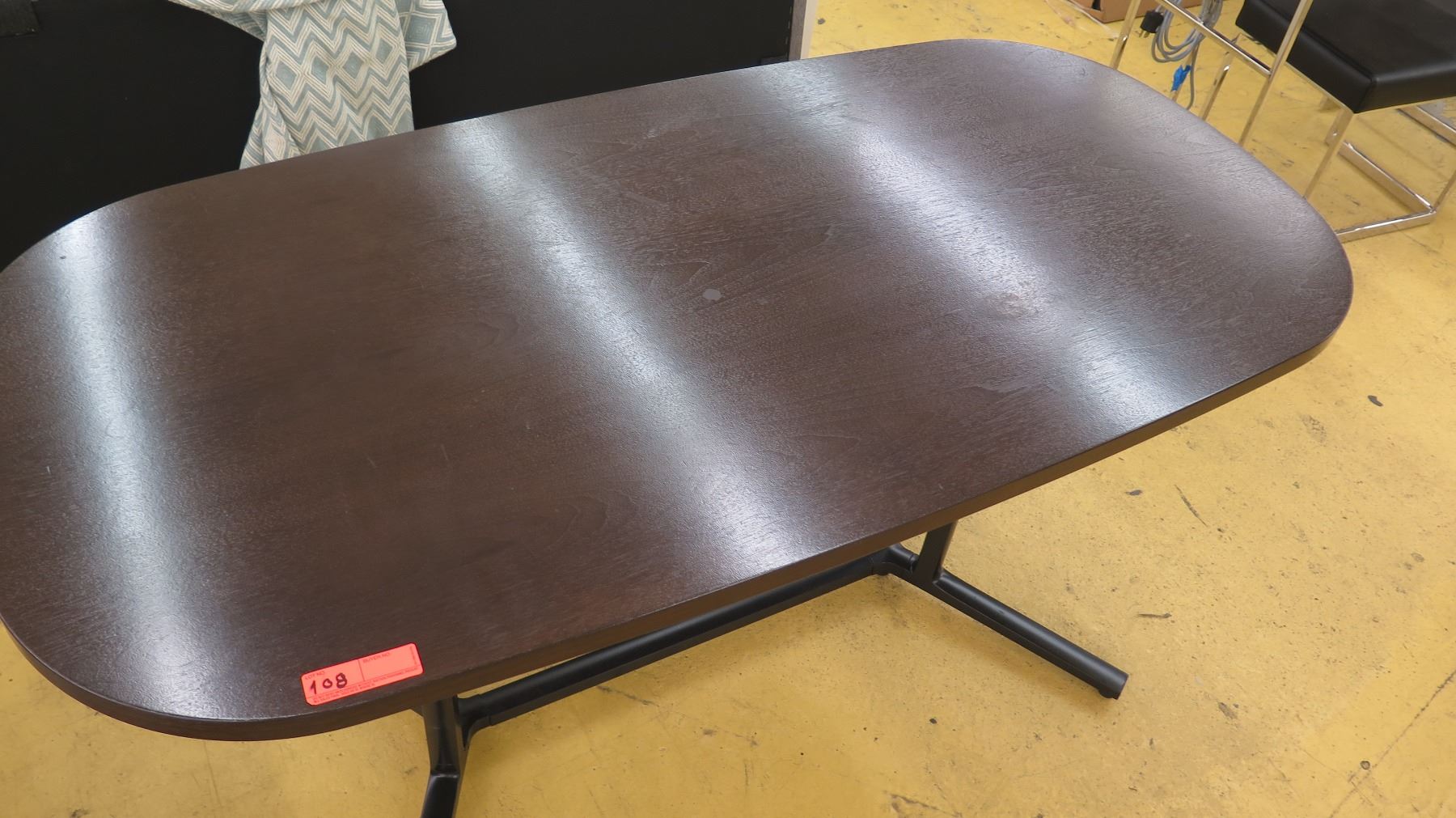 Large Dark Wood Table w/Black Base, Rounded Corners, 5ft L, 30" W, 28.5" Tall