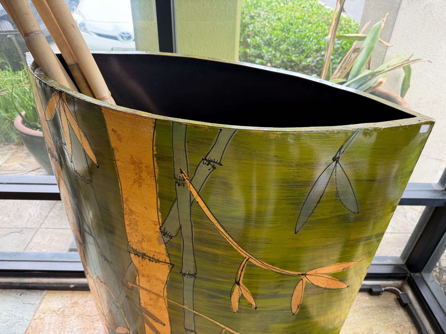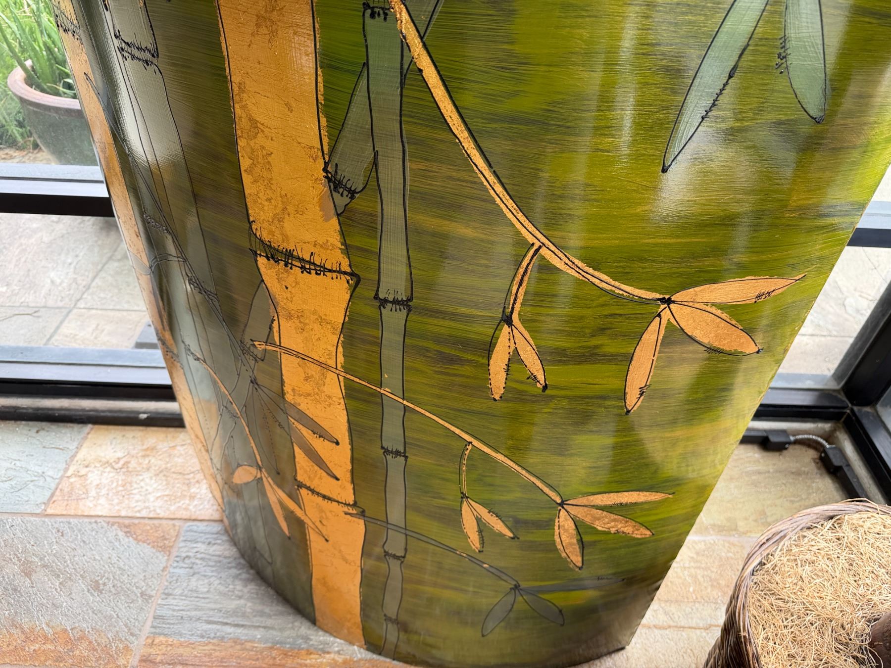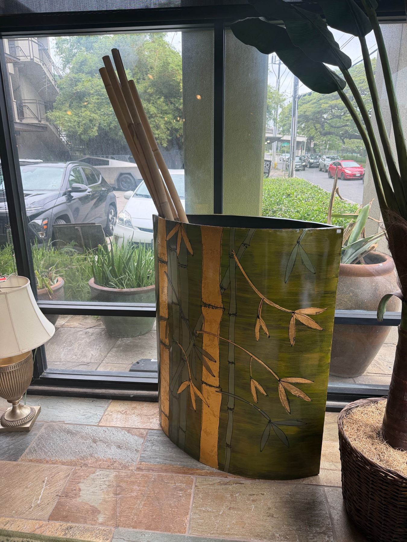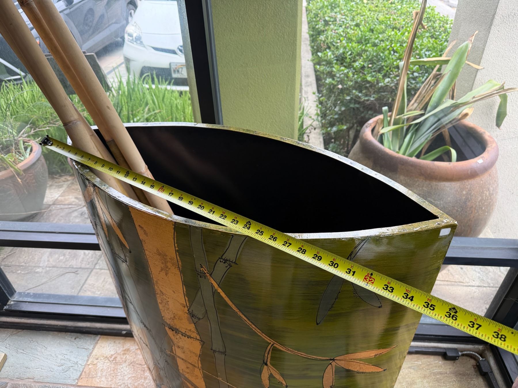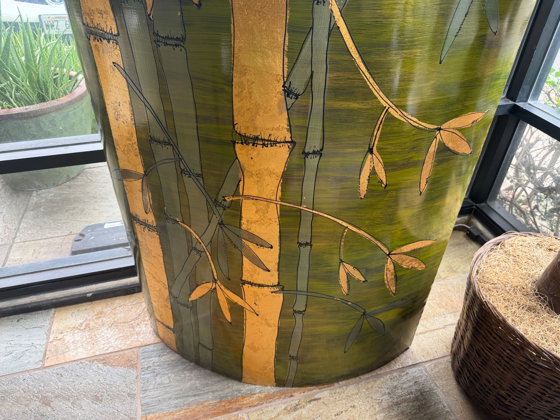 Large Decorative Jar w/ Bamboo Design & Bamboo Canes 35" x 15" x 48"H (top of container)