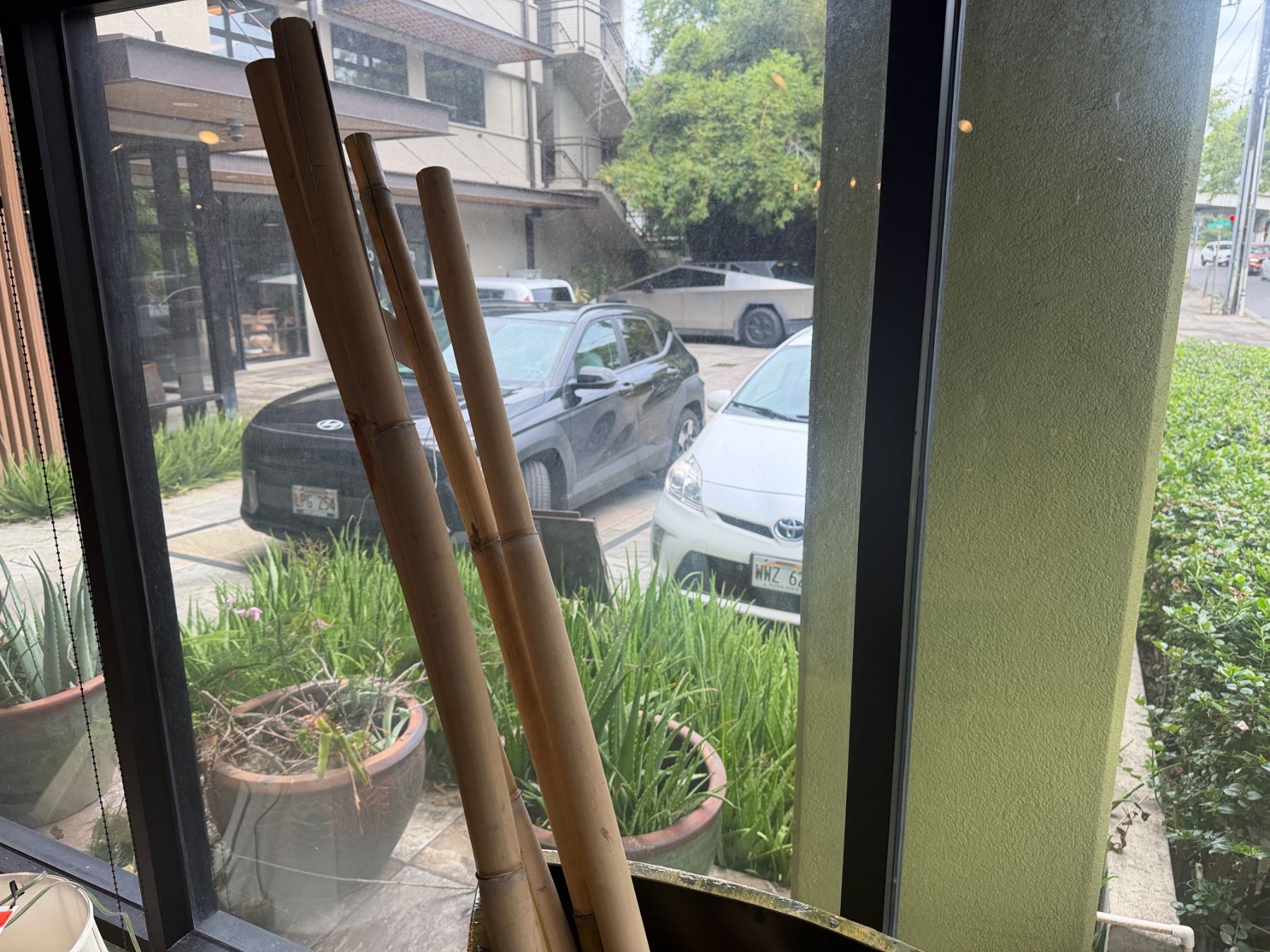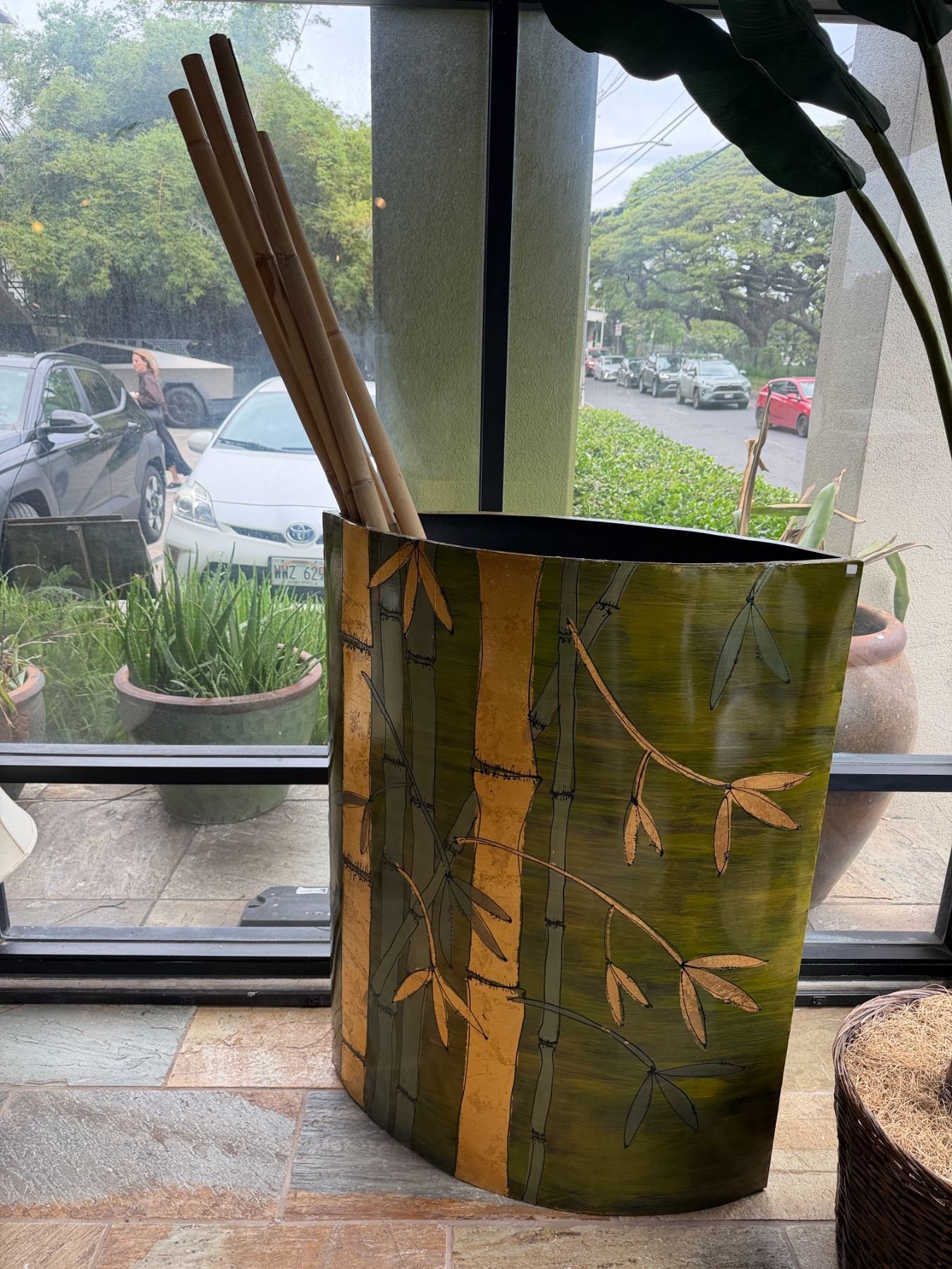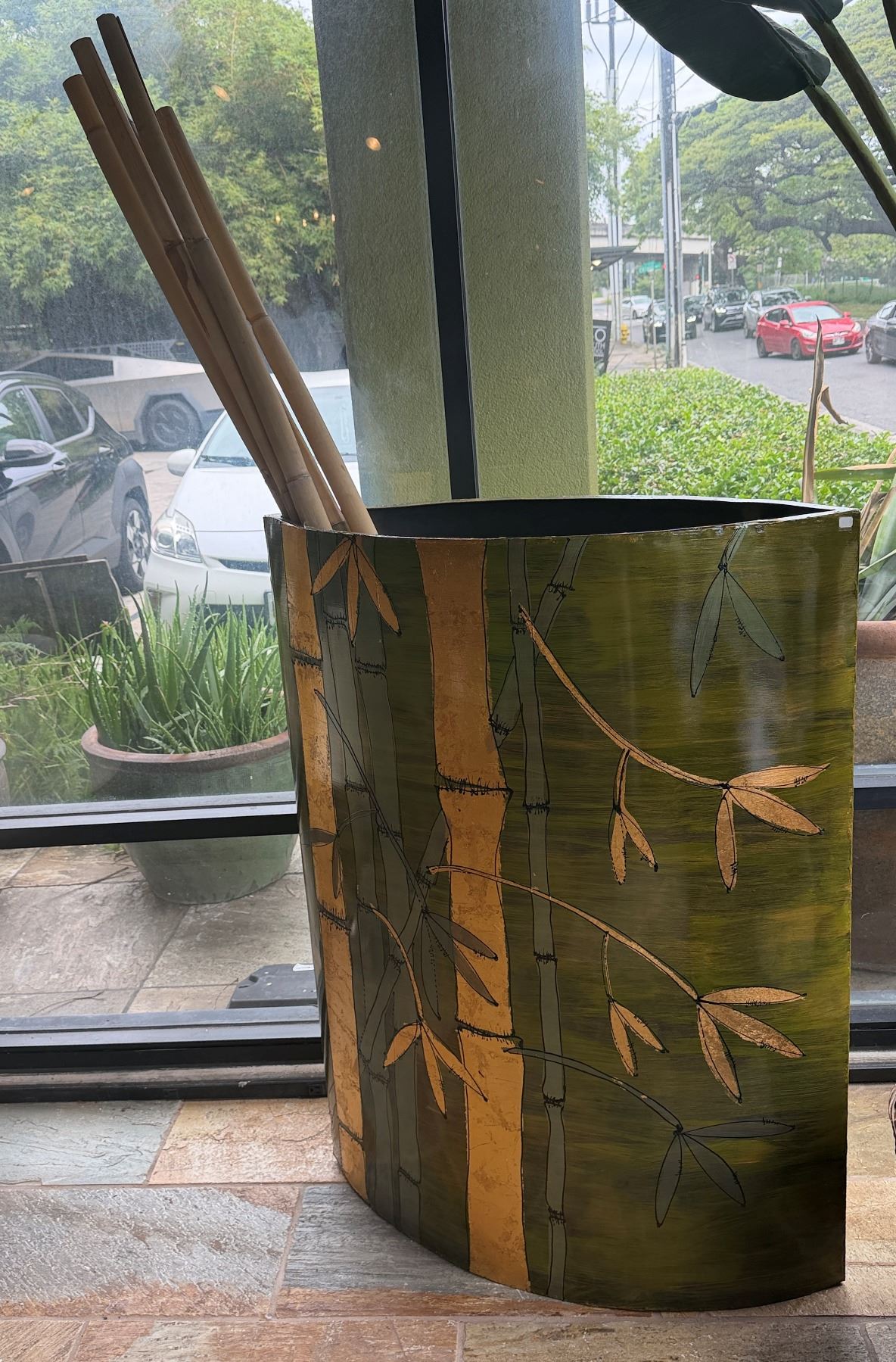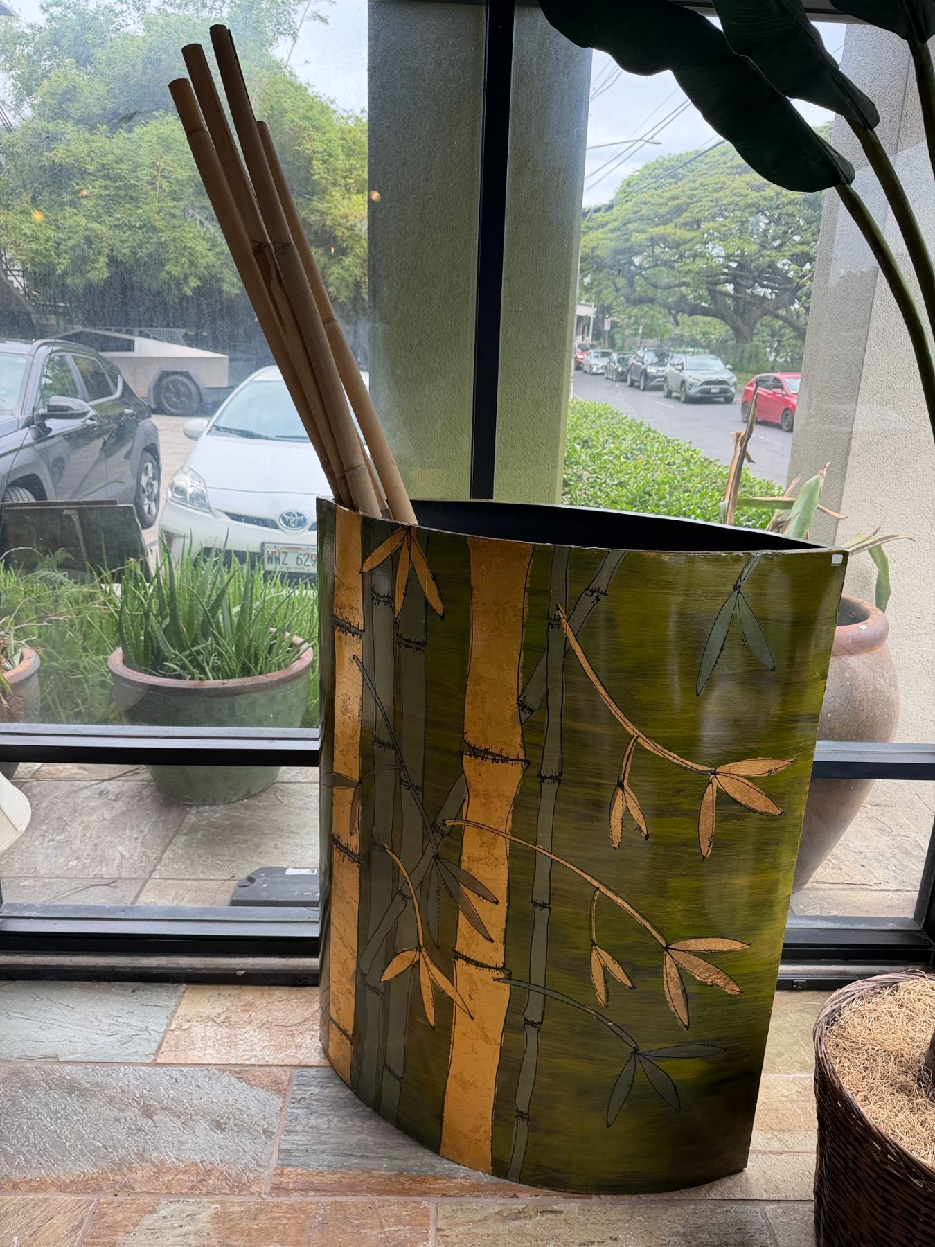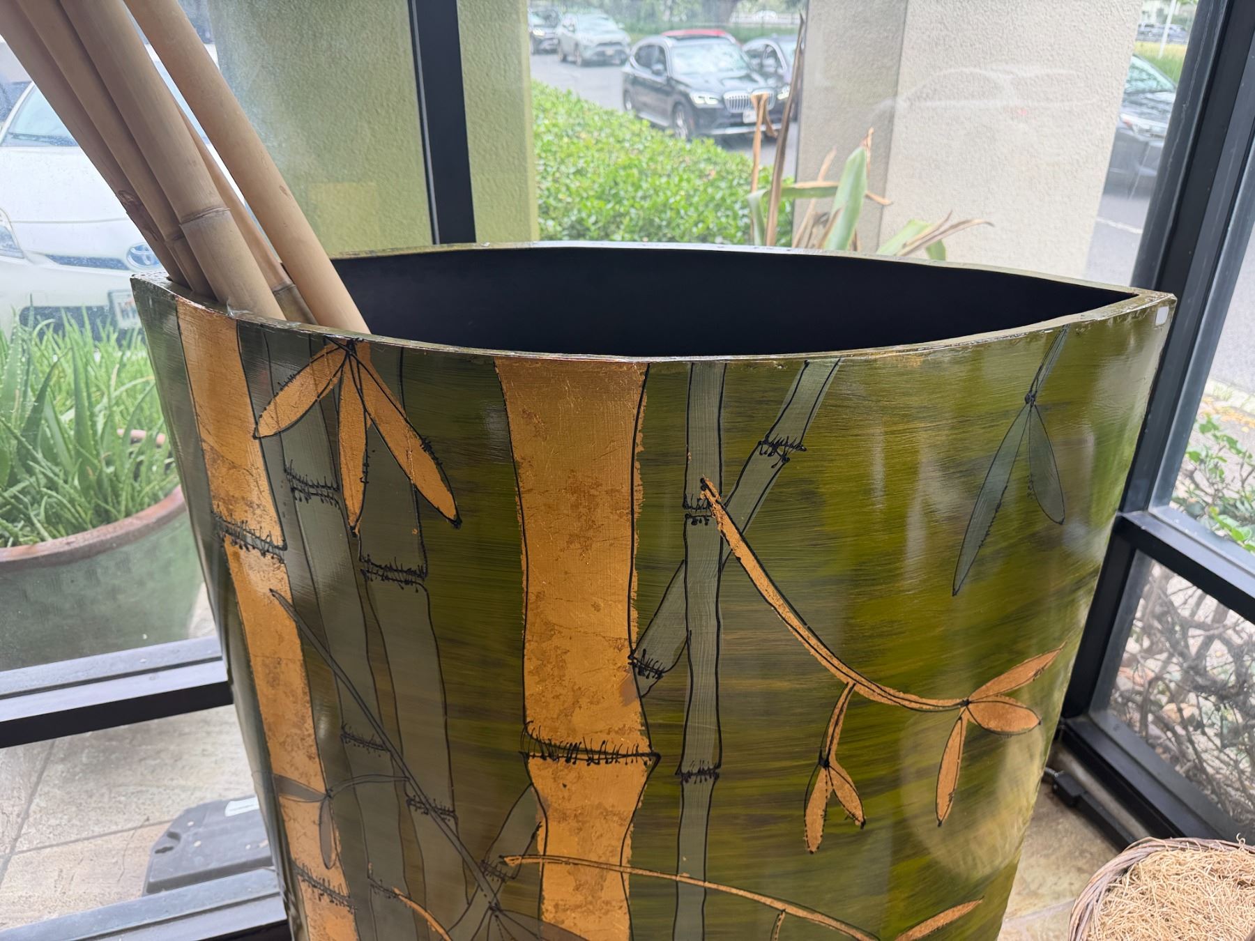 Large Decorative Jar w/ Bamboo Design & Bamboo Canes 35" x 15" x 48"H (top of container)