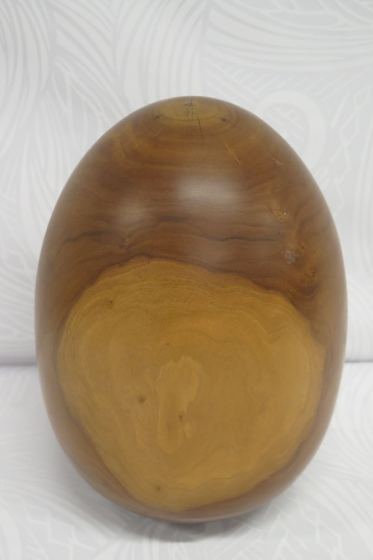Large Egg-Shaped Milo Wood Objet D'Art, Hollow, Artist Kapahikaua "Kaneohe", Approx. 8" Dia, 14" H