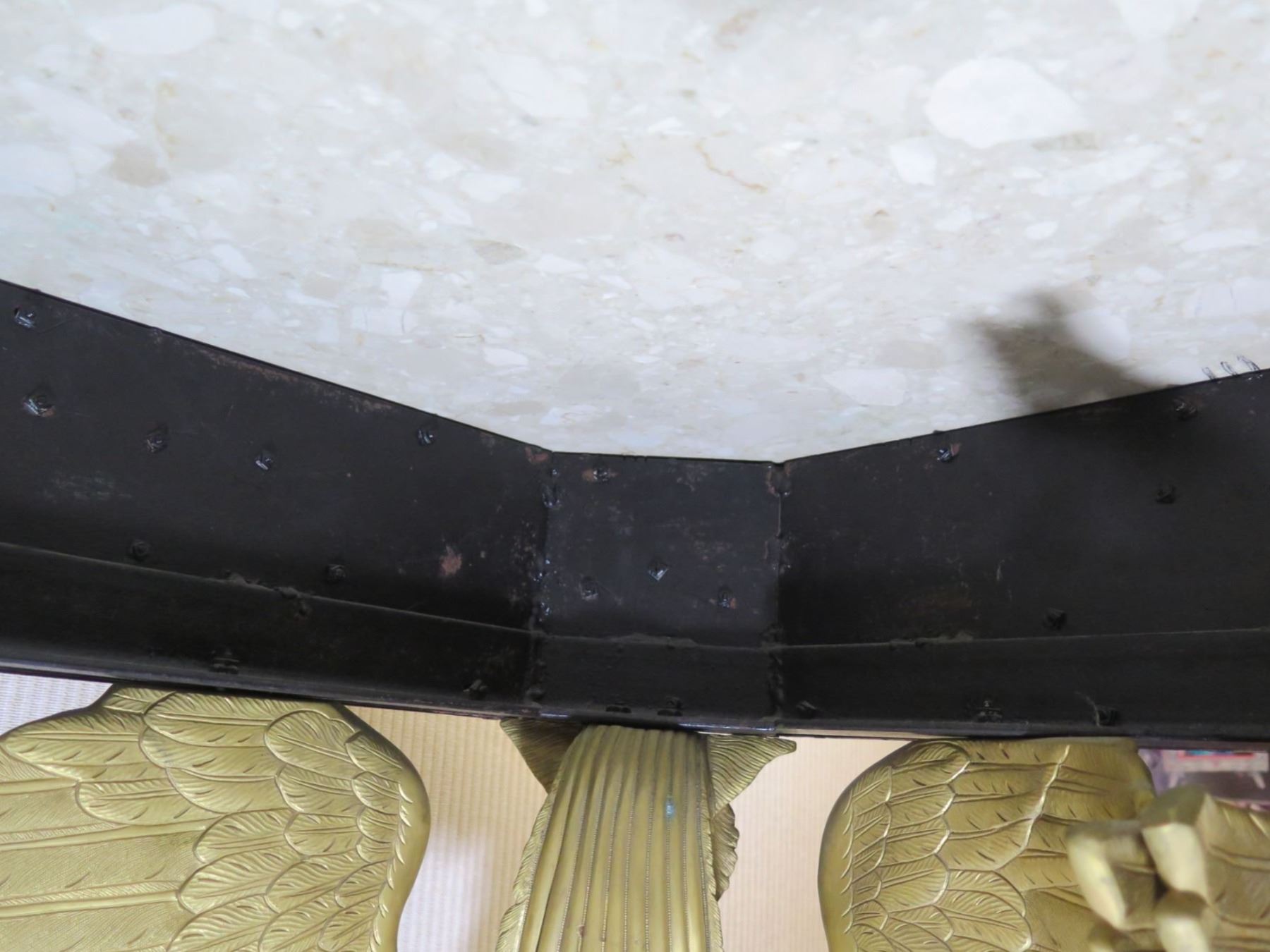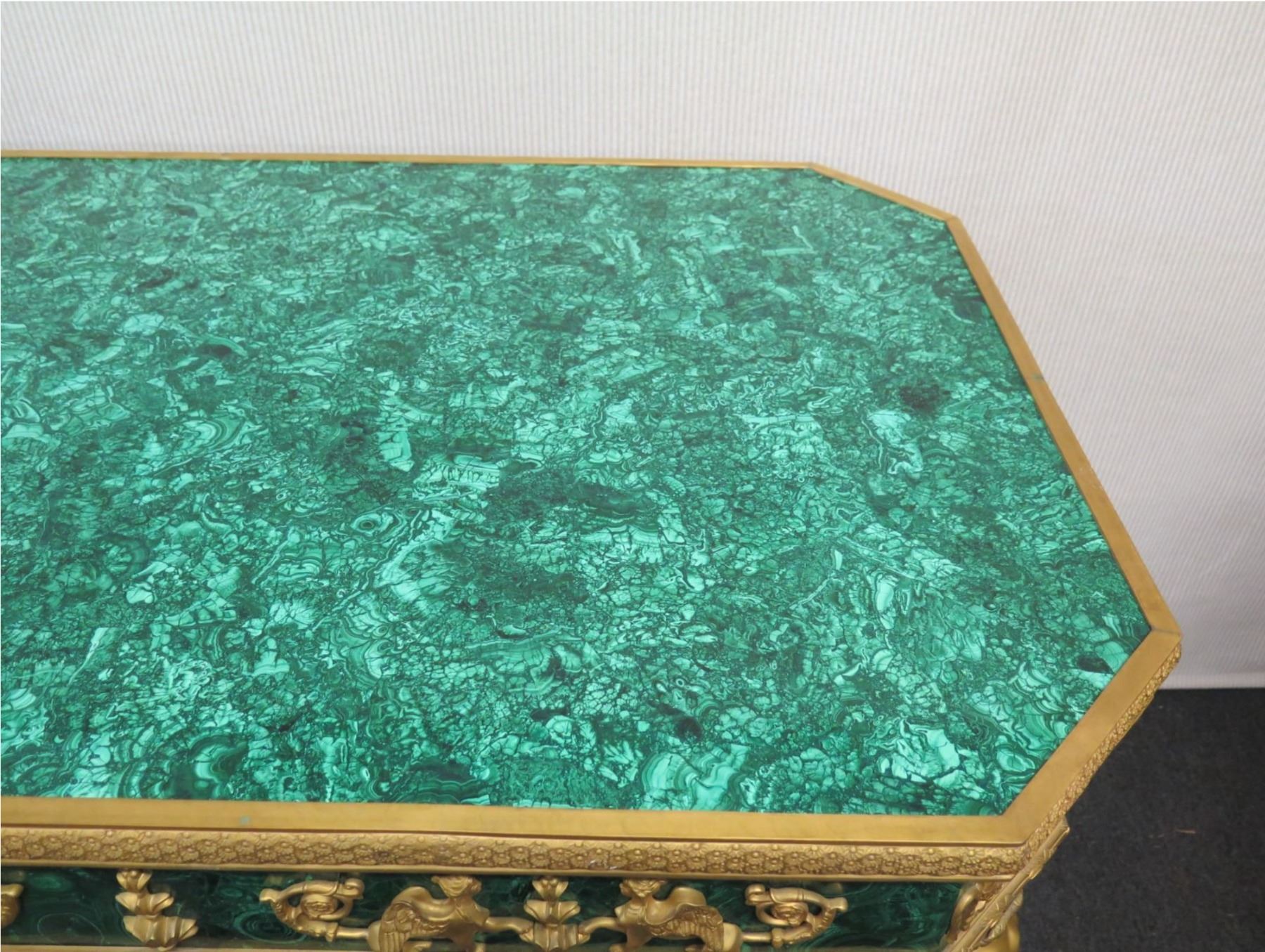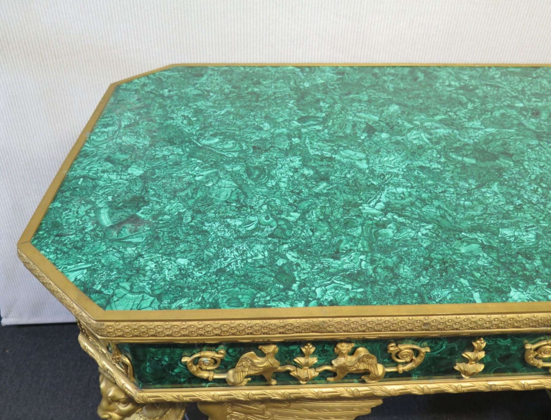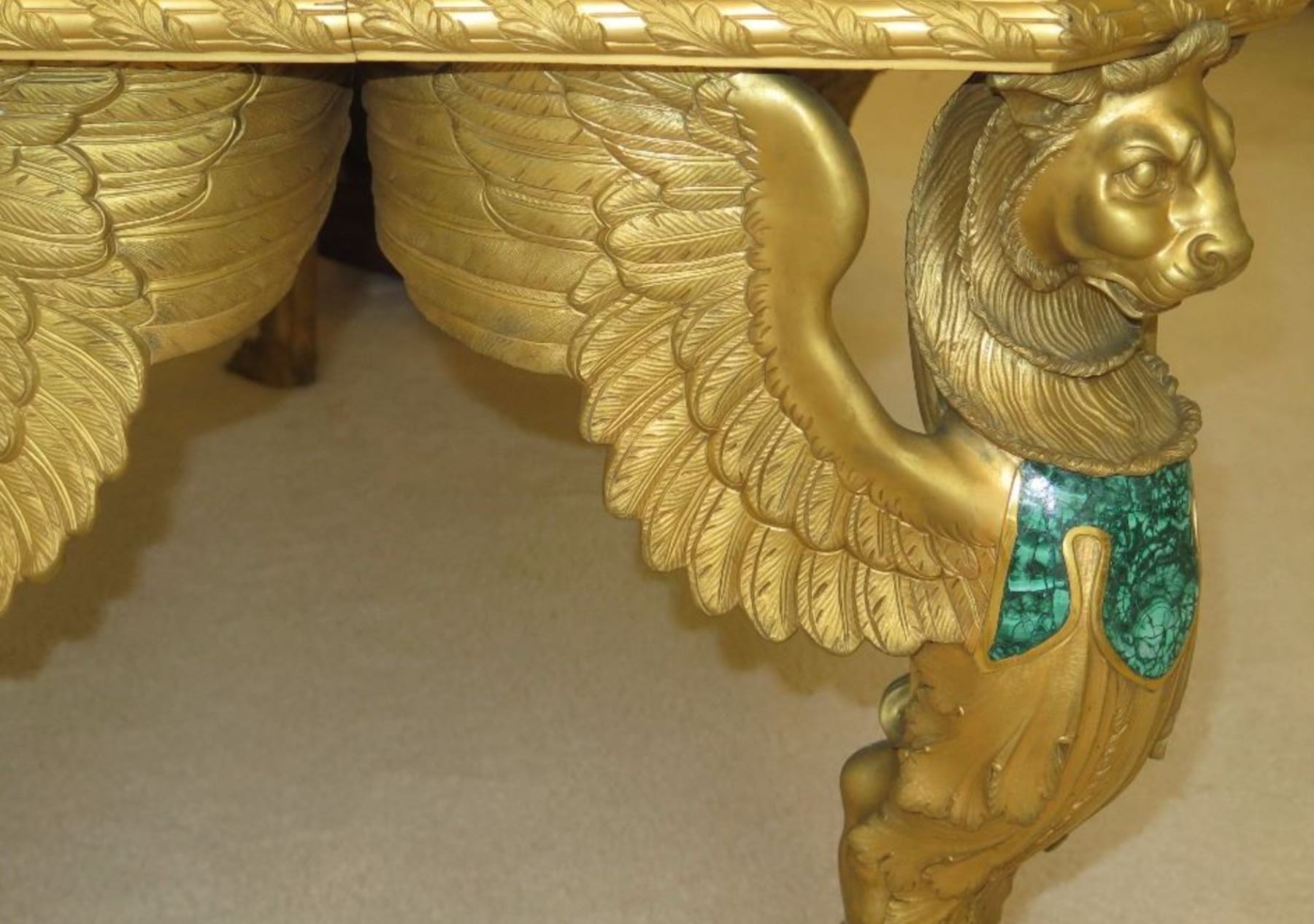 https://bid.oahuauctions.com/French-Empire-Style-Faux-Malachite-Overlay-Table-w-Gilt-Edging-and-Lion-Clawfoot-Details-63x31x32_i26854206
