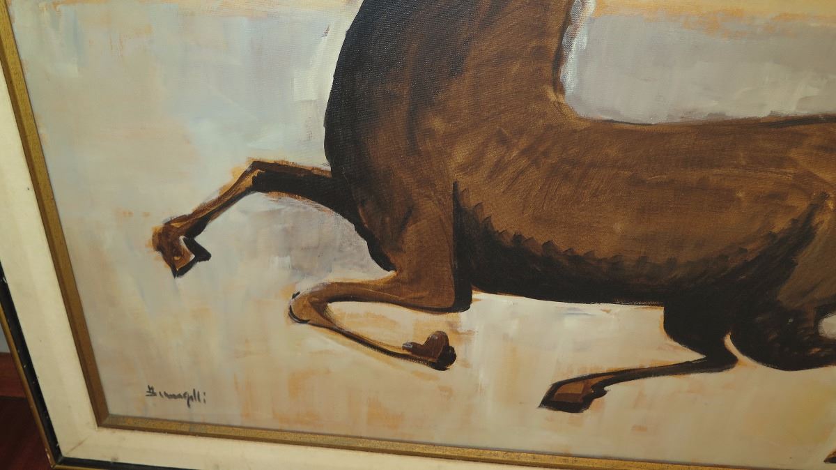 Large Framed Original Acrylic Canvas Painting: Stallion - by Luigi Fumagalli 46X36