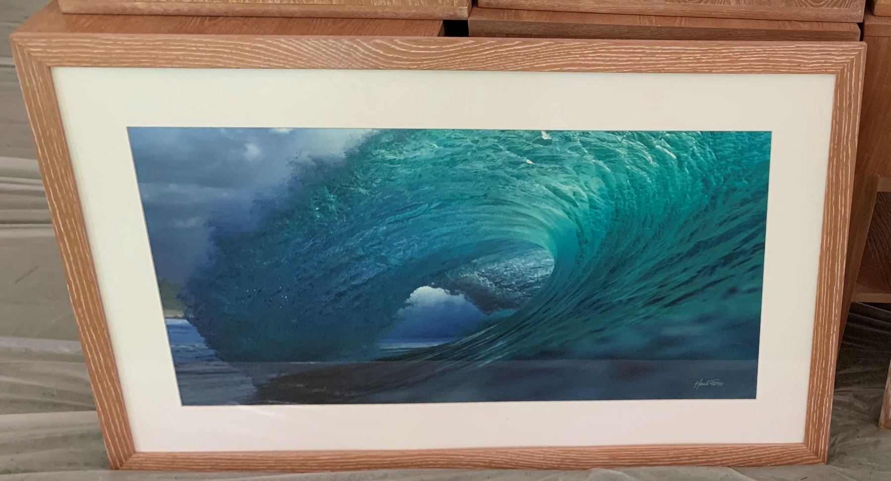 Large Framed Photographic "Big Wave" Signed Hank Foto 42-1/2" x 26"