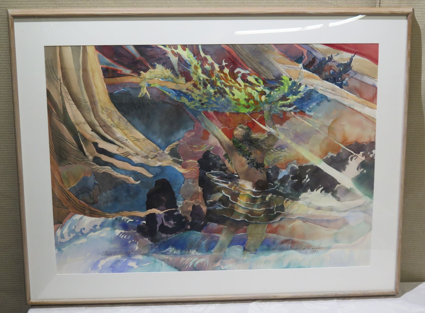 Large Framed Watercolor "Pau O Hiiaka, Signed A.C. Kahekiliuila Lagunero, 28" x 36"