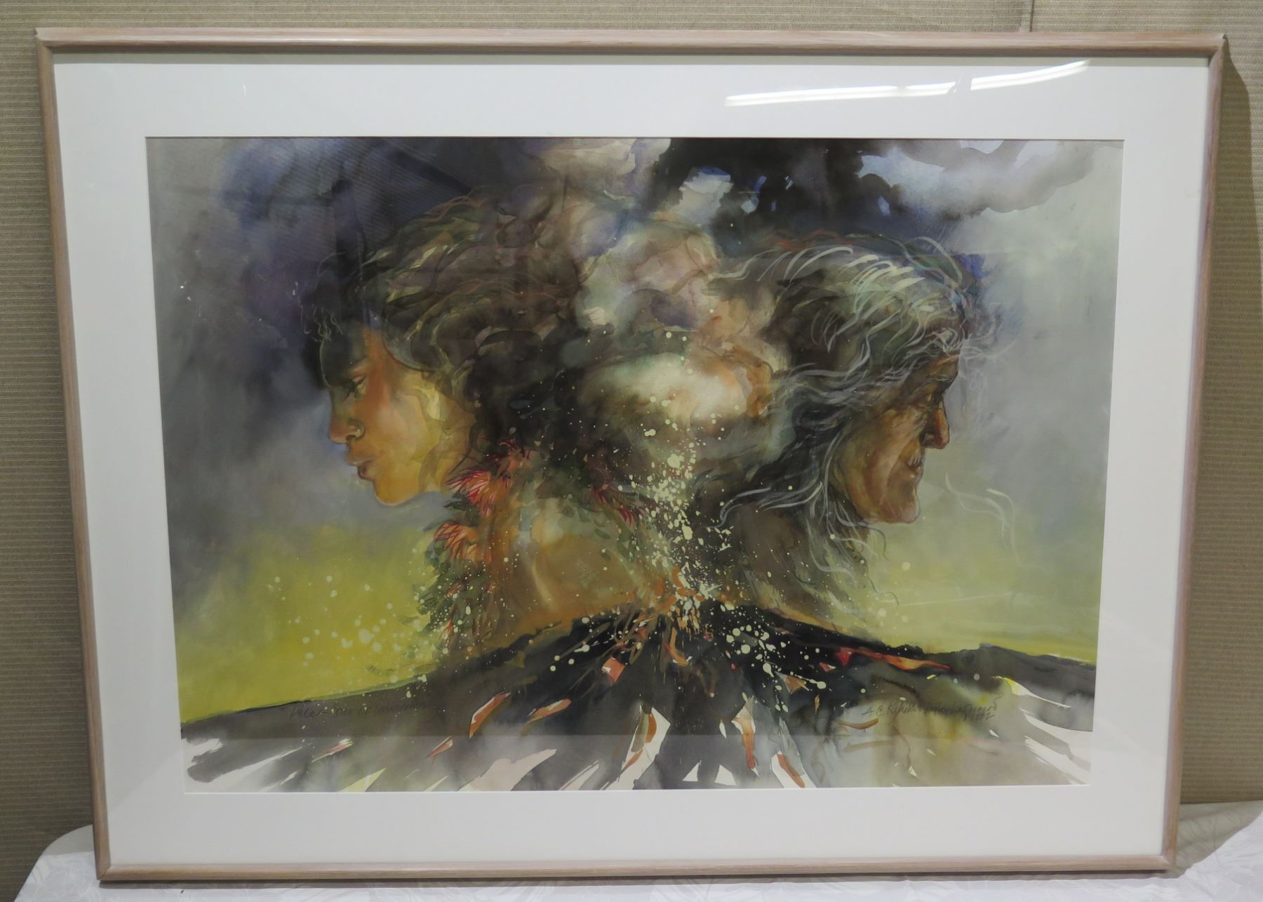 Large Framed Watercolor, Pele Song of Immortality, Signed A.C. Kahekiliuila Lagunero, 28" x 36"
