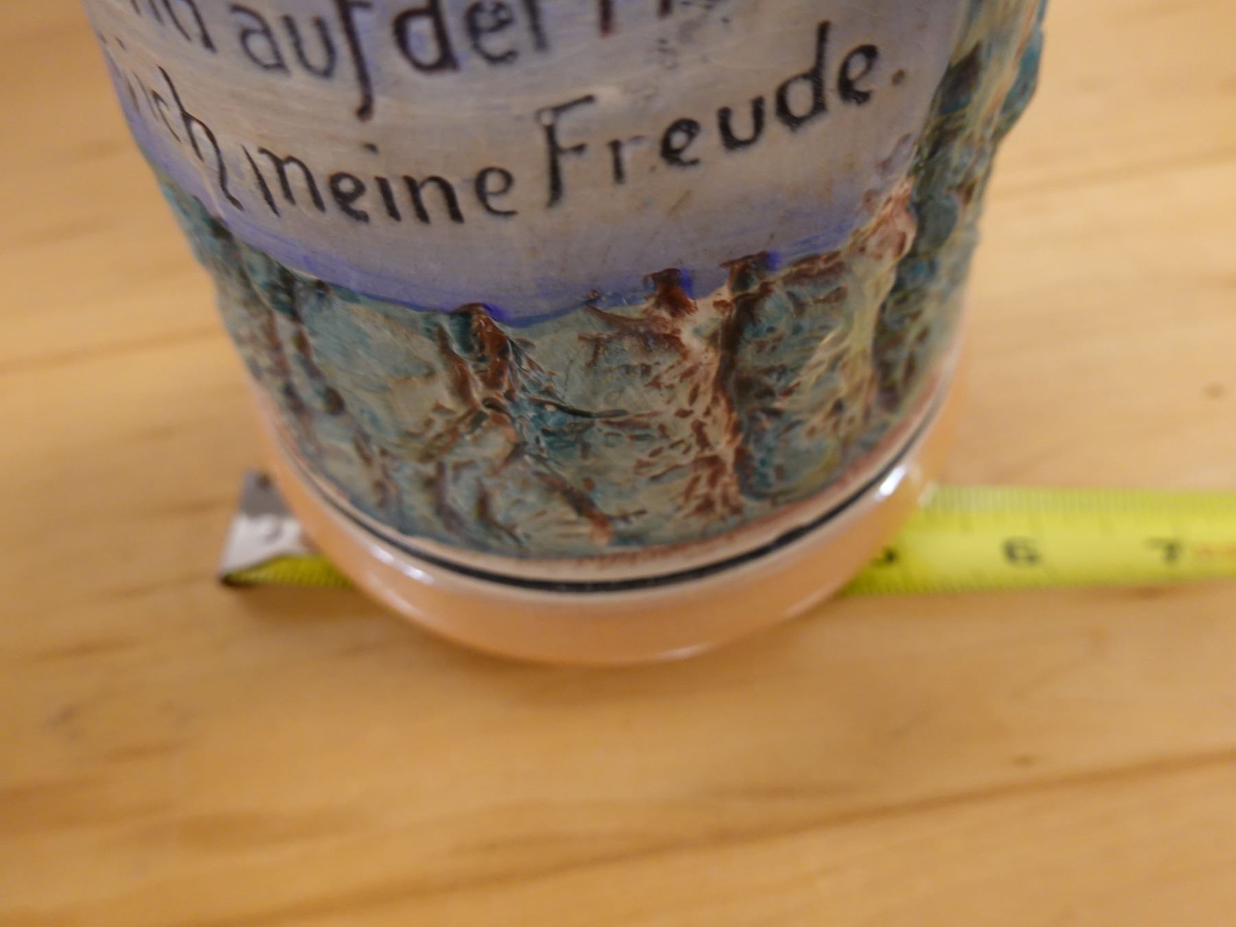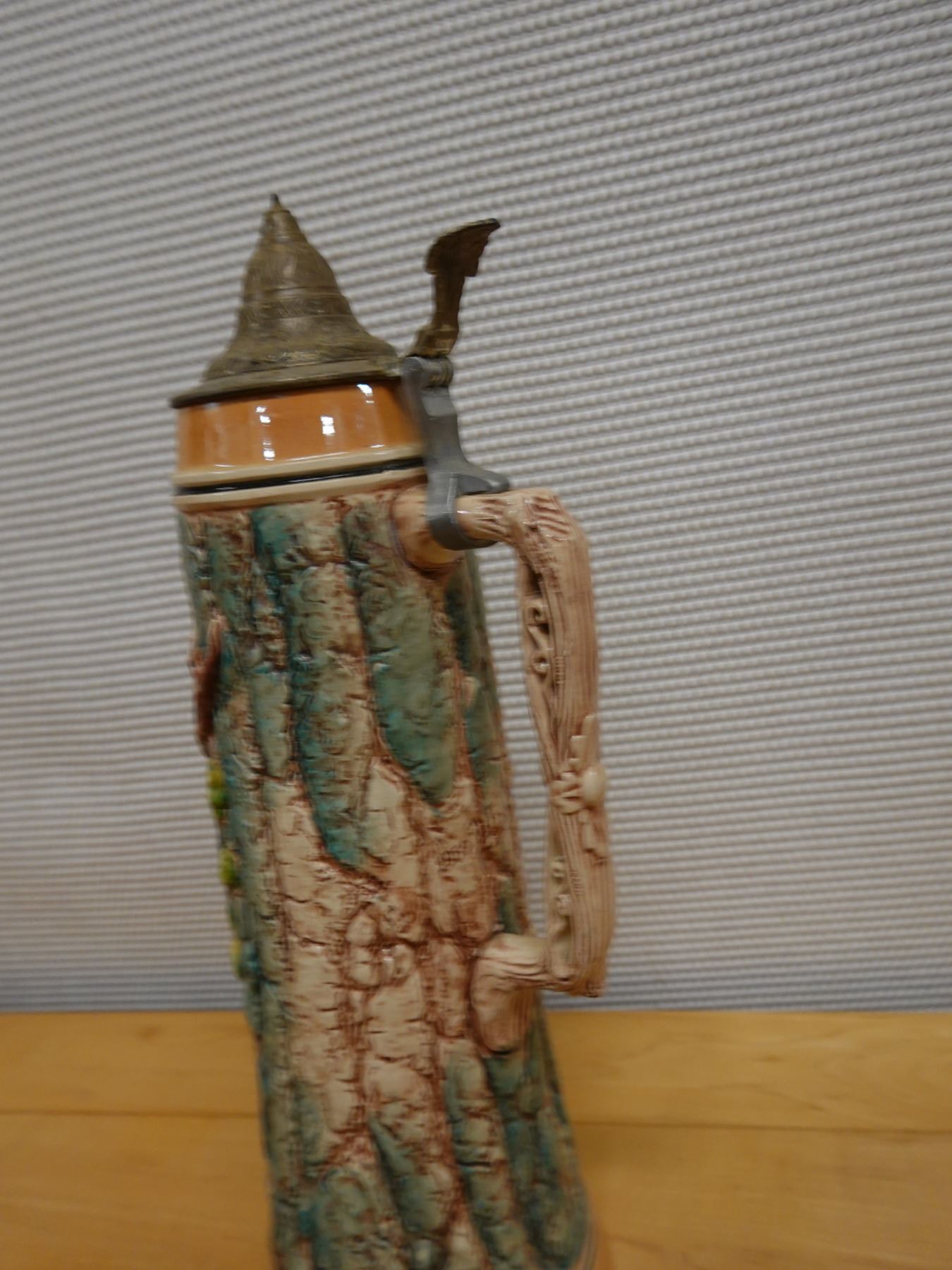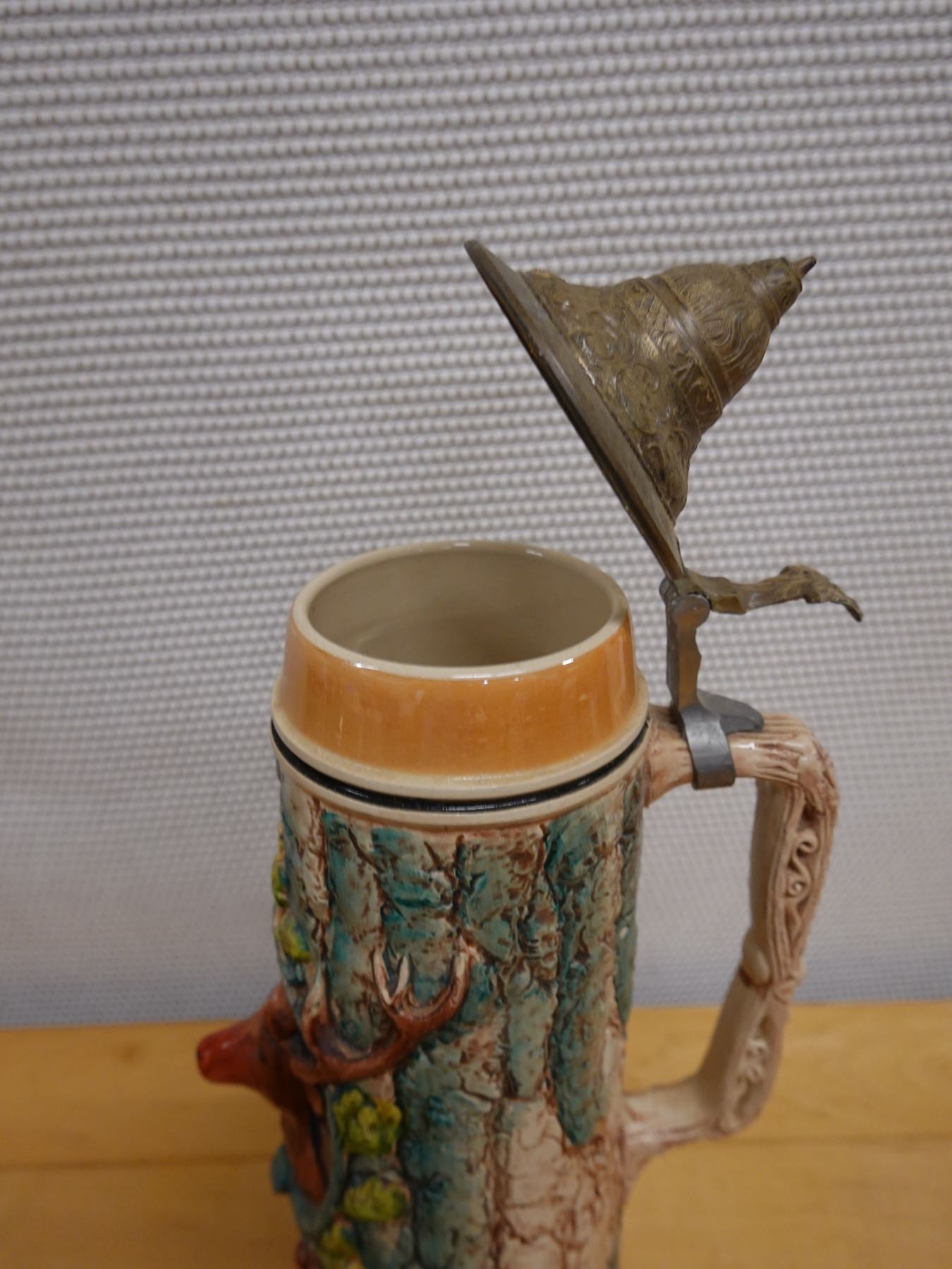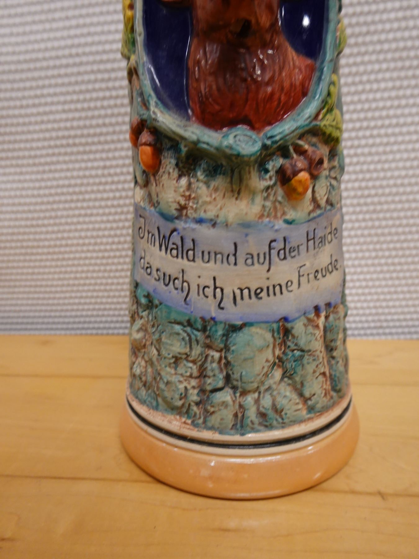Large German Beer Stein w/ Lid, Maker's Mark & Deer Motif 5.5" Dia x 16.5"H