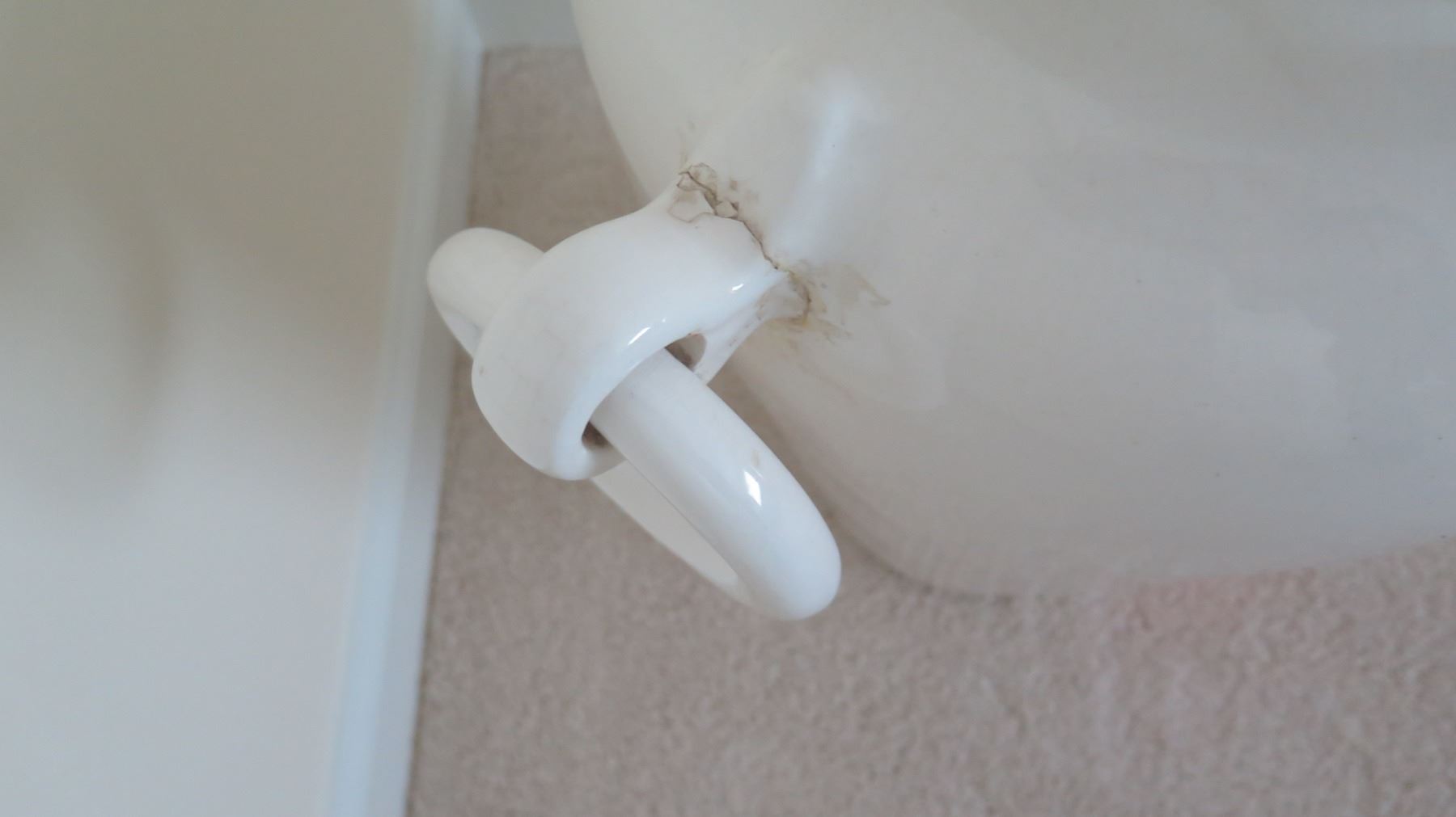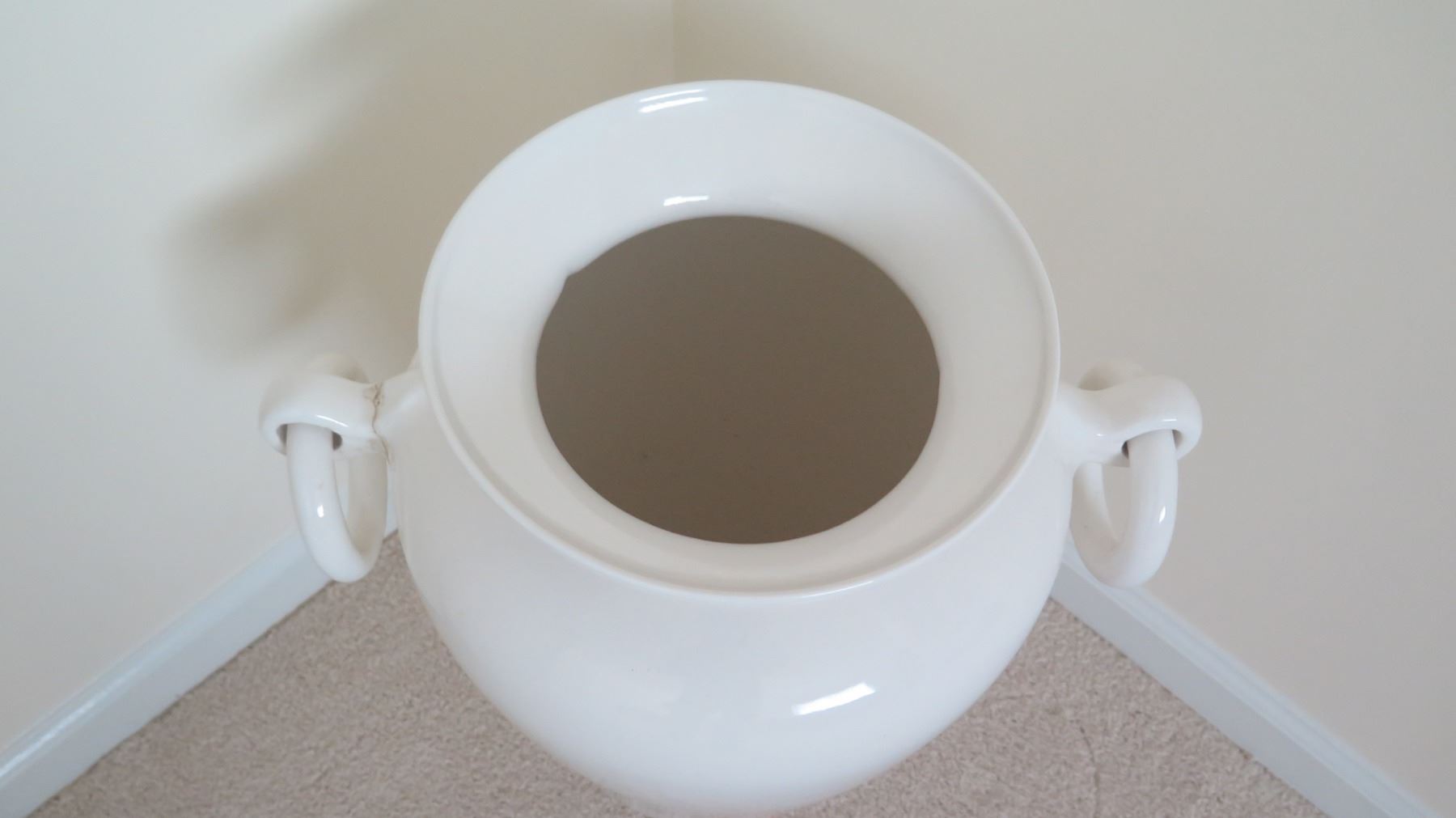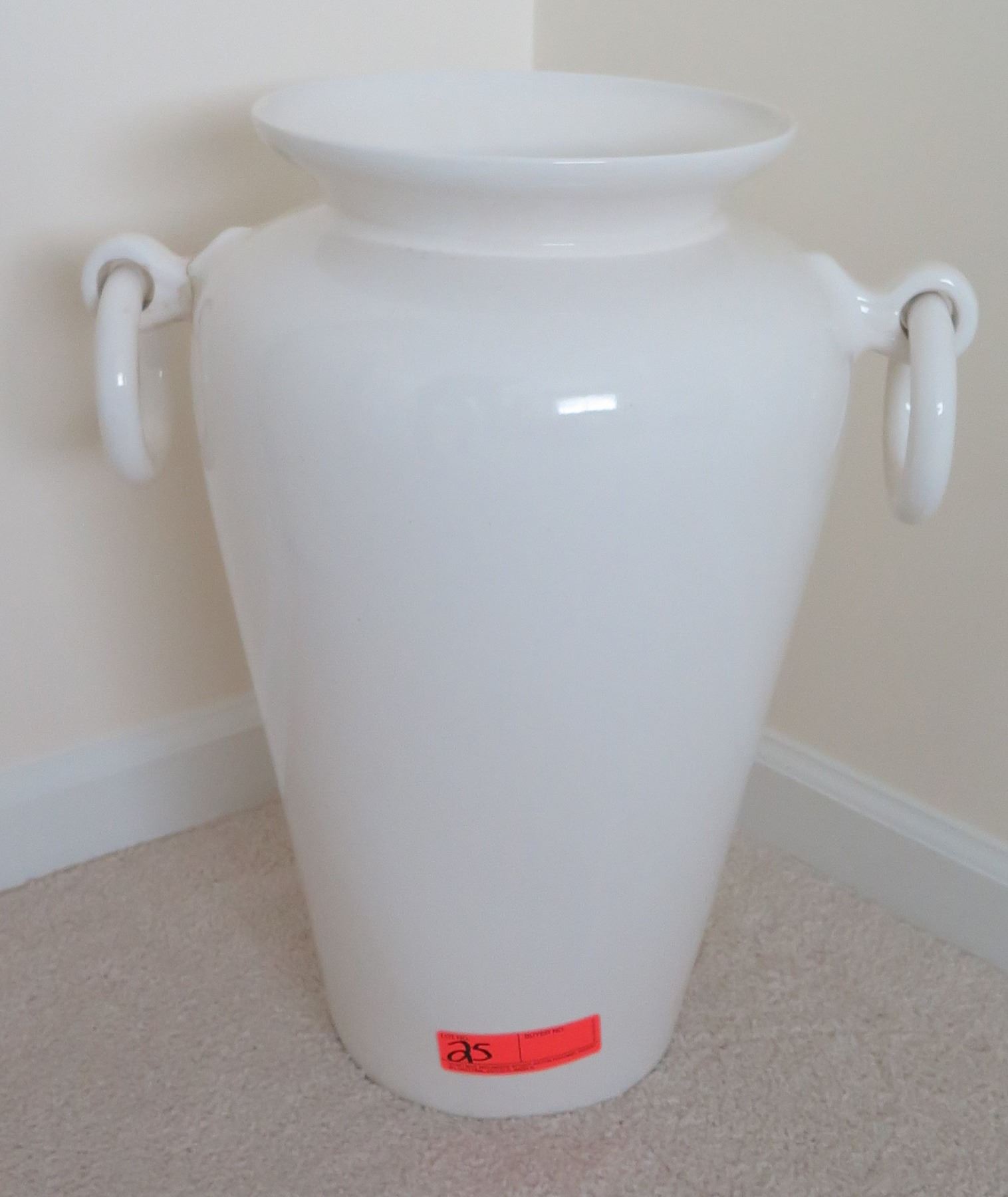 Large Glazed White Ceramic Vessel w/ Handles 21"H (left handle was repaired)