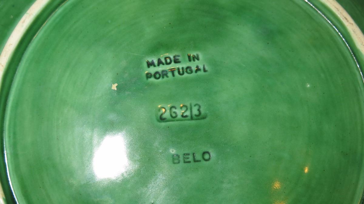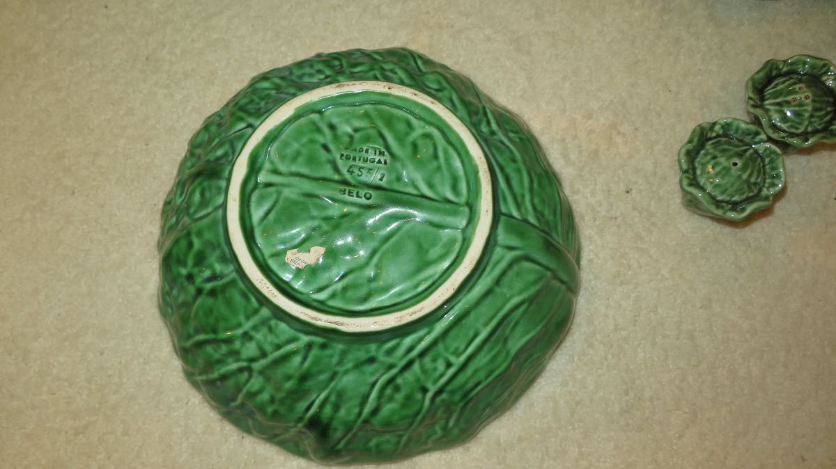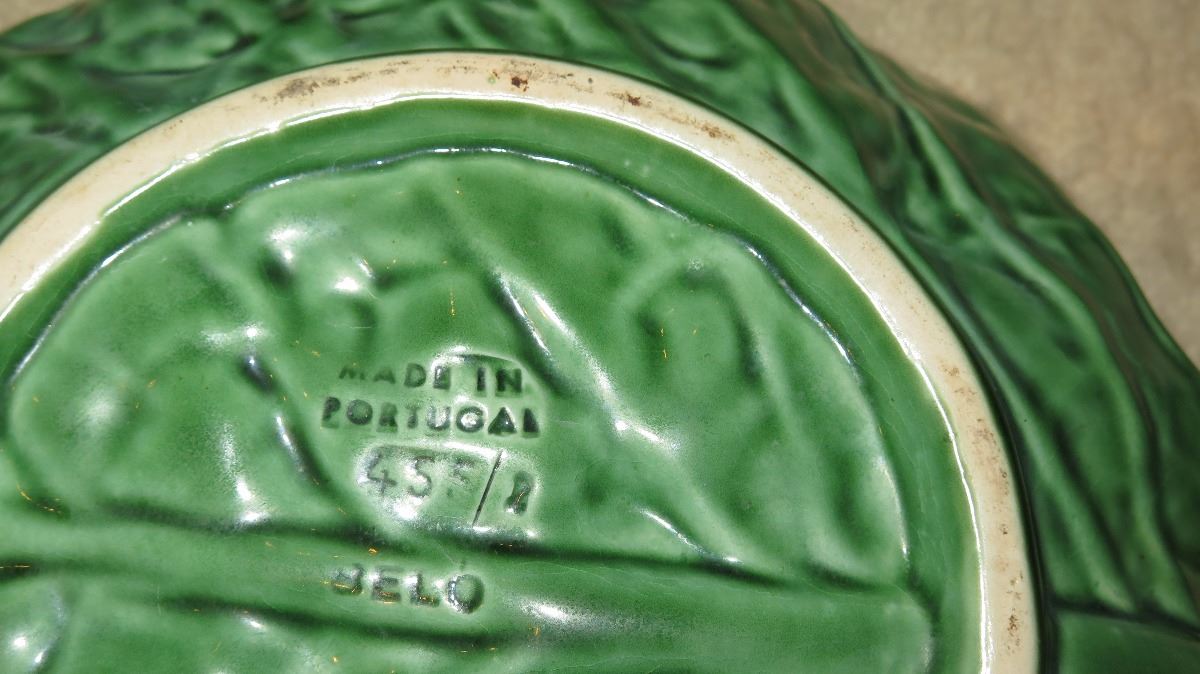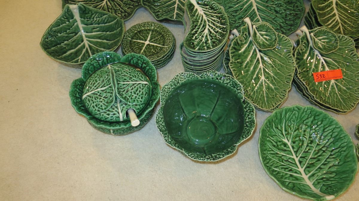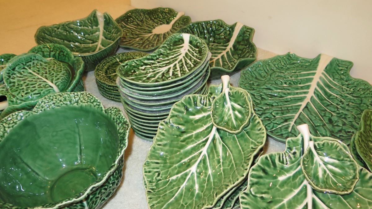Large Lot of Belo (Portugal) Glazed Green Ceramic Cabbage Serveware, Trays, Bowls, Plates, etc.