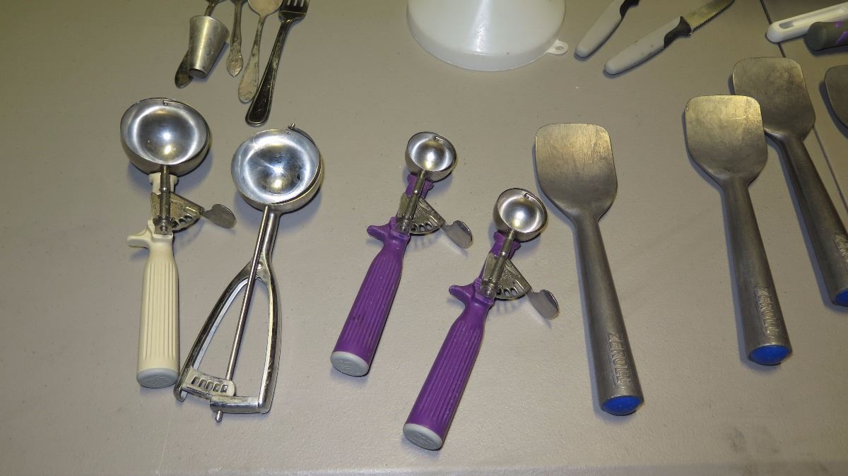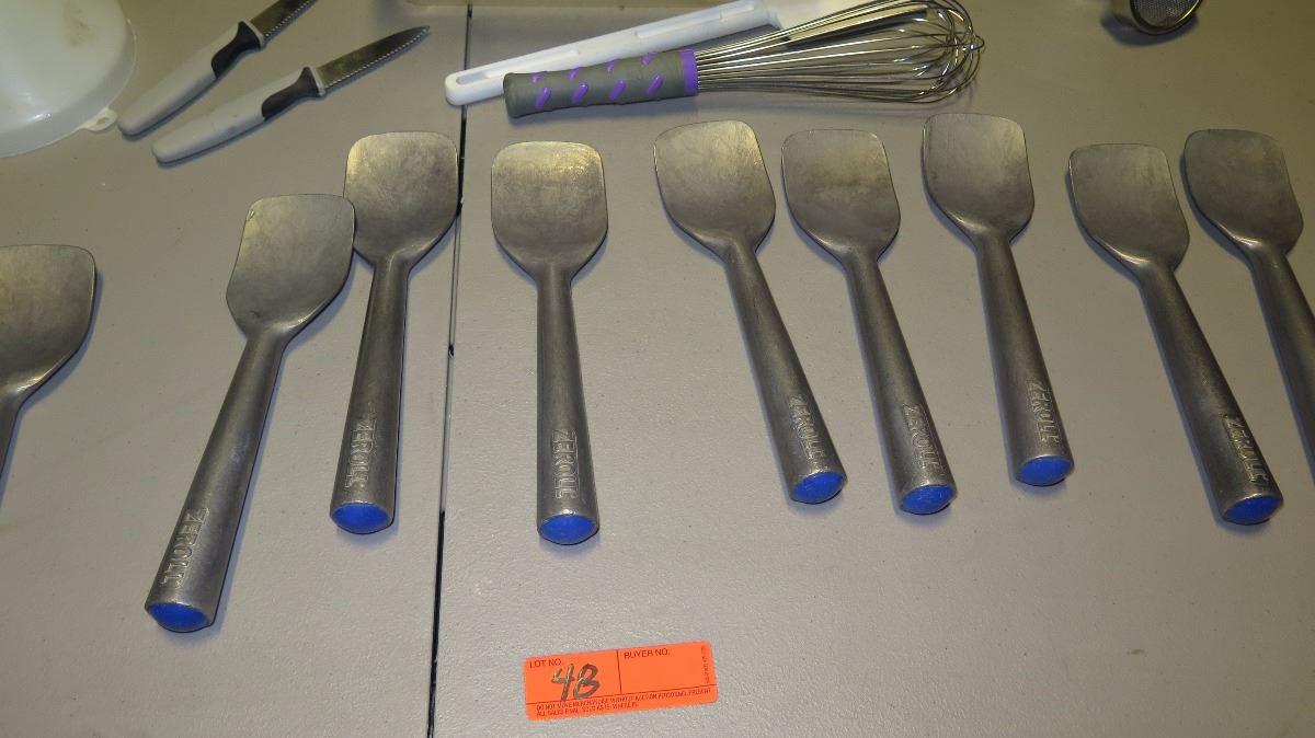 Large Lot of Misc. Ice Cream Scoopers, Knives, Whisk, etc. - Zeroll brand, etc.