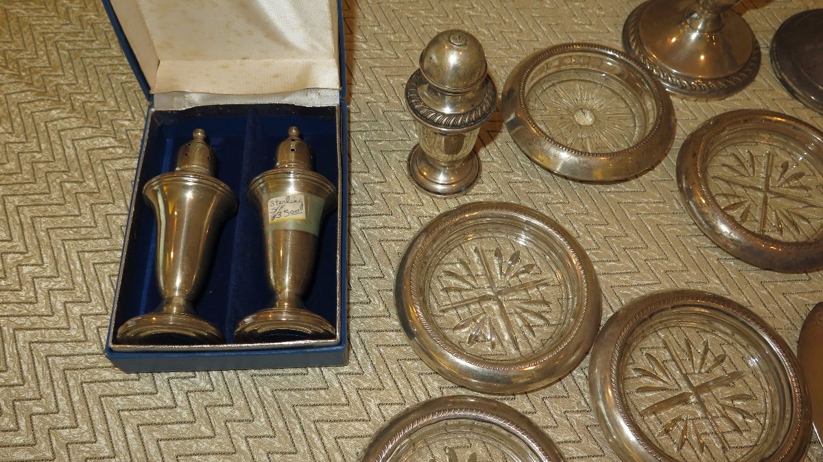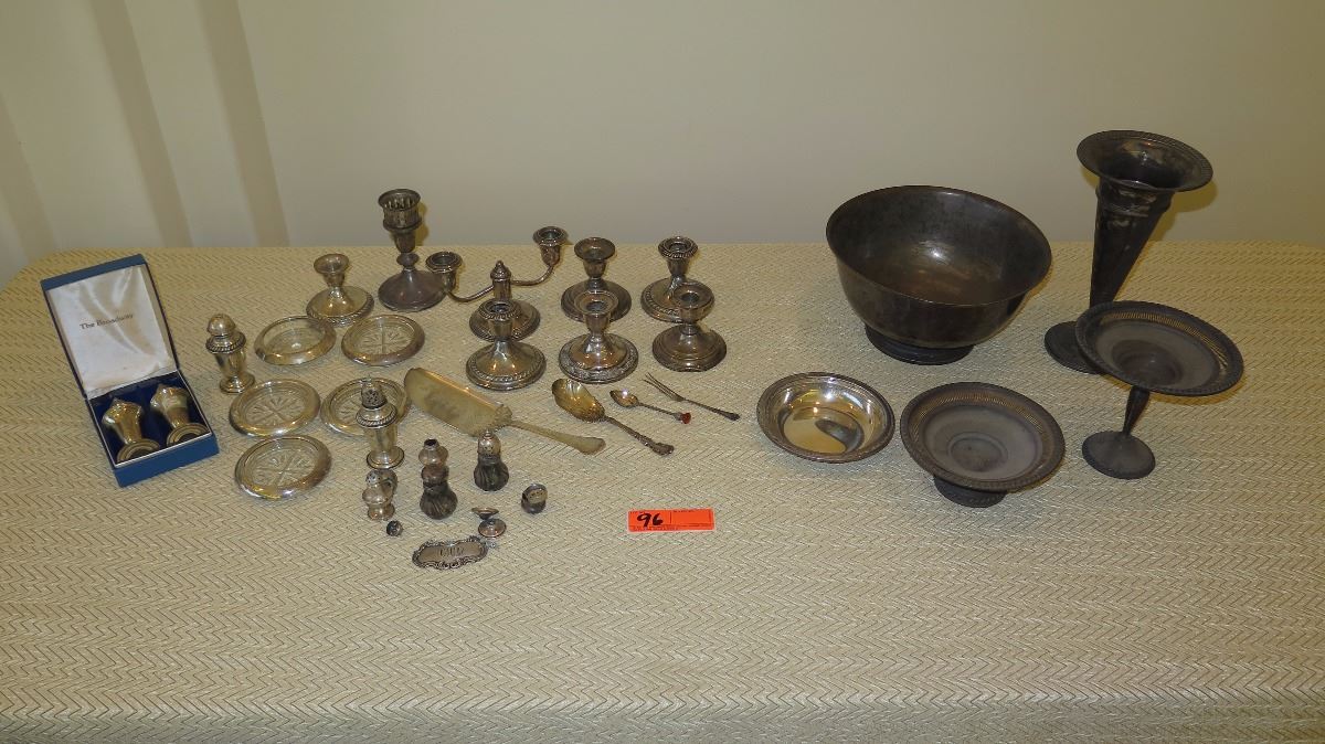 Large Lots: Misc. Silver-Plated Candle Holders, Bowls, Vase, Tray, Salt/Pepper Shakers, Flatware