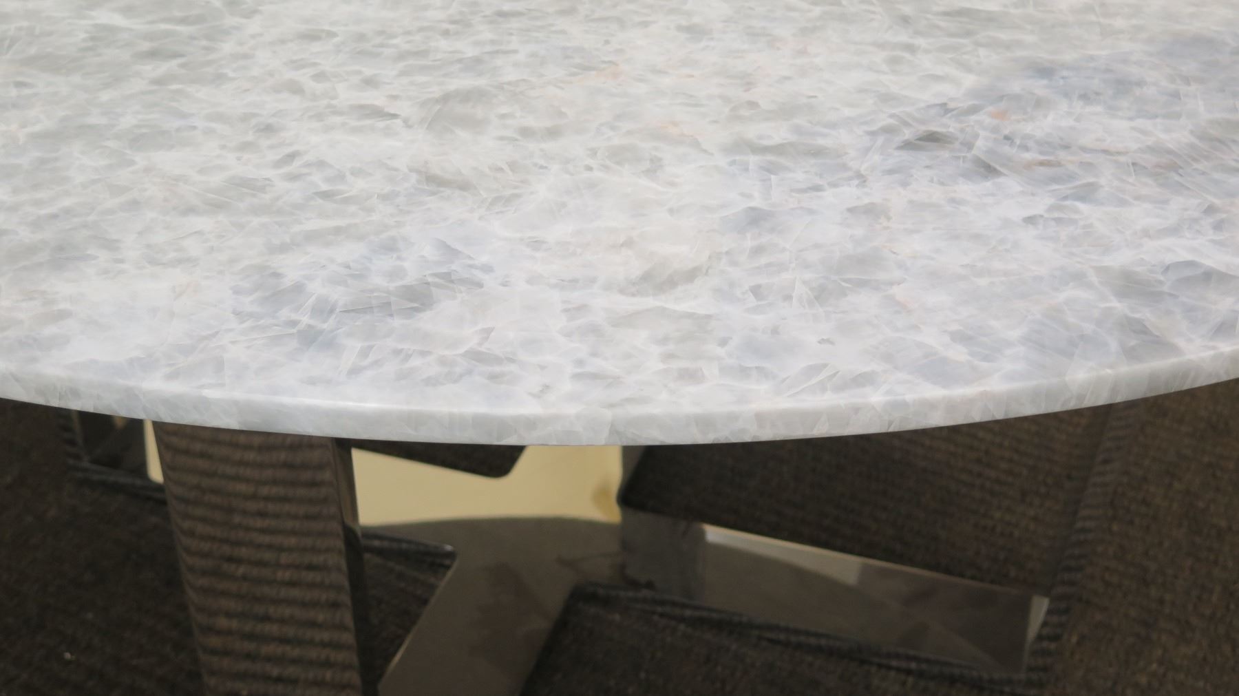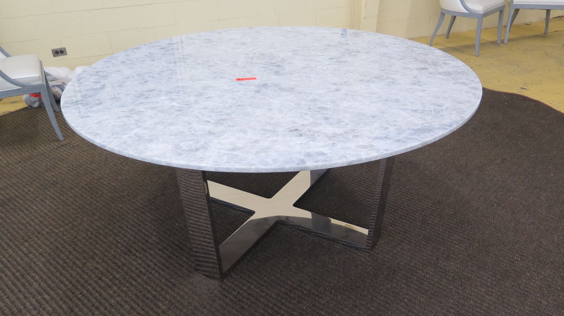 Large Marble-Top Round Table, Gray/White Polished Marble, Chrome Base, 68" Dia.