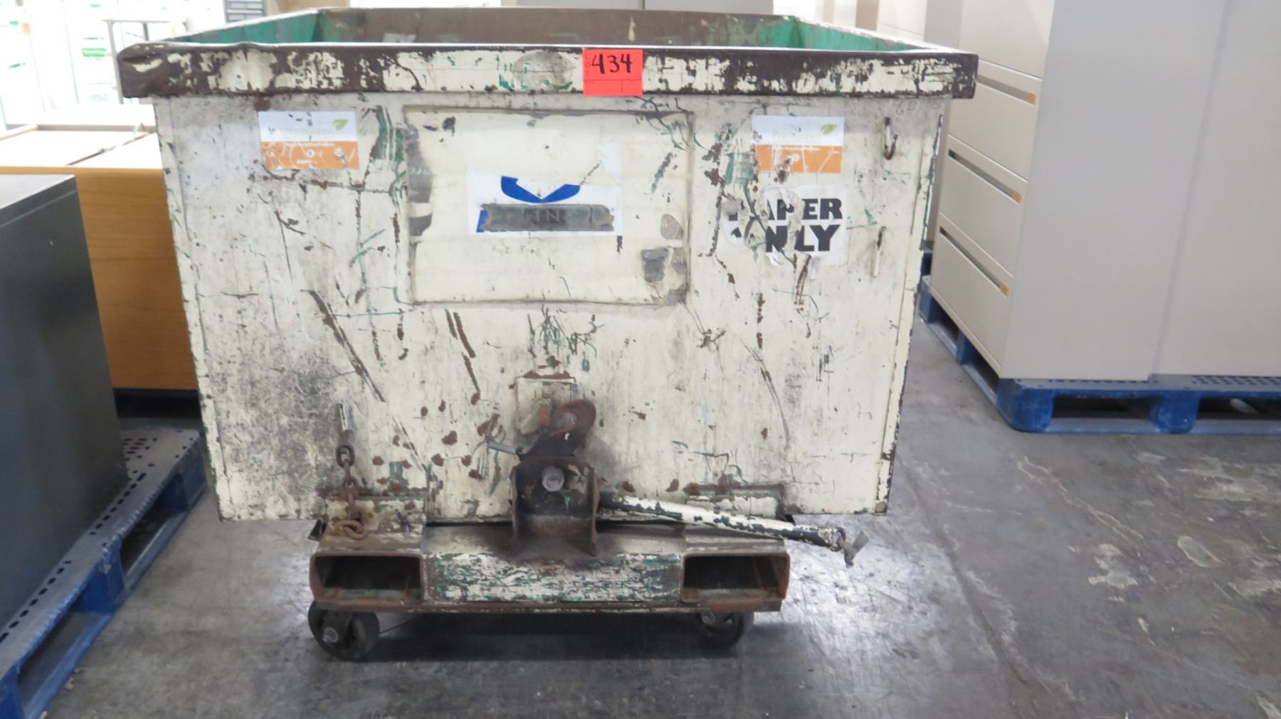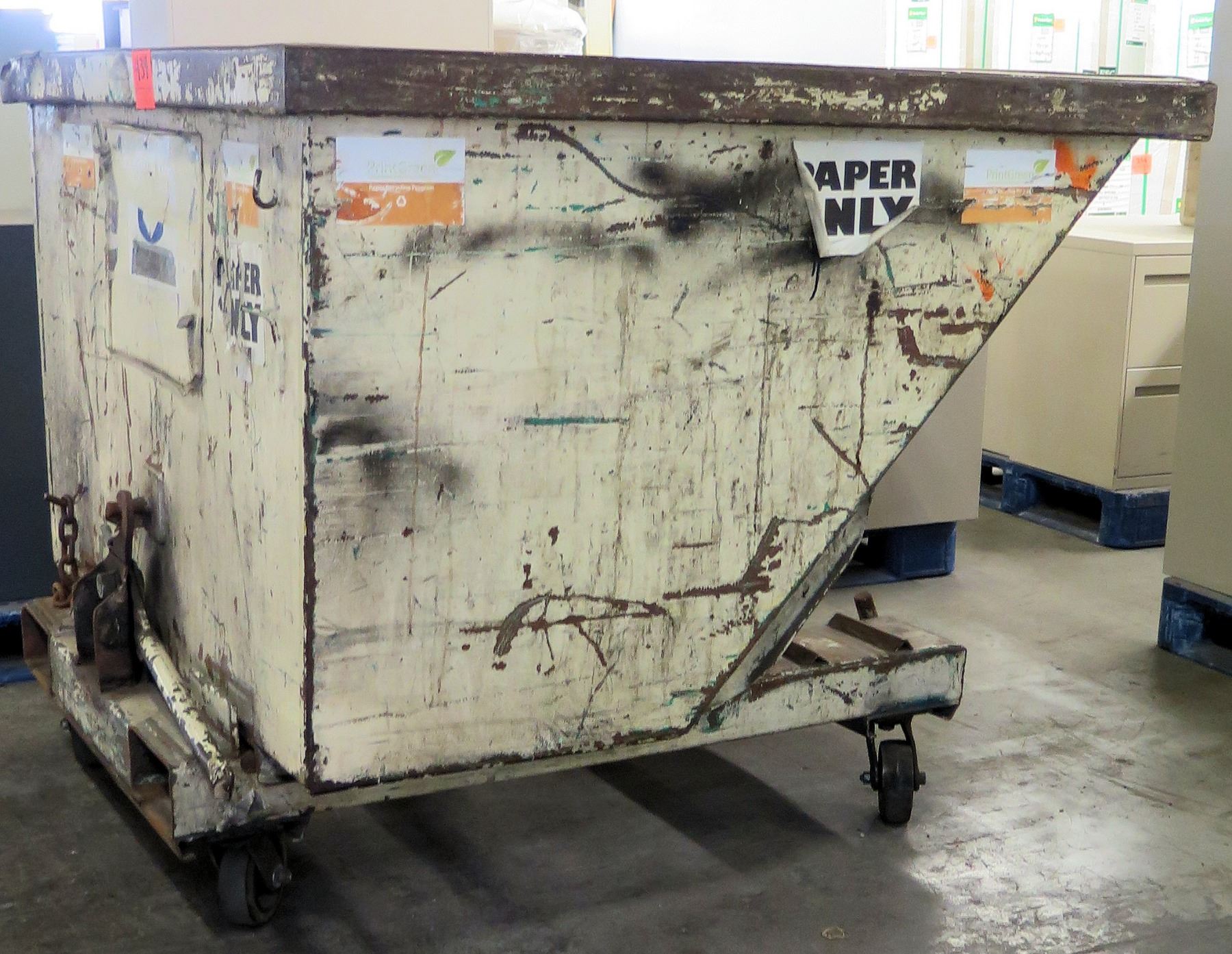 Large Metal Rolling Paper Recycle Dumpster Can w/ Forklift Holes