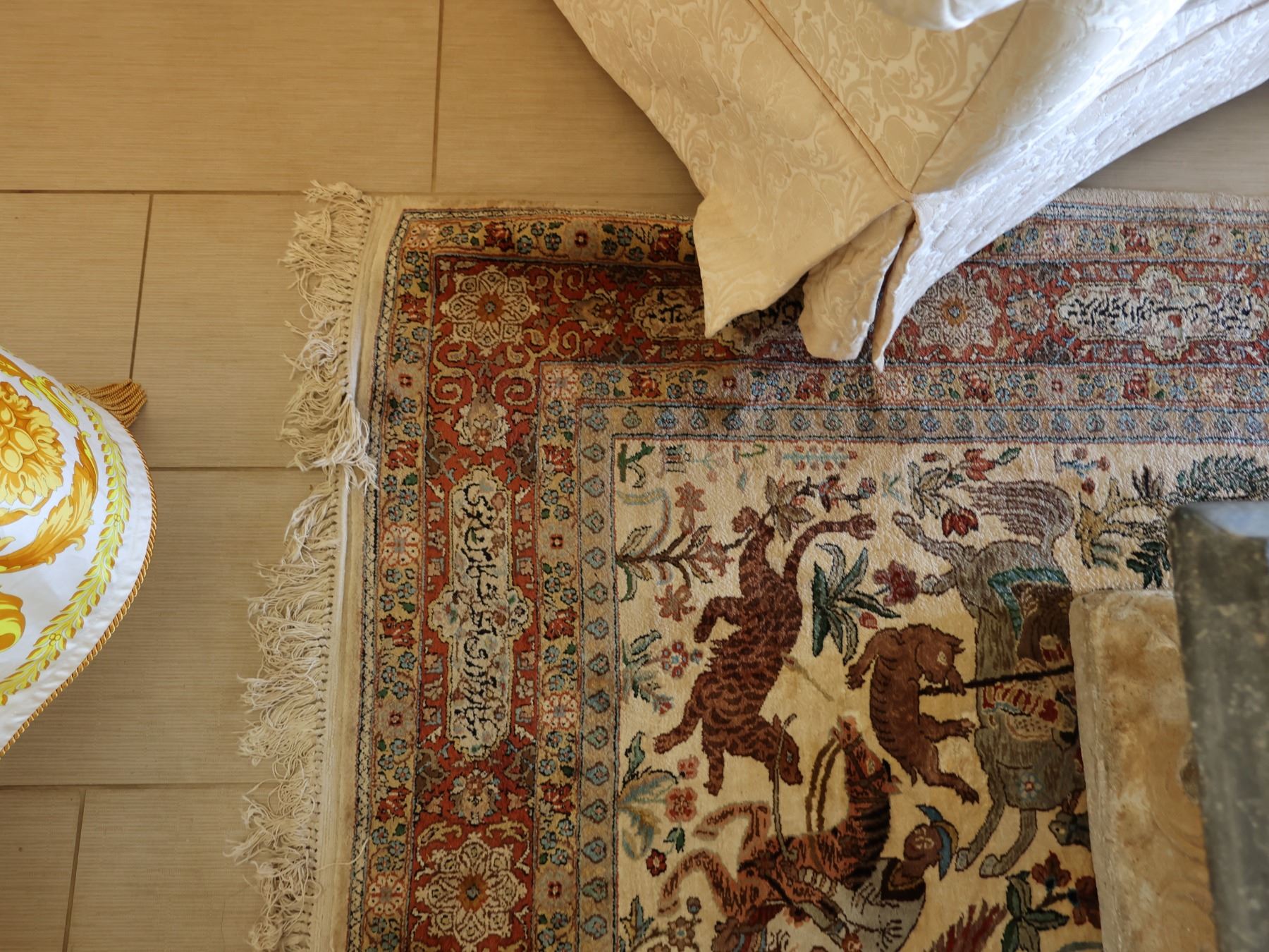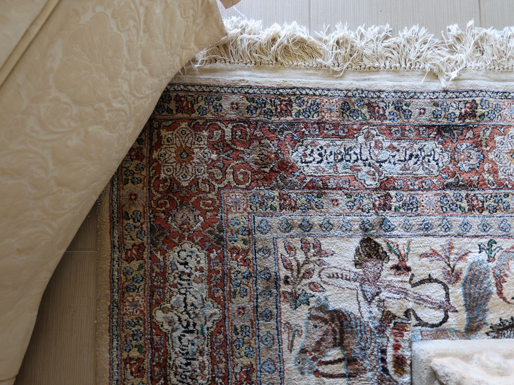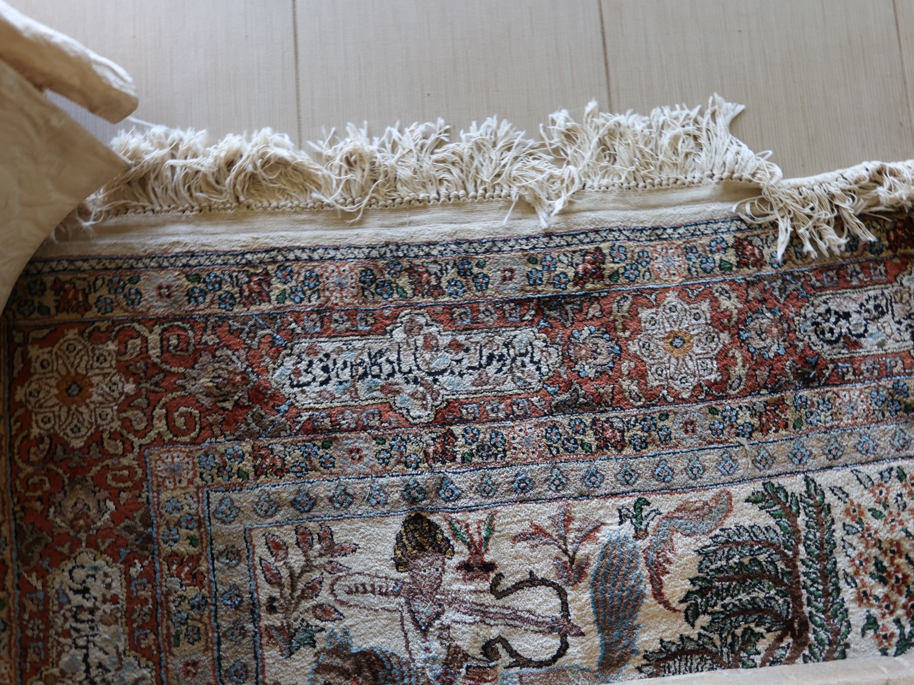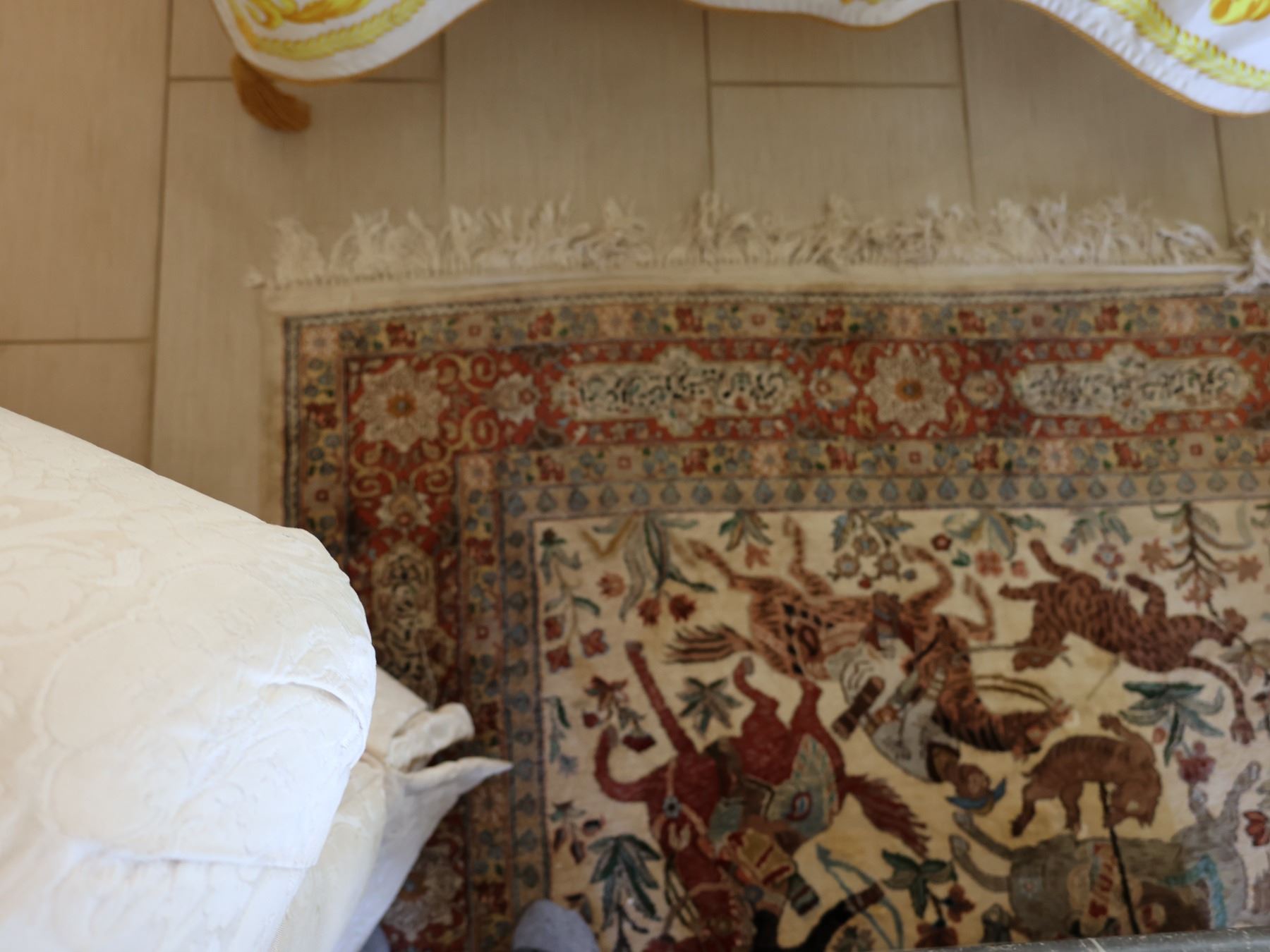Large Middle Eastern Pictorial Area Rug w/ Fringe 91" x 55"