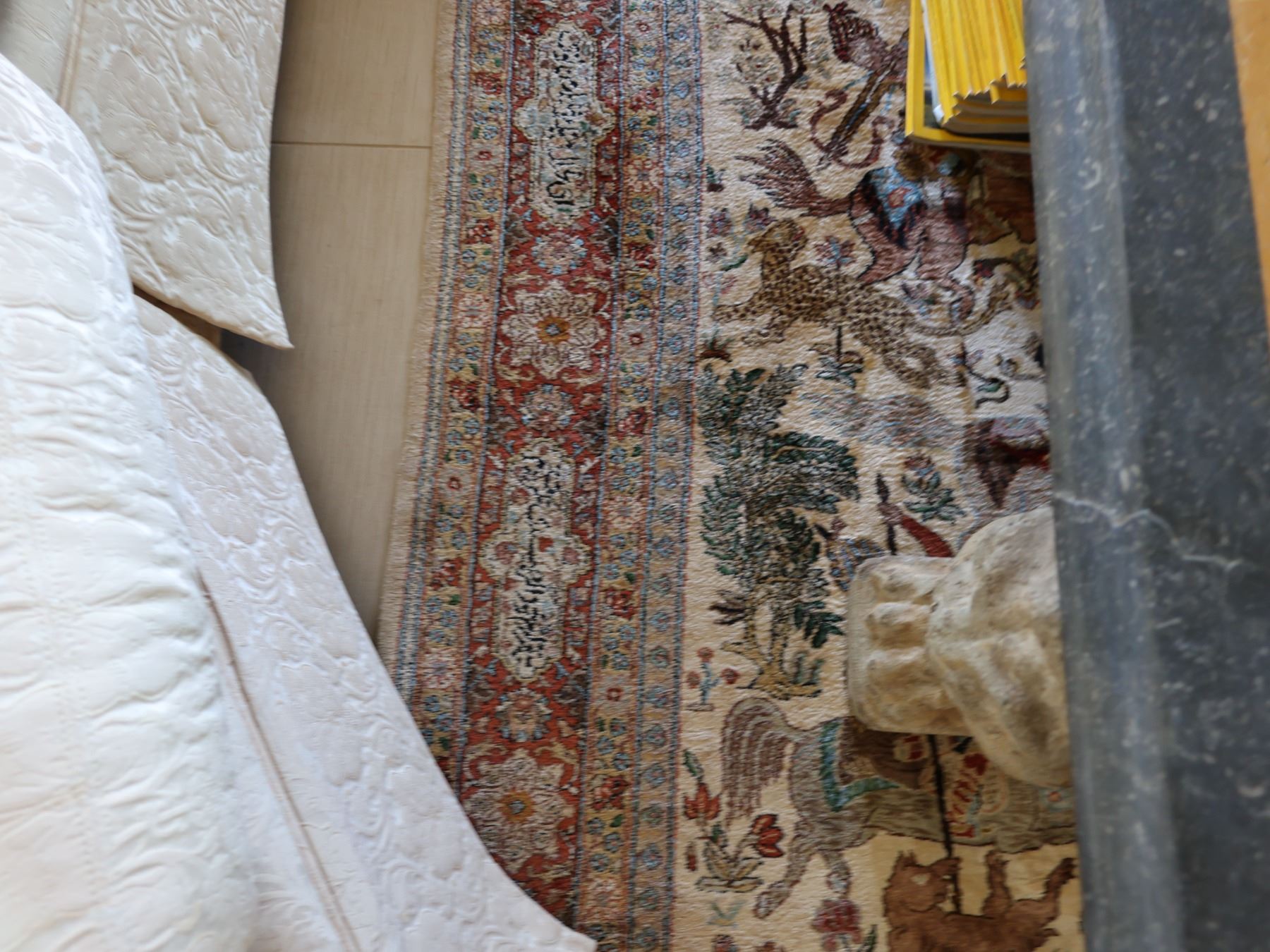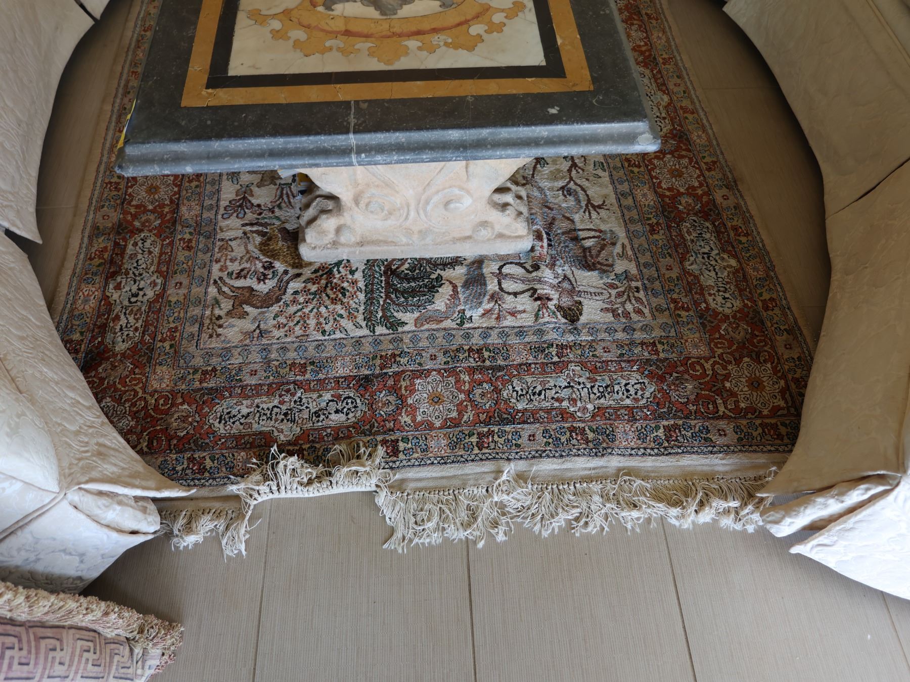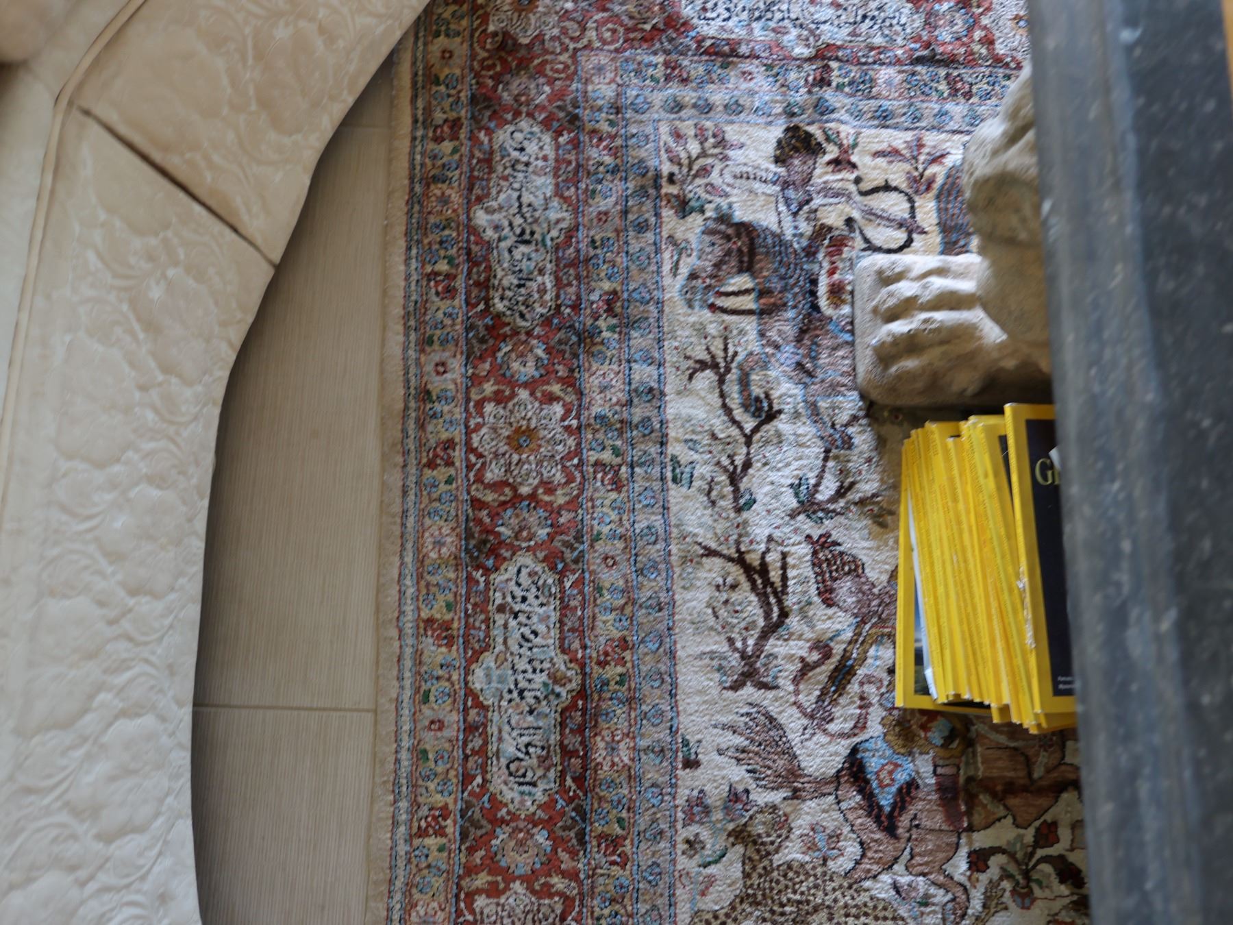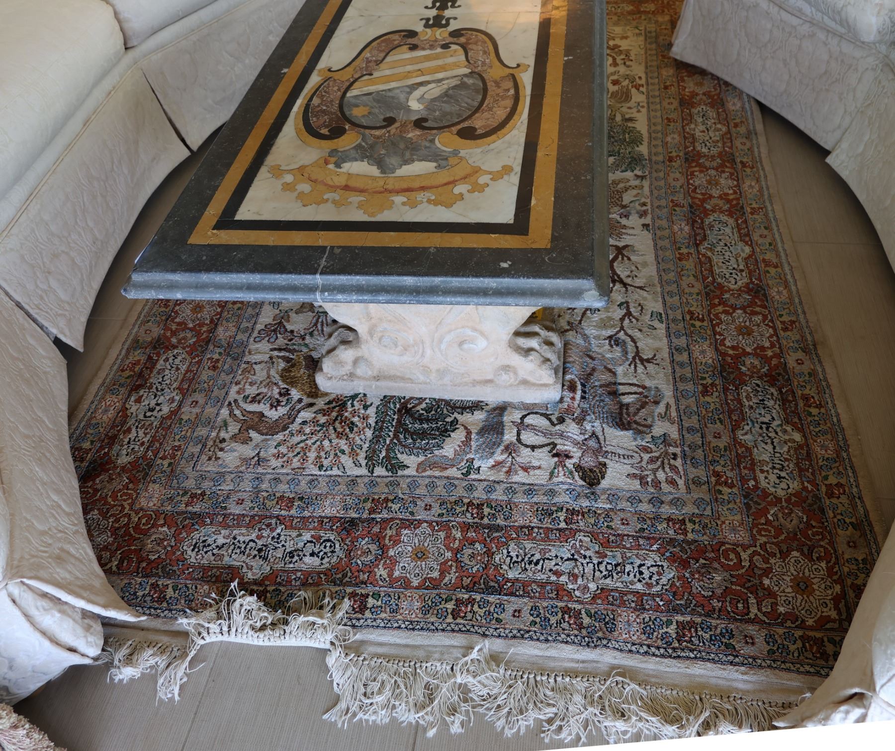 Large Middle Eastern Pictorial Area Rug w/ Fringe 91" x 55"