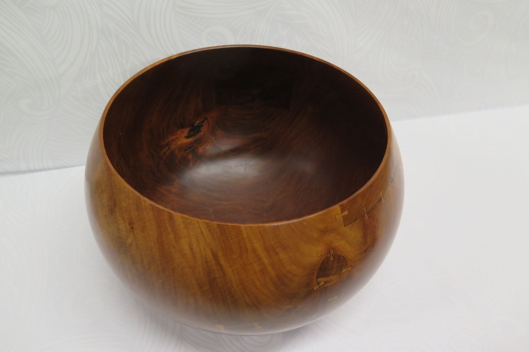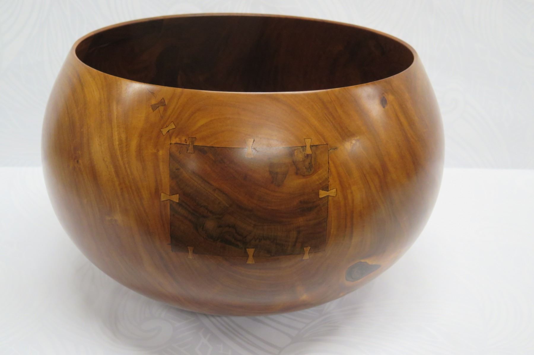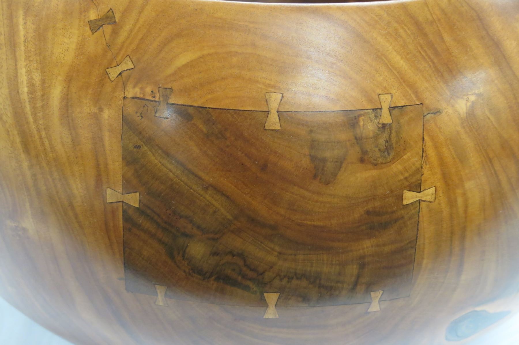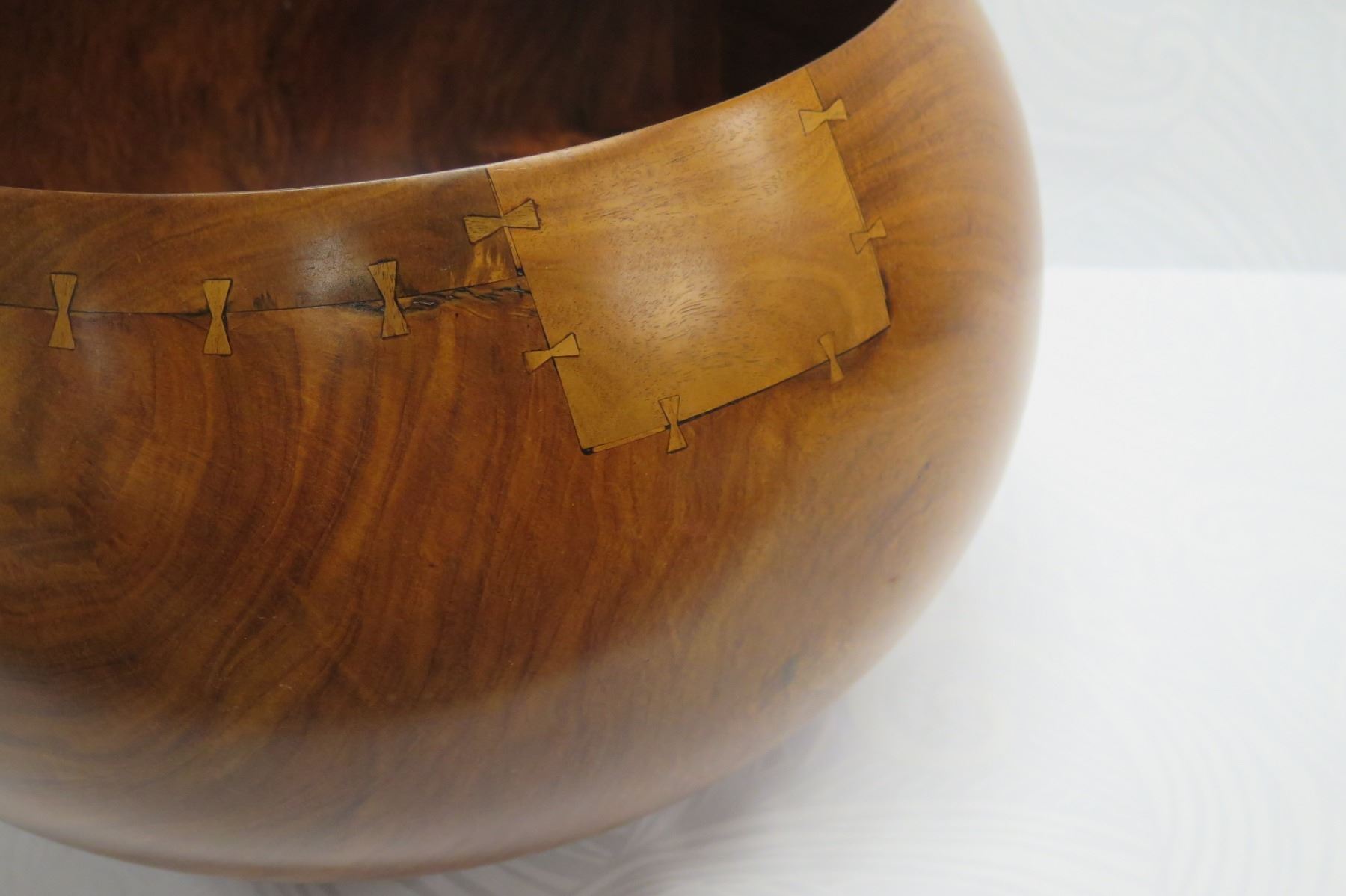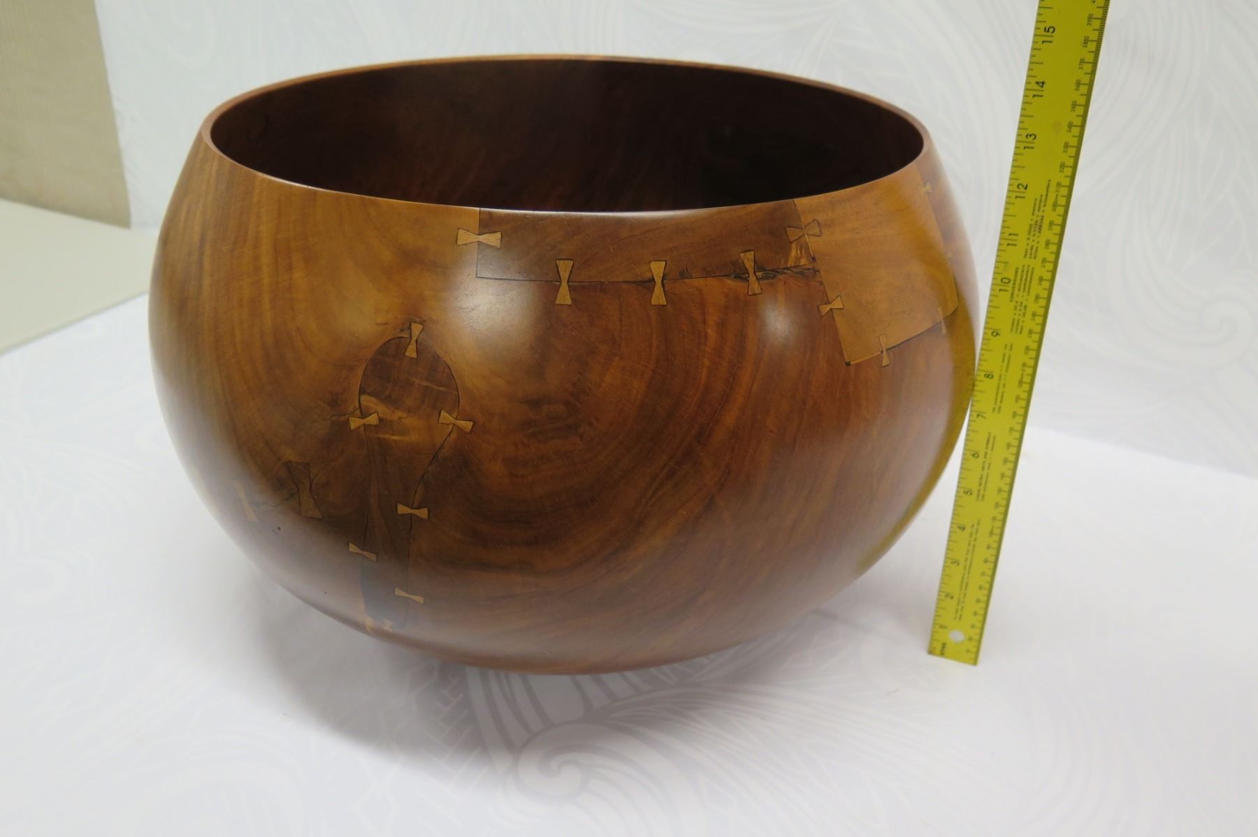 Very Large Milo Wood Bowl w/ Patch Details, Artist Robert W. Butts, Approx. 16" Dia, 13" Tall