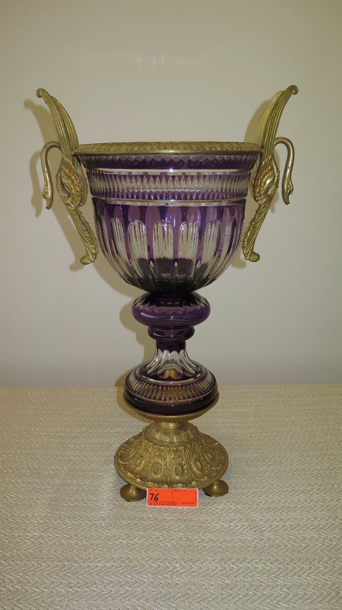 Large Ornate Amethyst Italian Goblet Vase w/Gilt Embellishments (approx. 23" H)