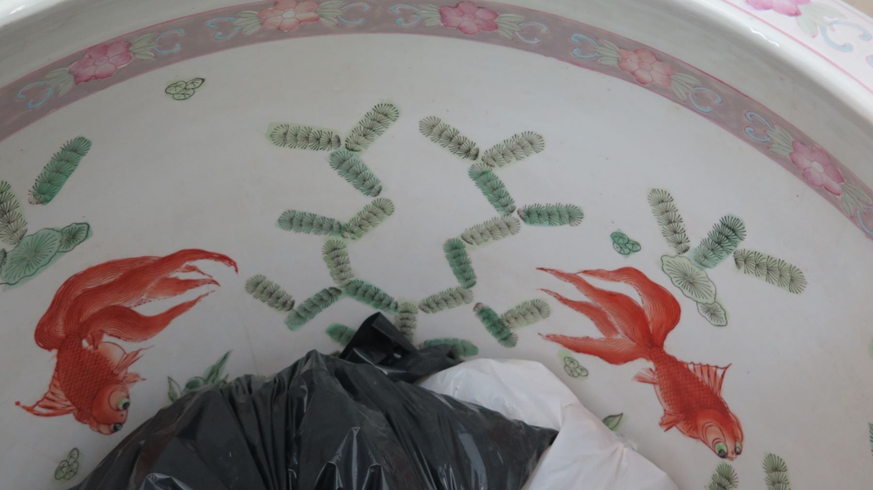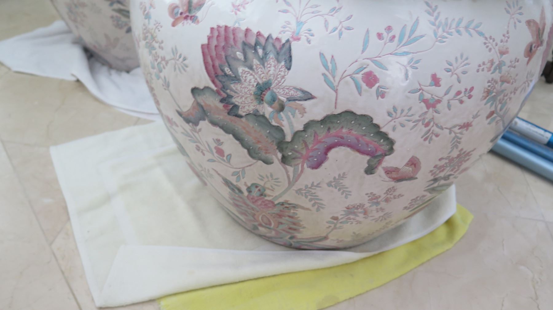 Large Painted White Porcelain/Ceramic Planter 20.5" Top Dia., 18" H