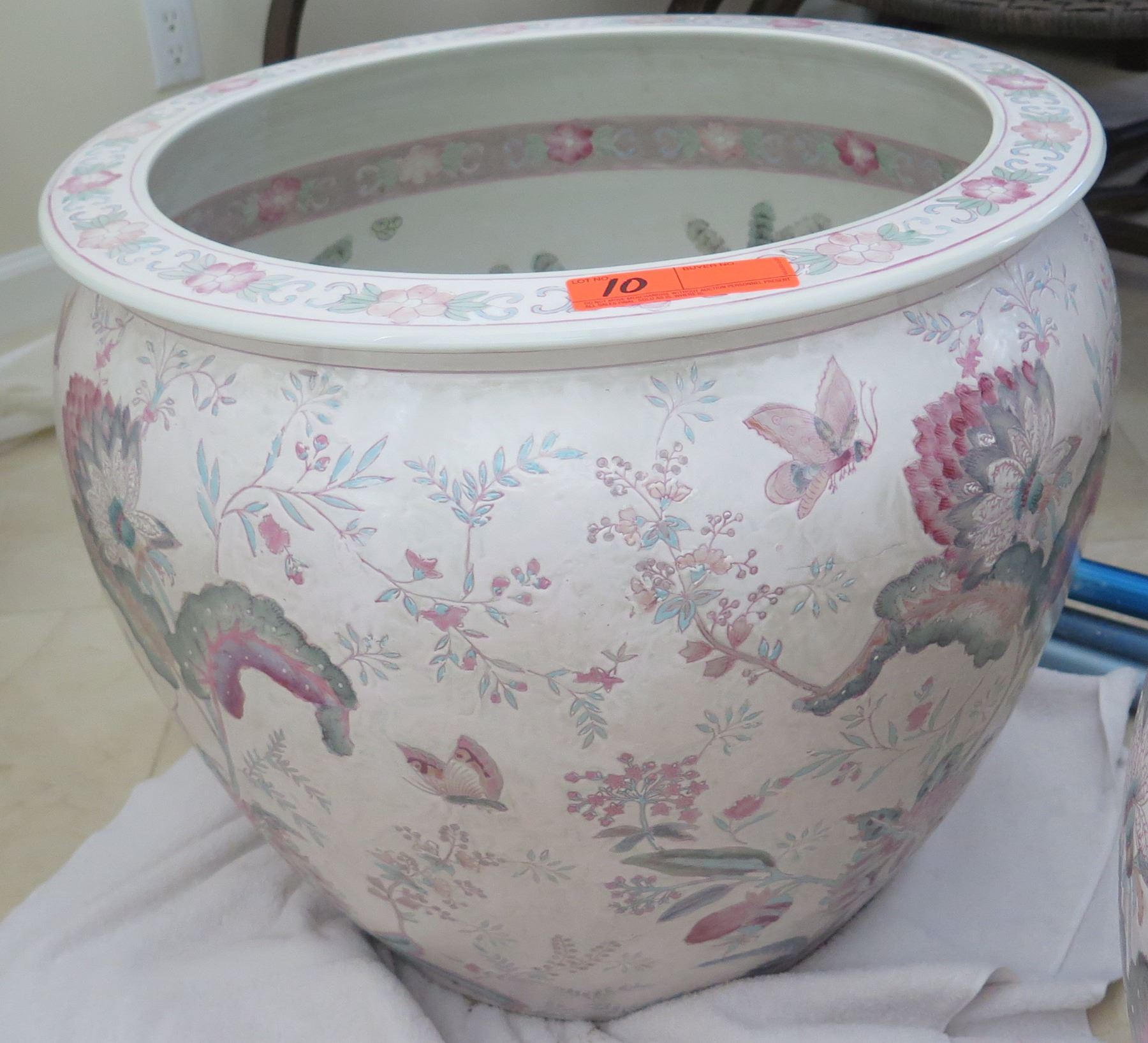 Large Painted White Porcelain/Ceramic Planter 20.5" Top Dia., 18" H