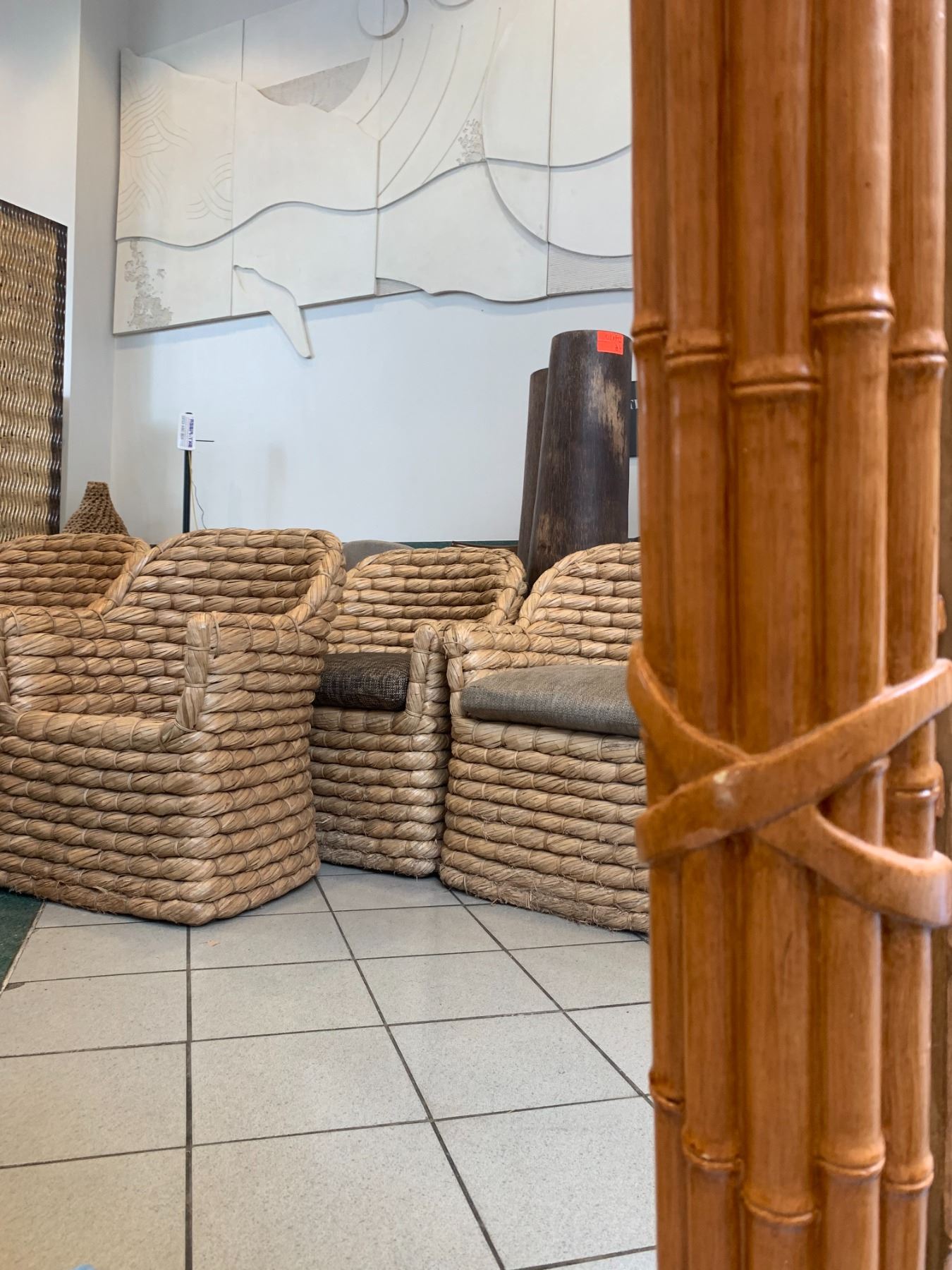 Large Rattan-Look Mirror 31.5"W, 48" Tall (not real wood)