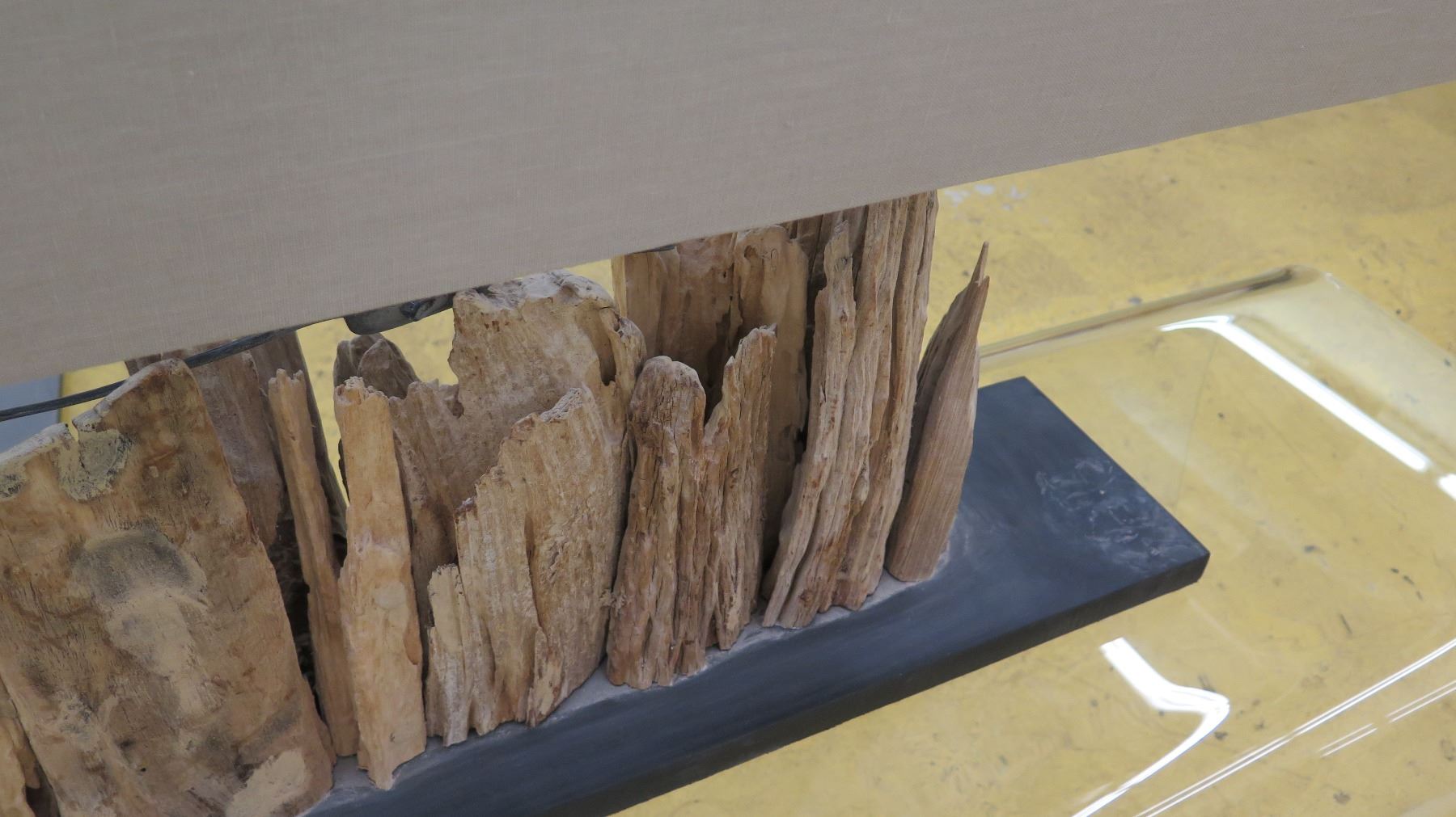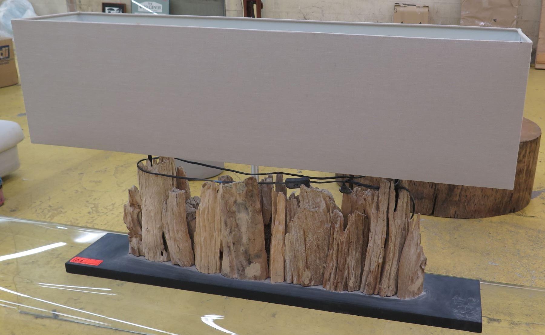 Large Rectangular Lamp w/Natural Driftwood Base, Box Shade (45" x 10"), 27" H (shade sits perfectly