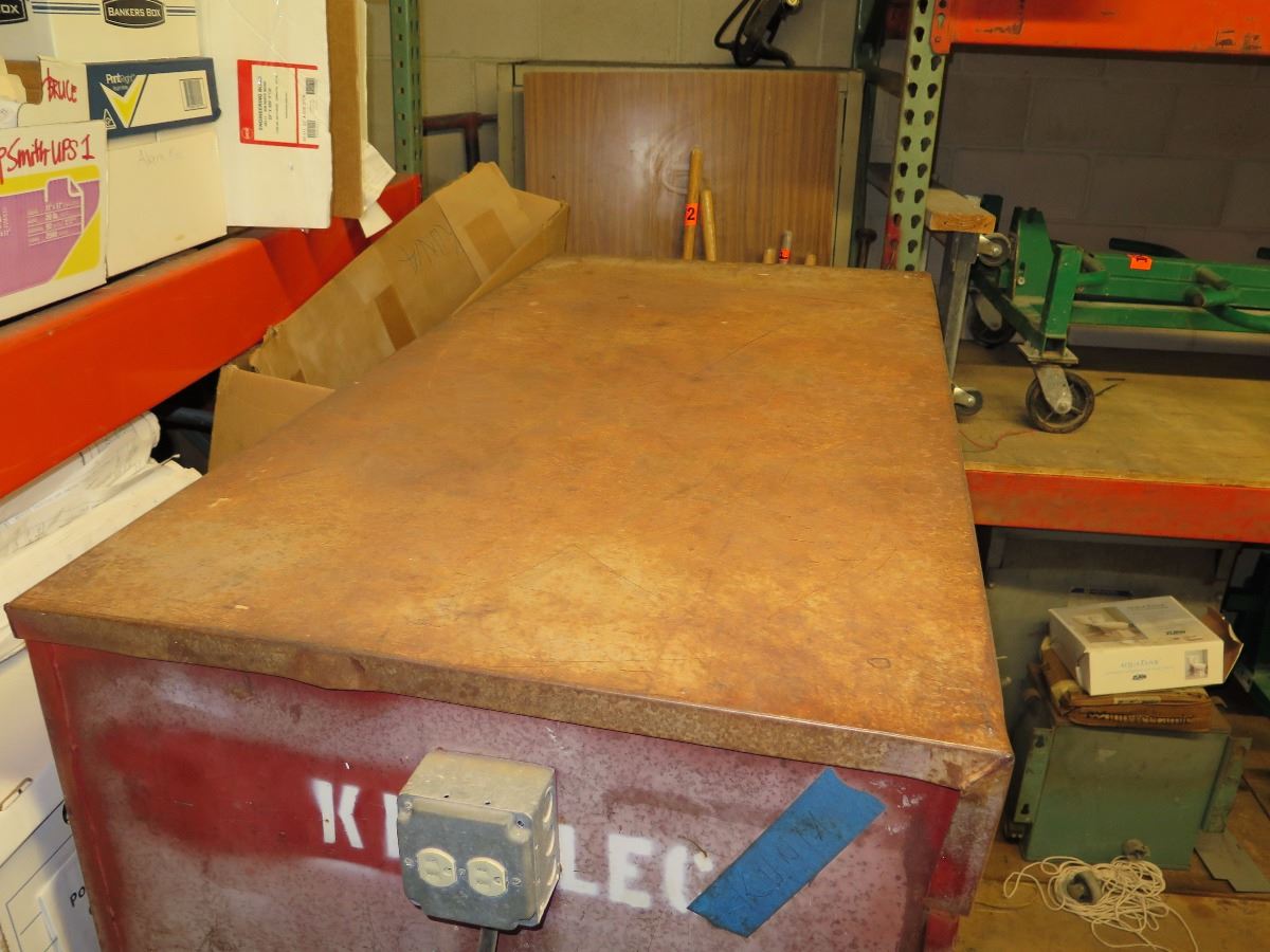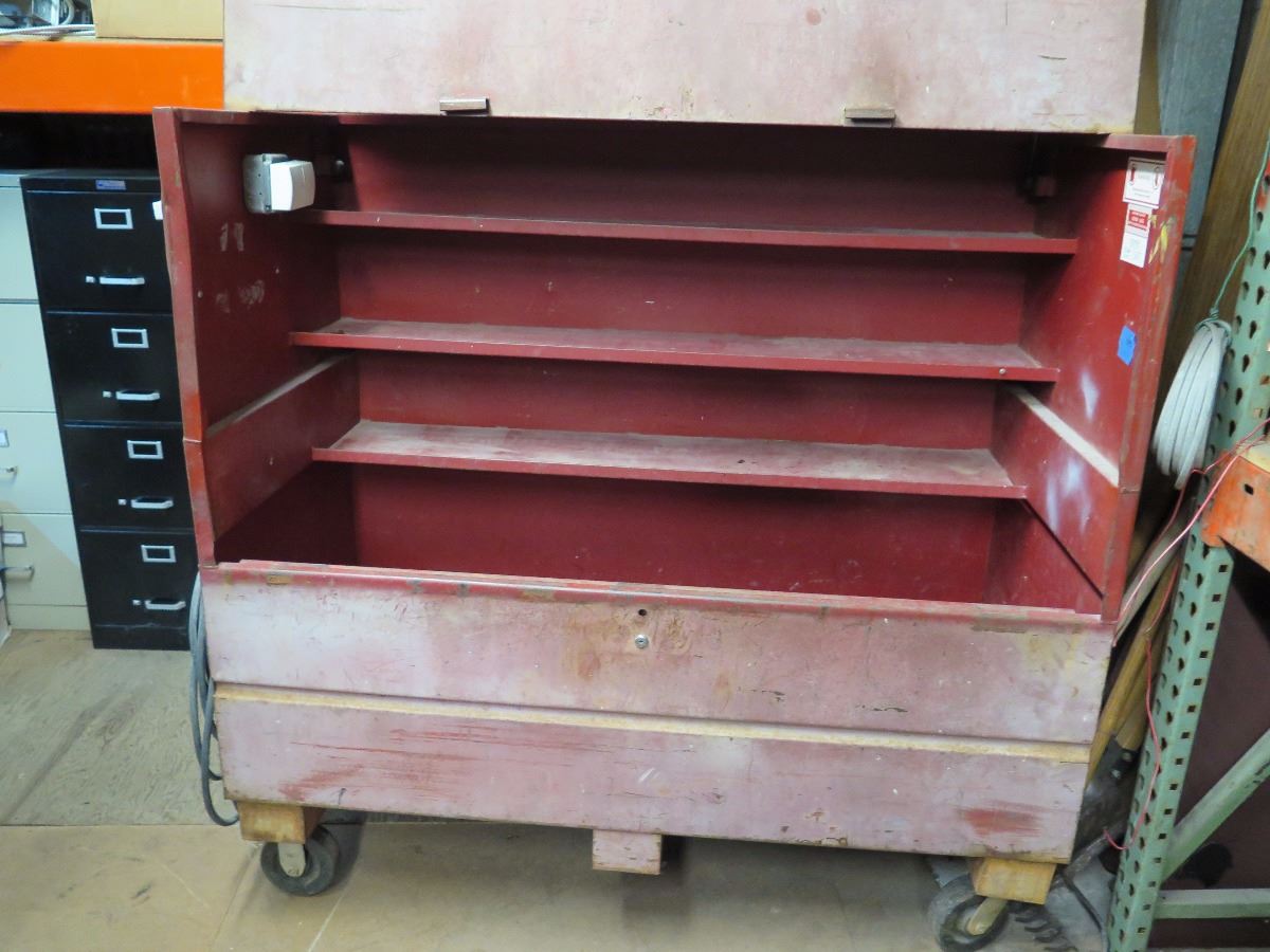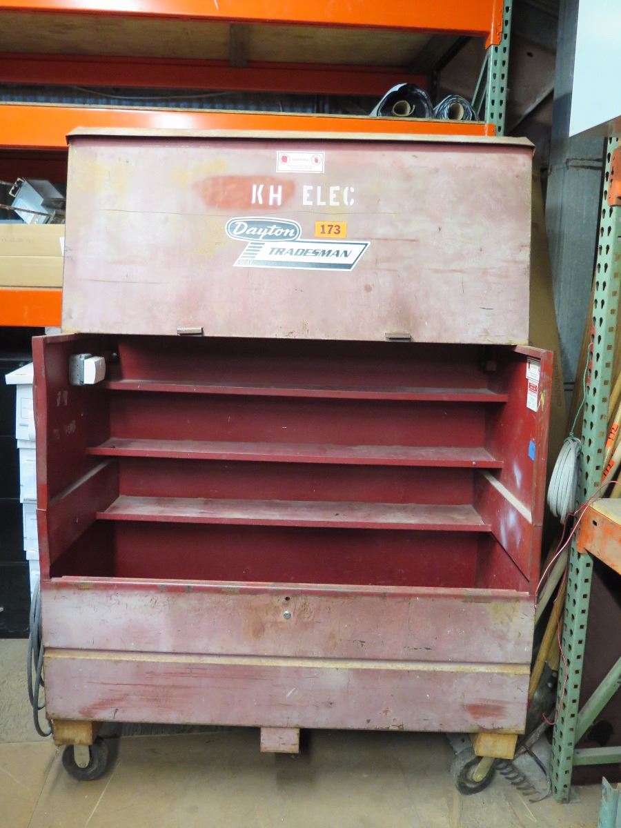 Large Rolling Dayton Tradesman Flat-Top Metal Storage Box w/Shelving 5'long, 30"wide, 59"tall
