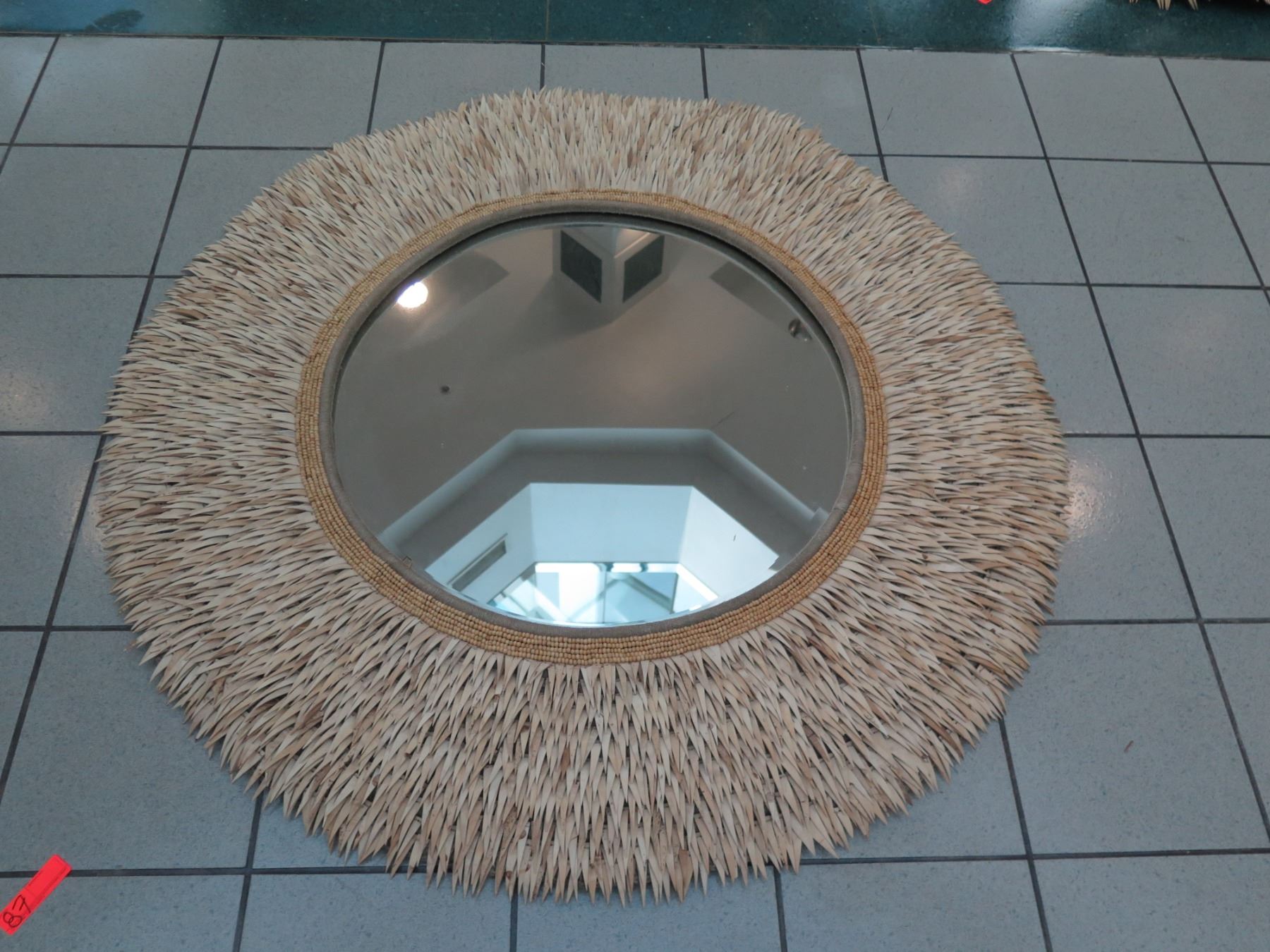 Large Round Mirror with Coconut Shell Fringe (55  Overall Diameter)