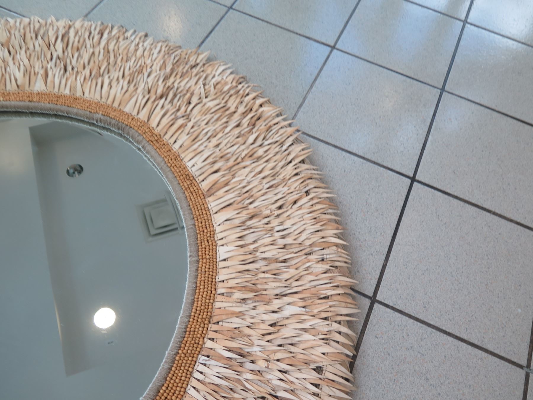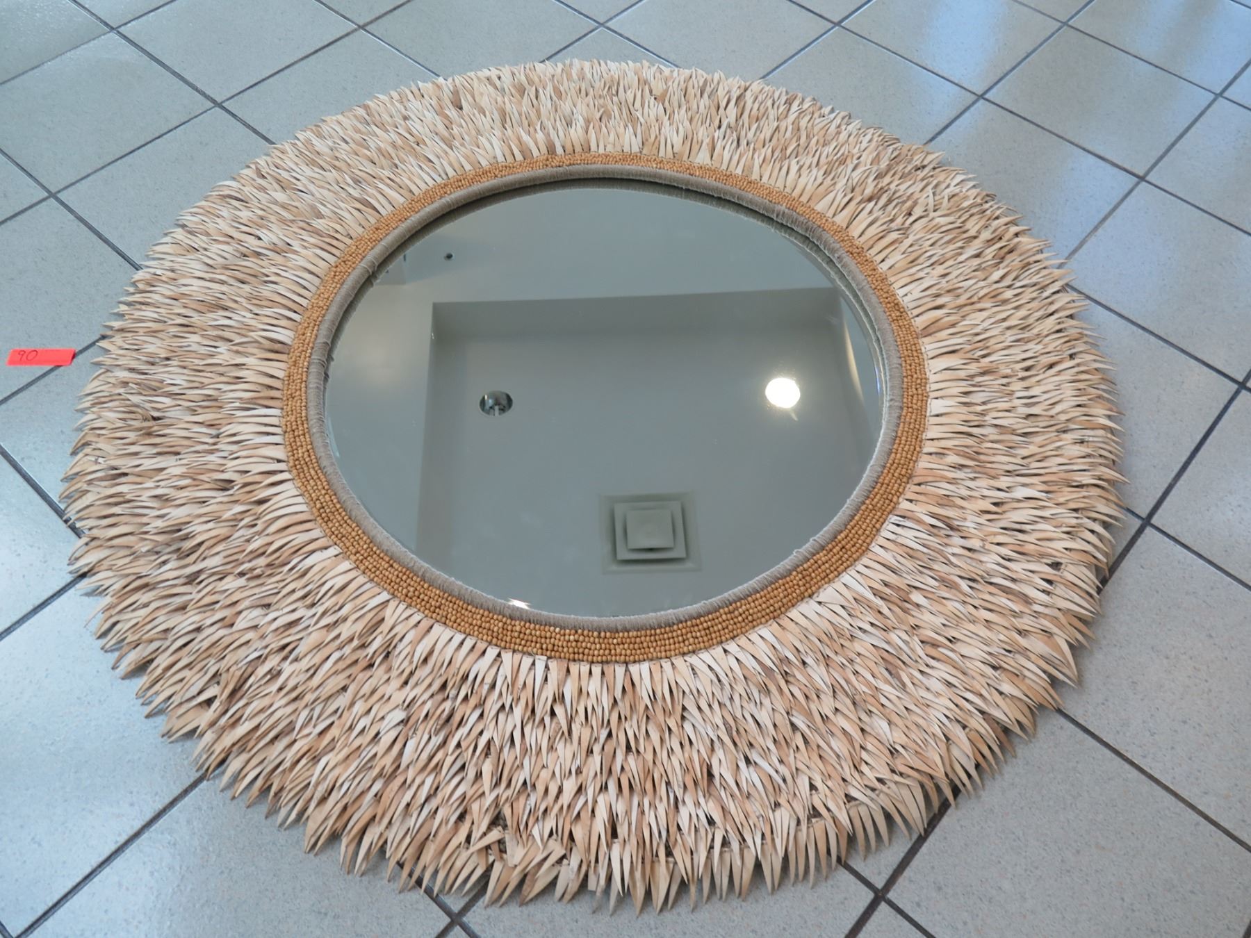Large Round Mirror with Coconut Shell Fringe (55" Overall Diameter)