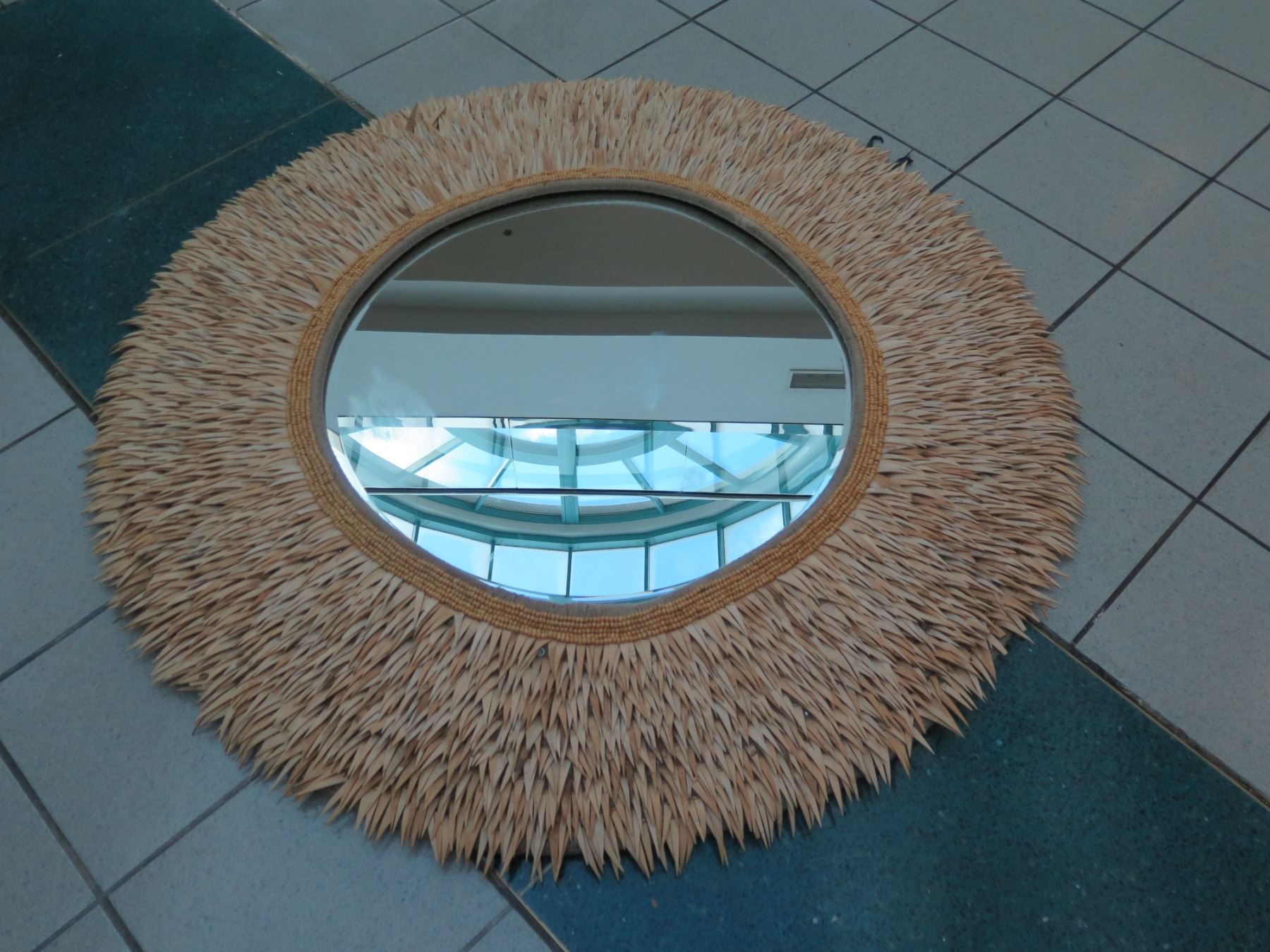 Large Round Mirror with Coconut Shell Fringe (55  Overall Diameter)