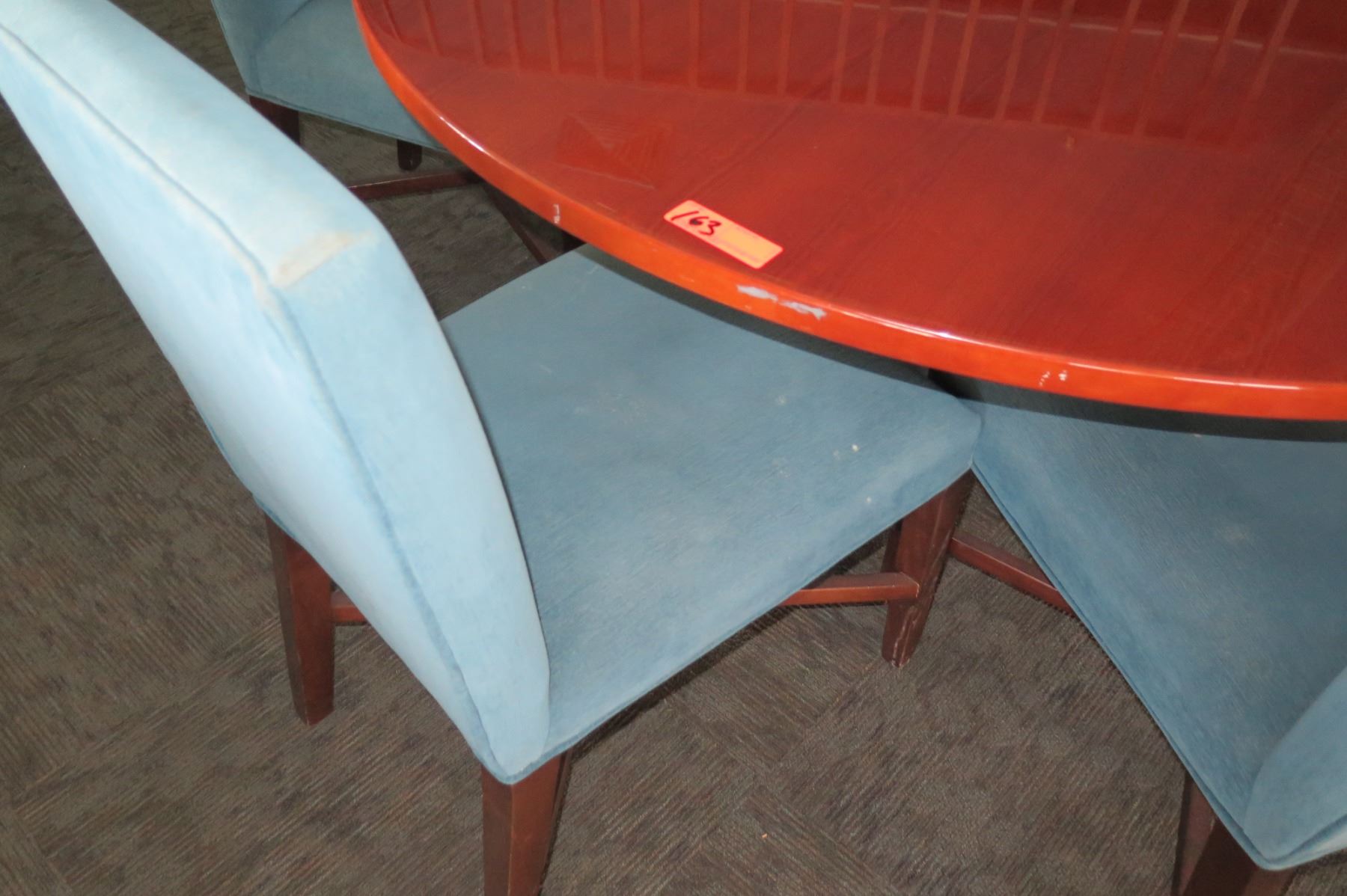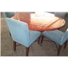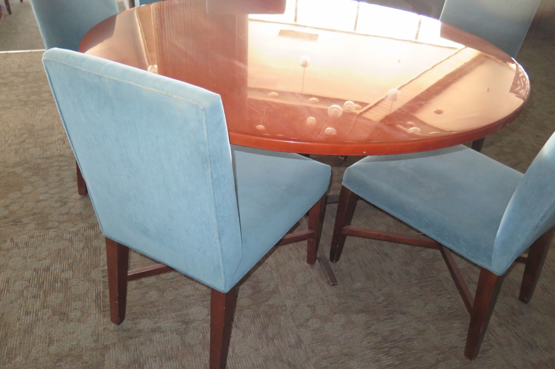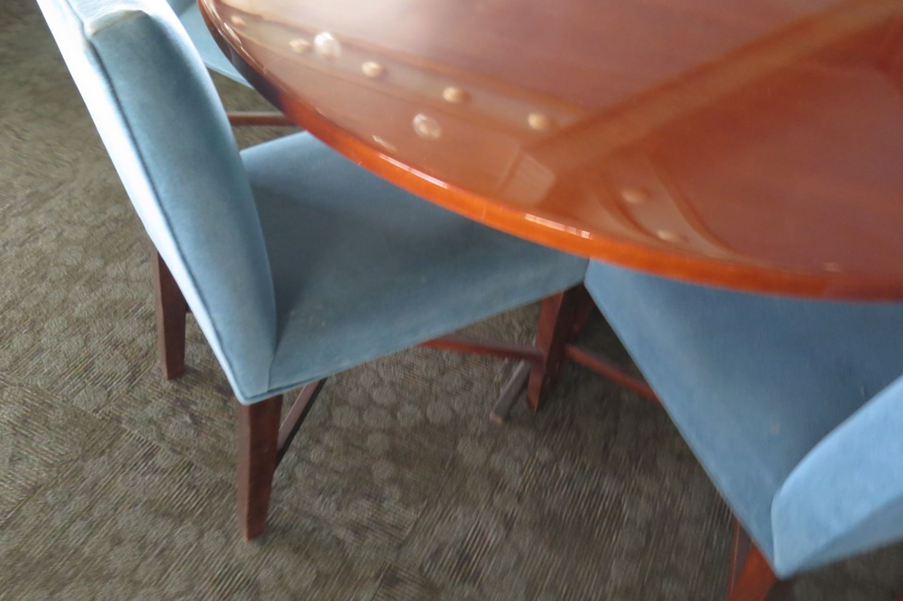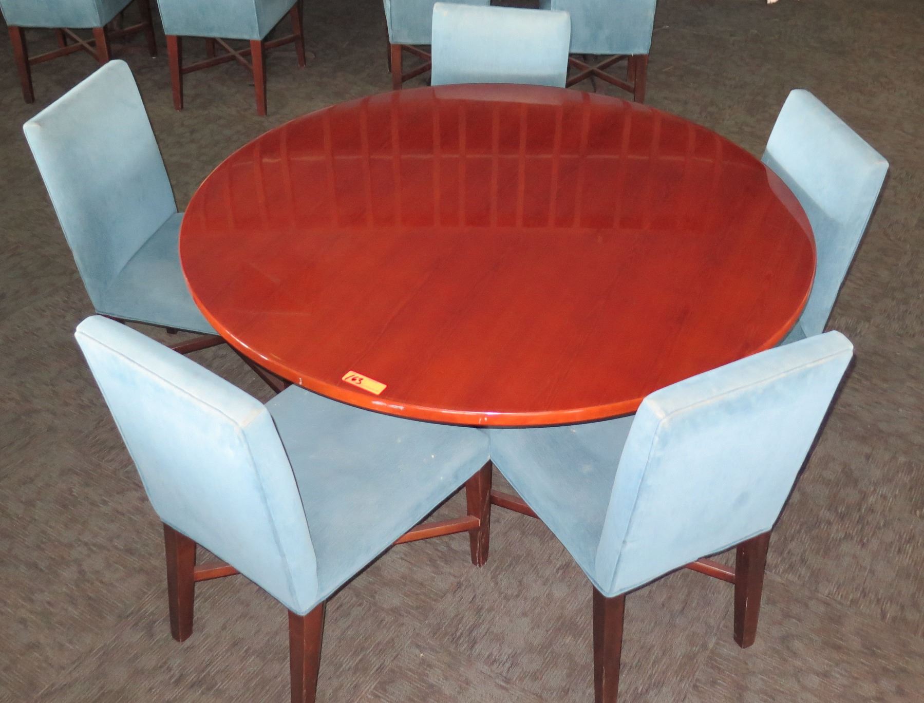 Large Round Table w/ Metal Base (30"Dia, 30"H) & 5 Upholstered Chairs