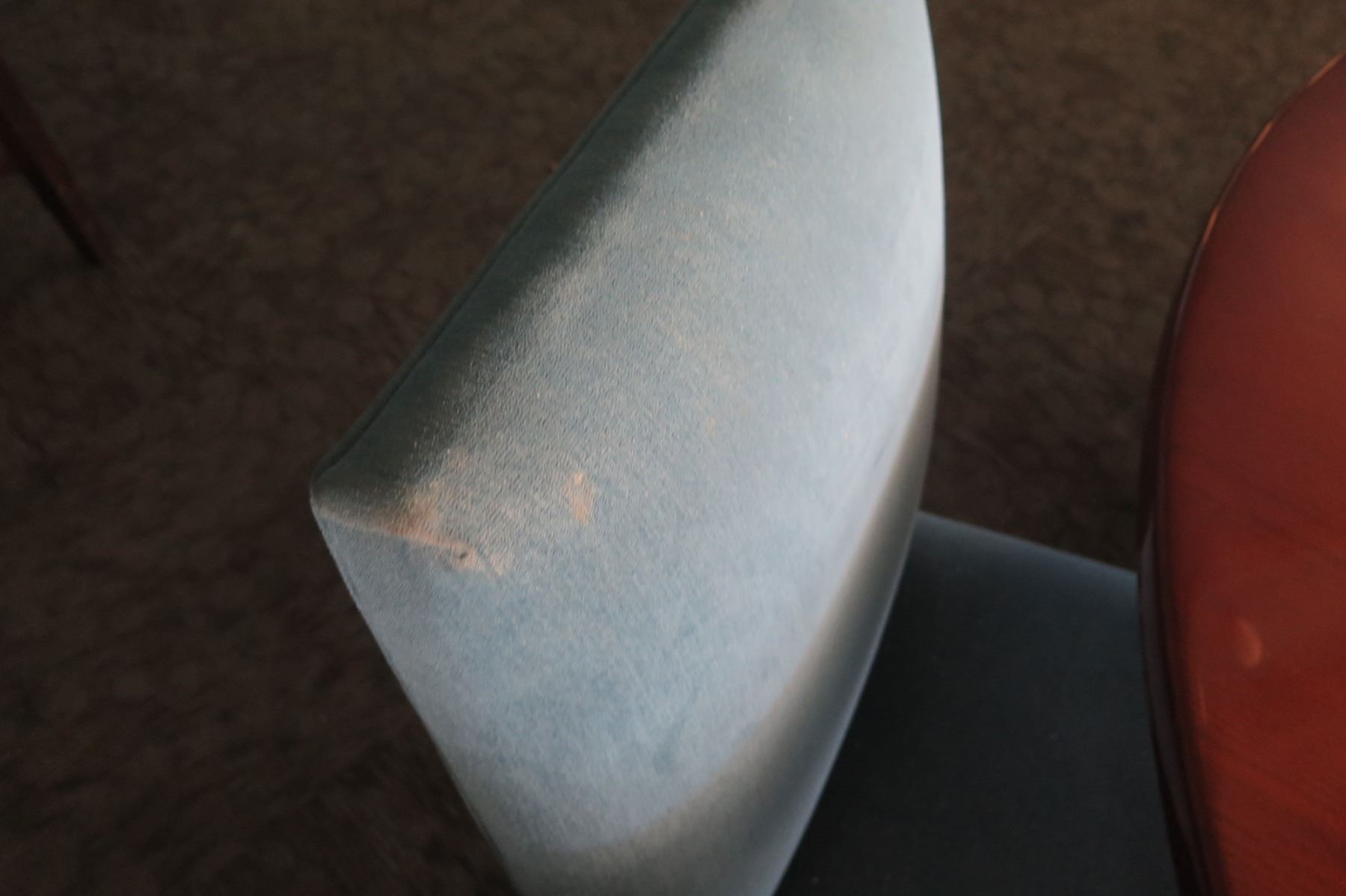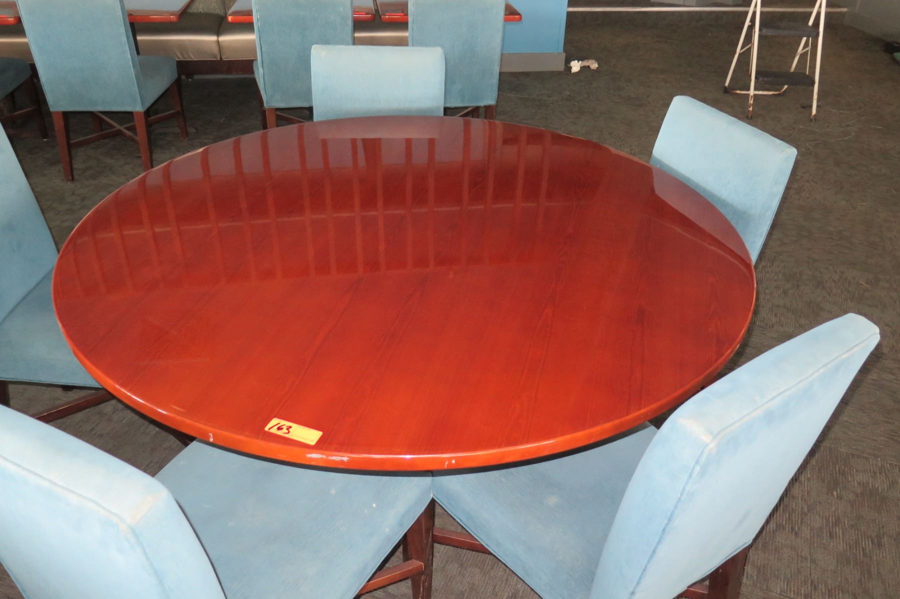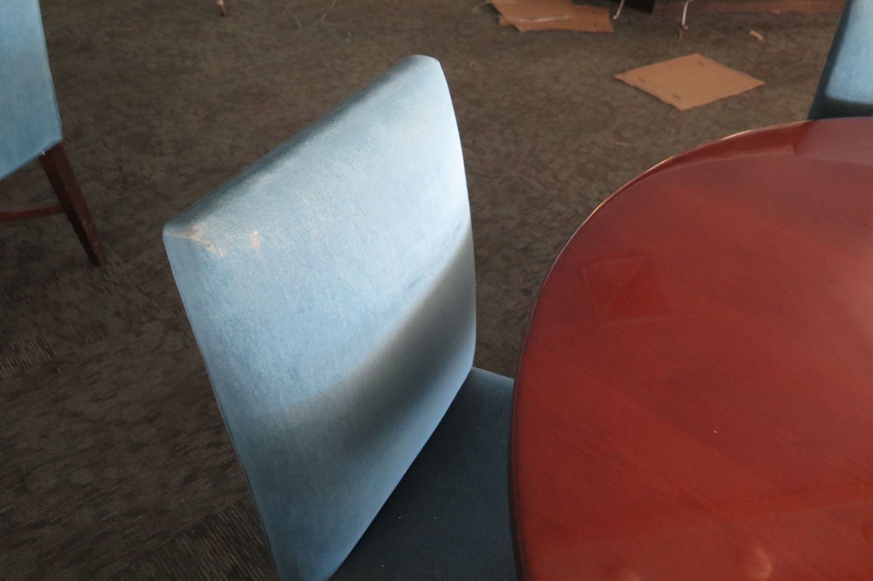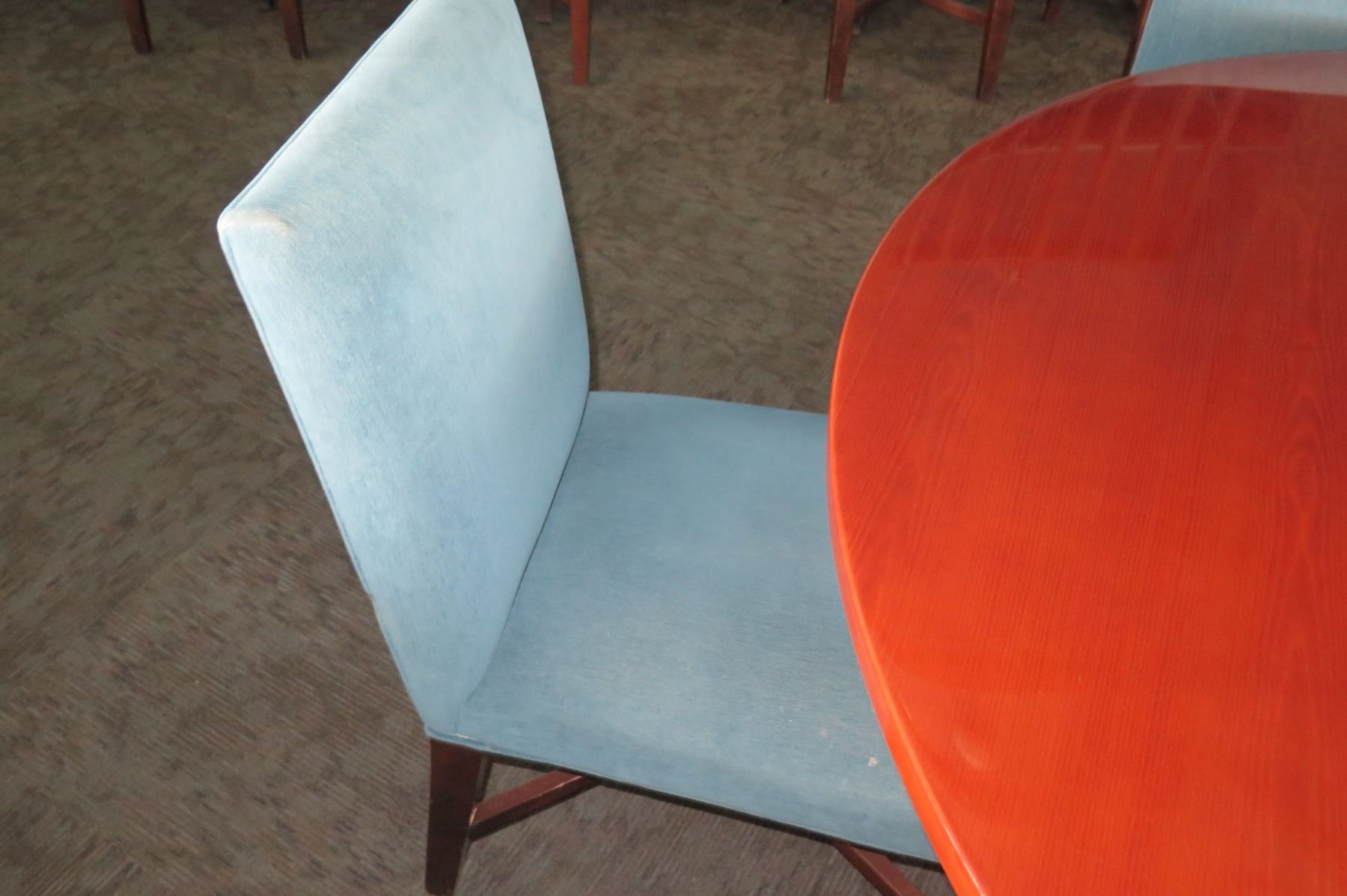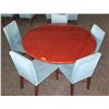 Large Round Table w/ Metal Base (30"Dia, 30"H) & 5 Upholstered Chairs