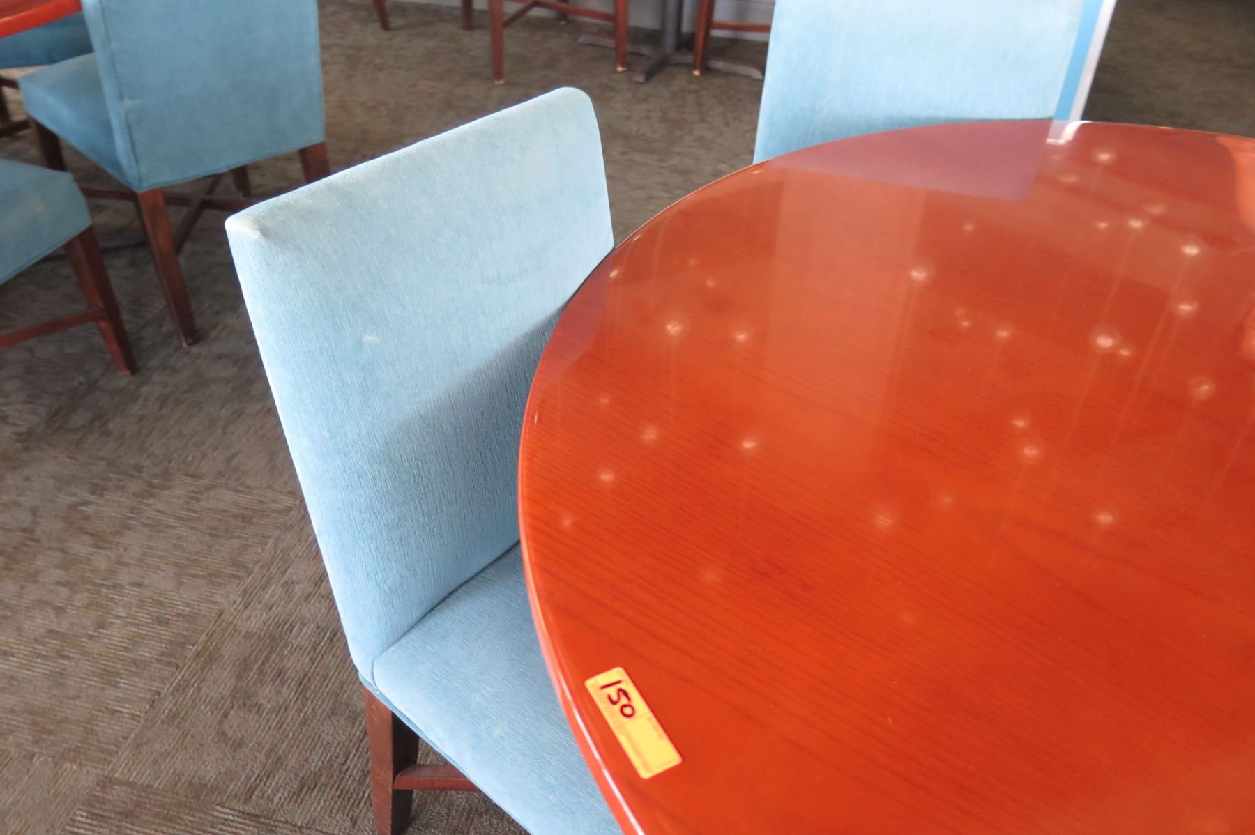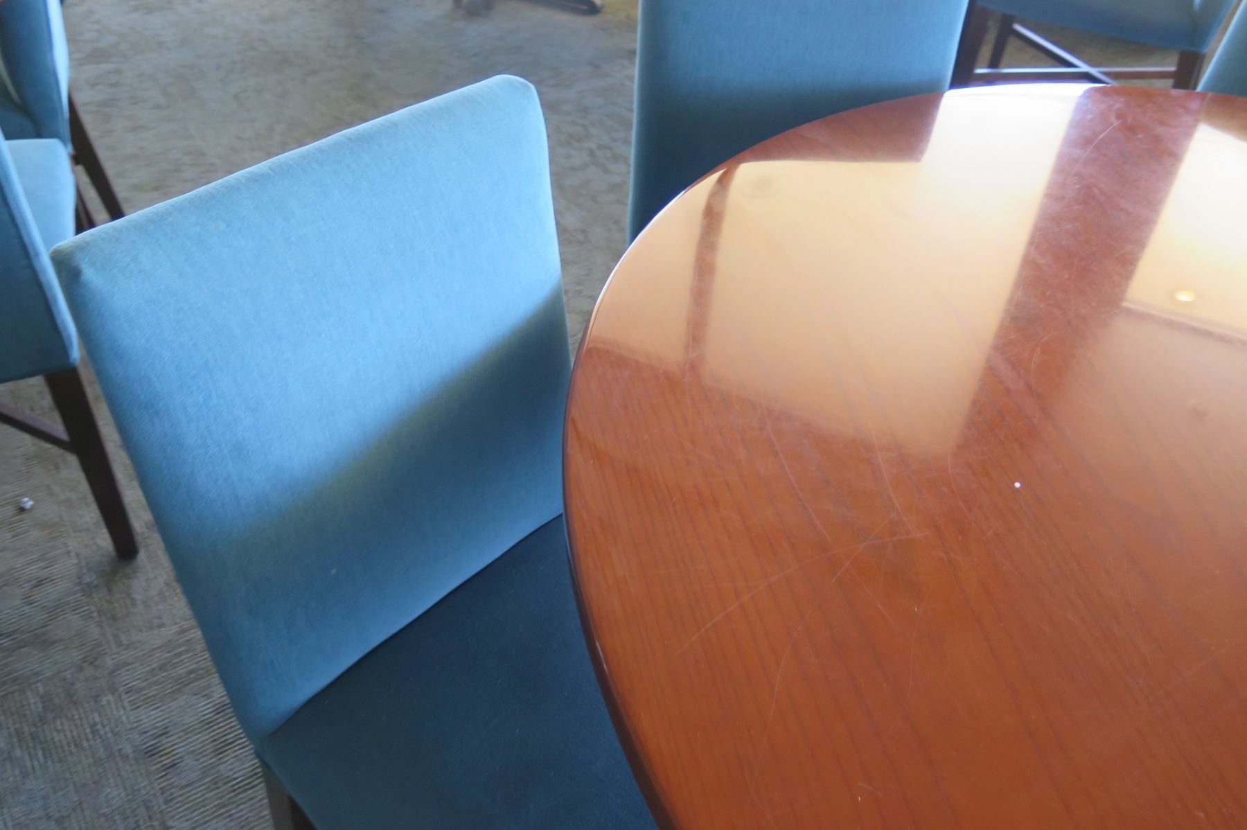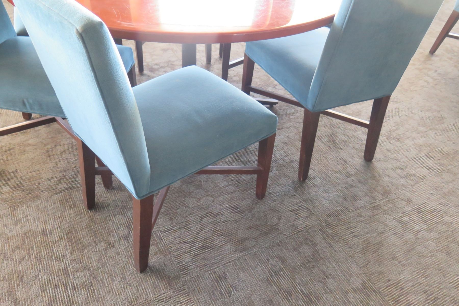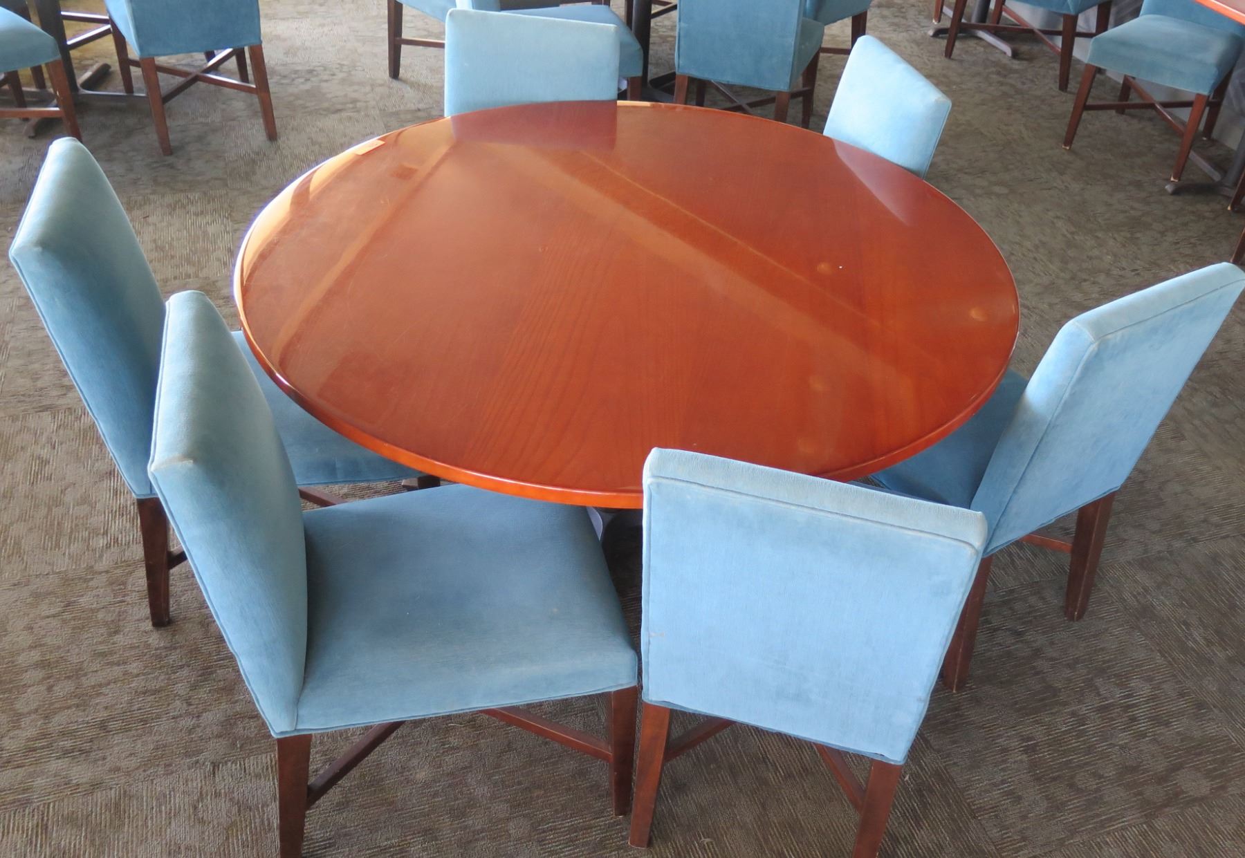 Large Round Table w/ Metal Base (30"Dia, 30"H) & 6 Upholstered Chairs