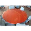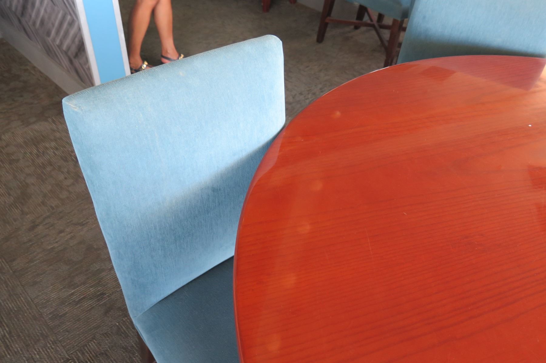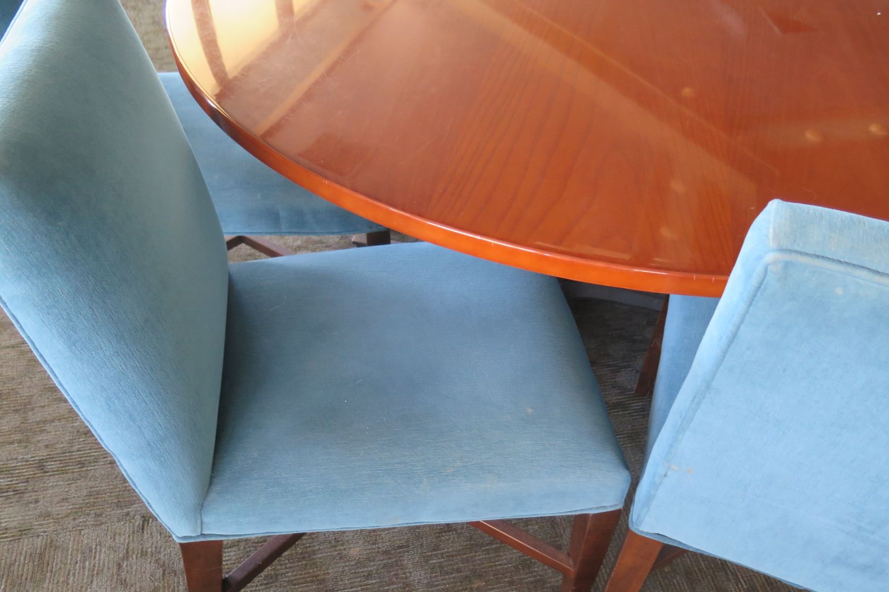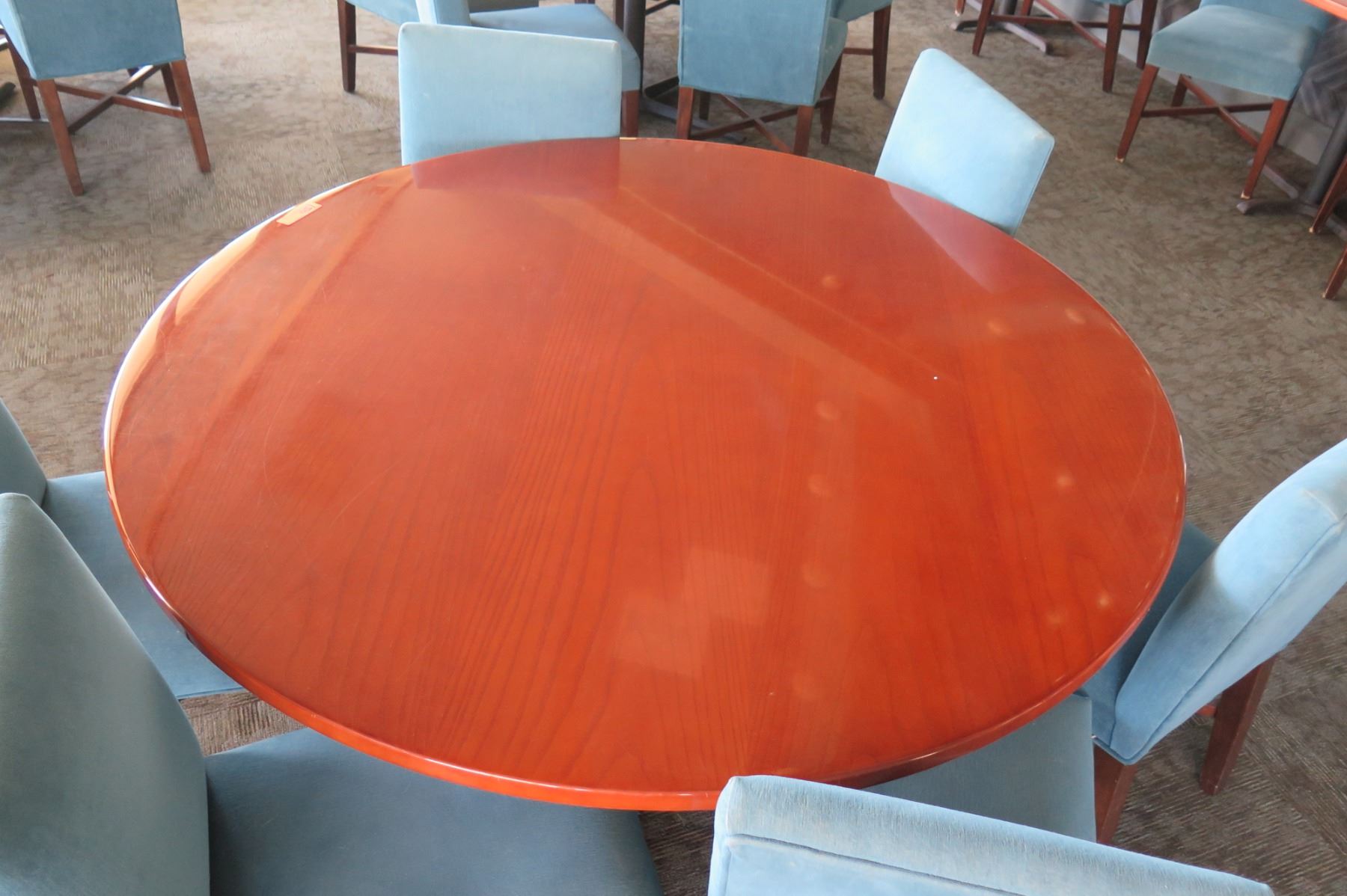 Large Round Table w/ Metal Base (30"Dia, 30"H) & 6 Upholstered Chairs