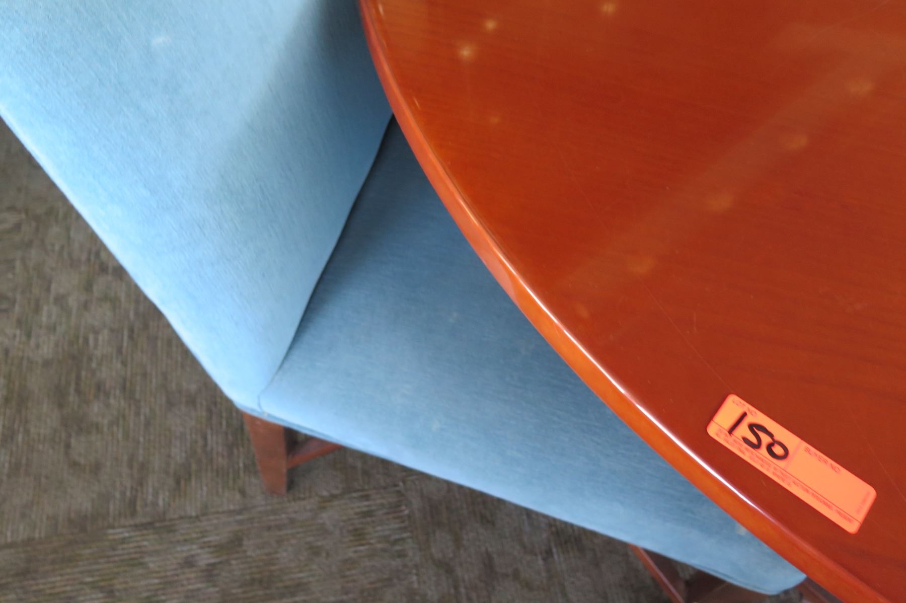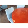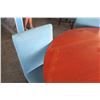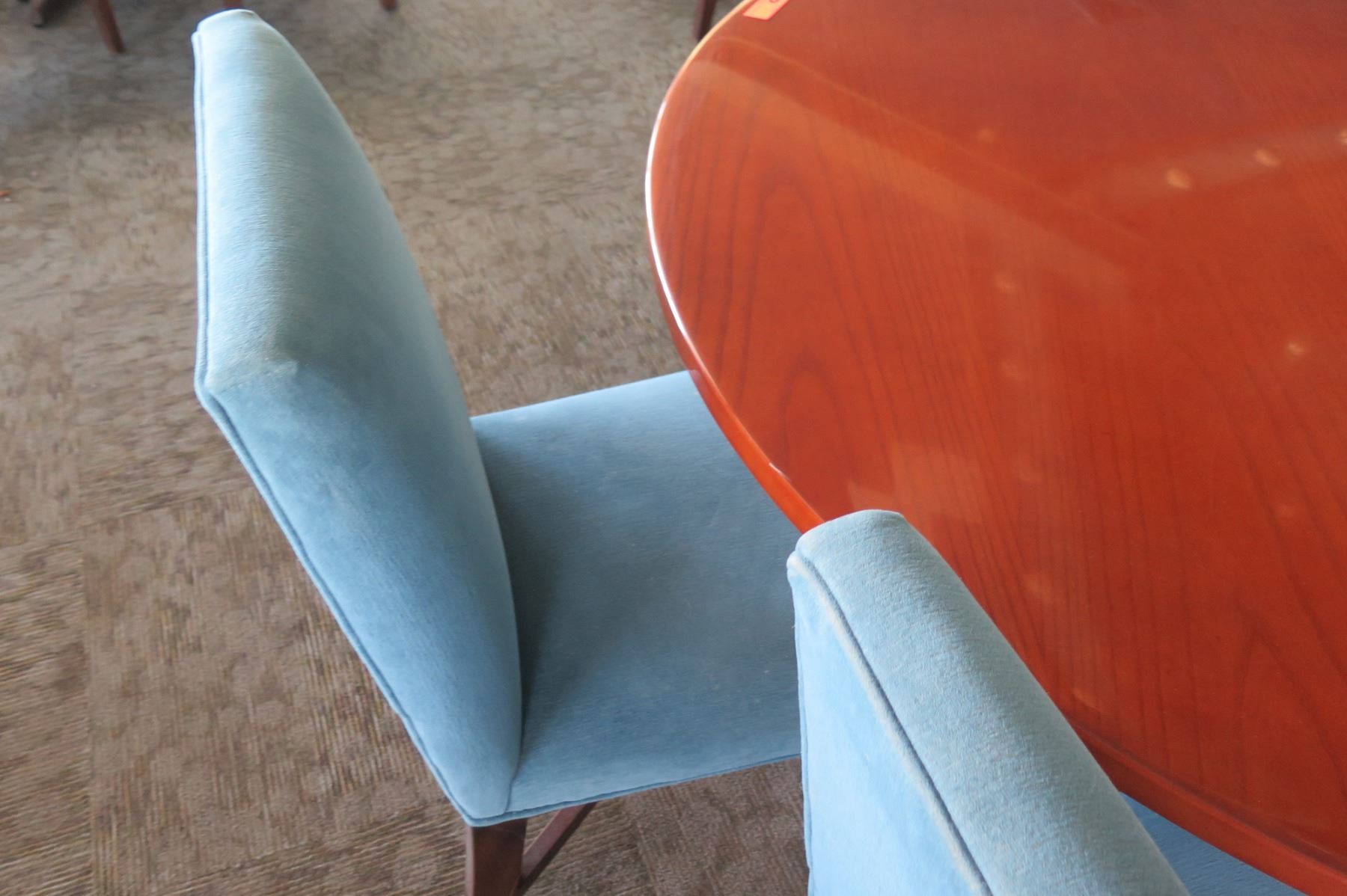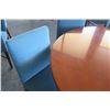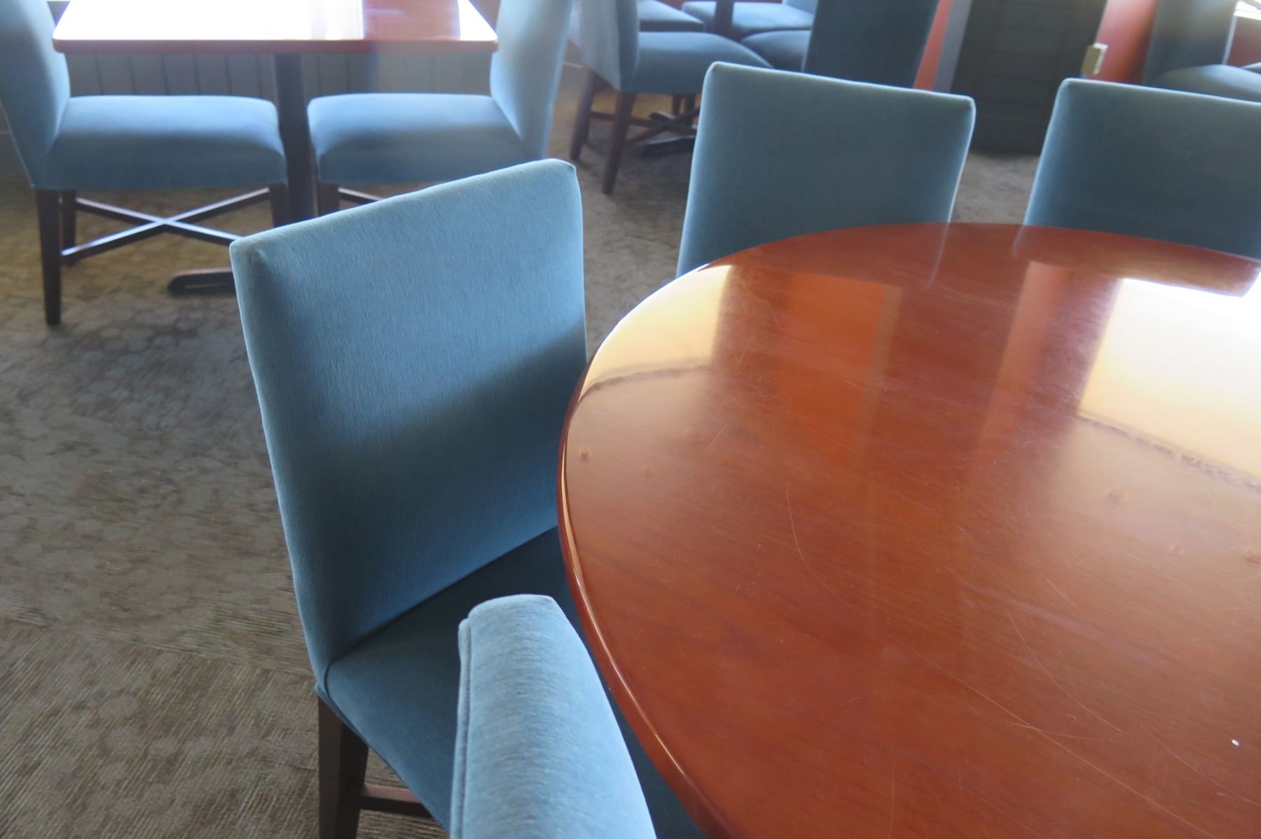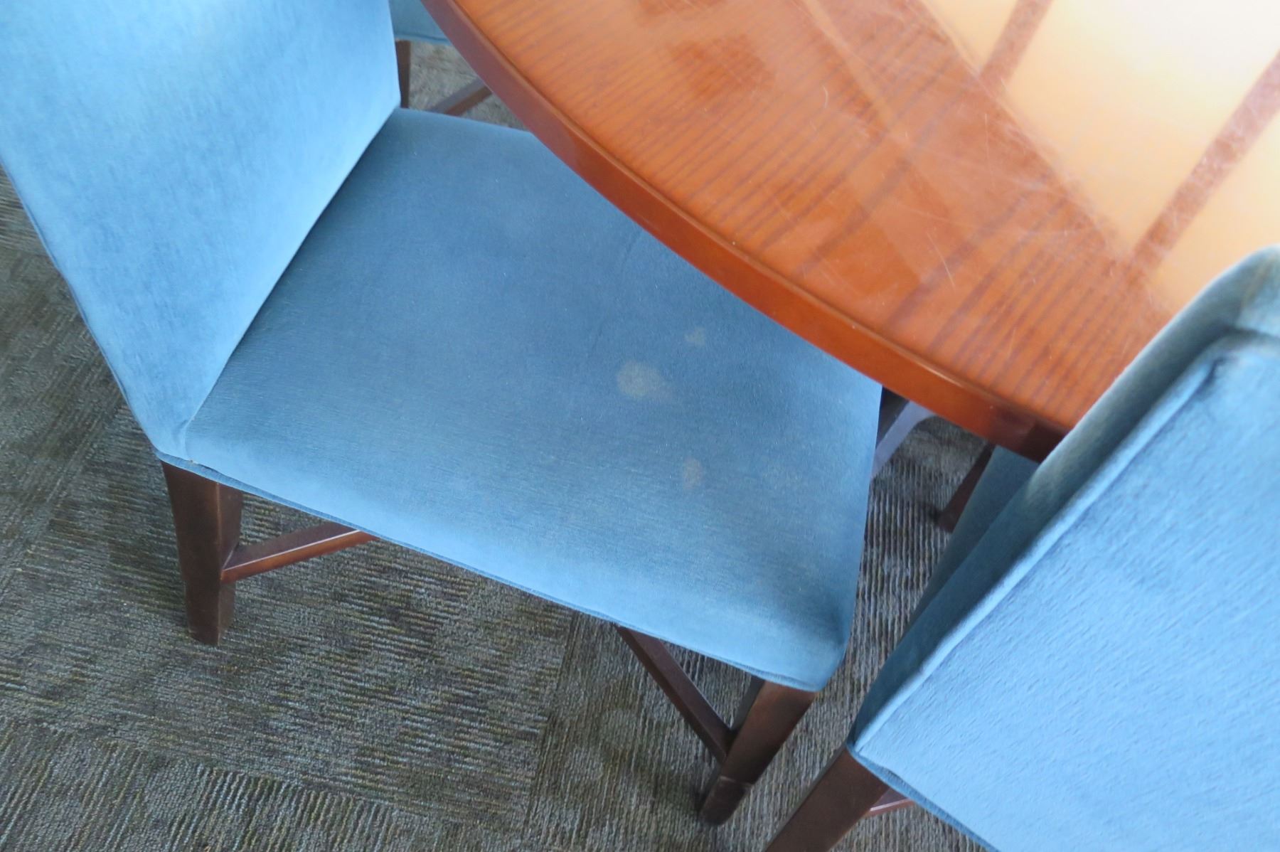 Large Round Table w/ Metal Base (30"Dia, 30"H) & 6 Upholstered Chairs