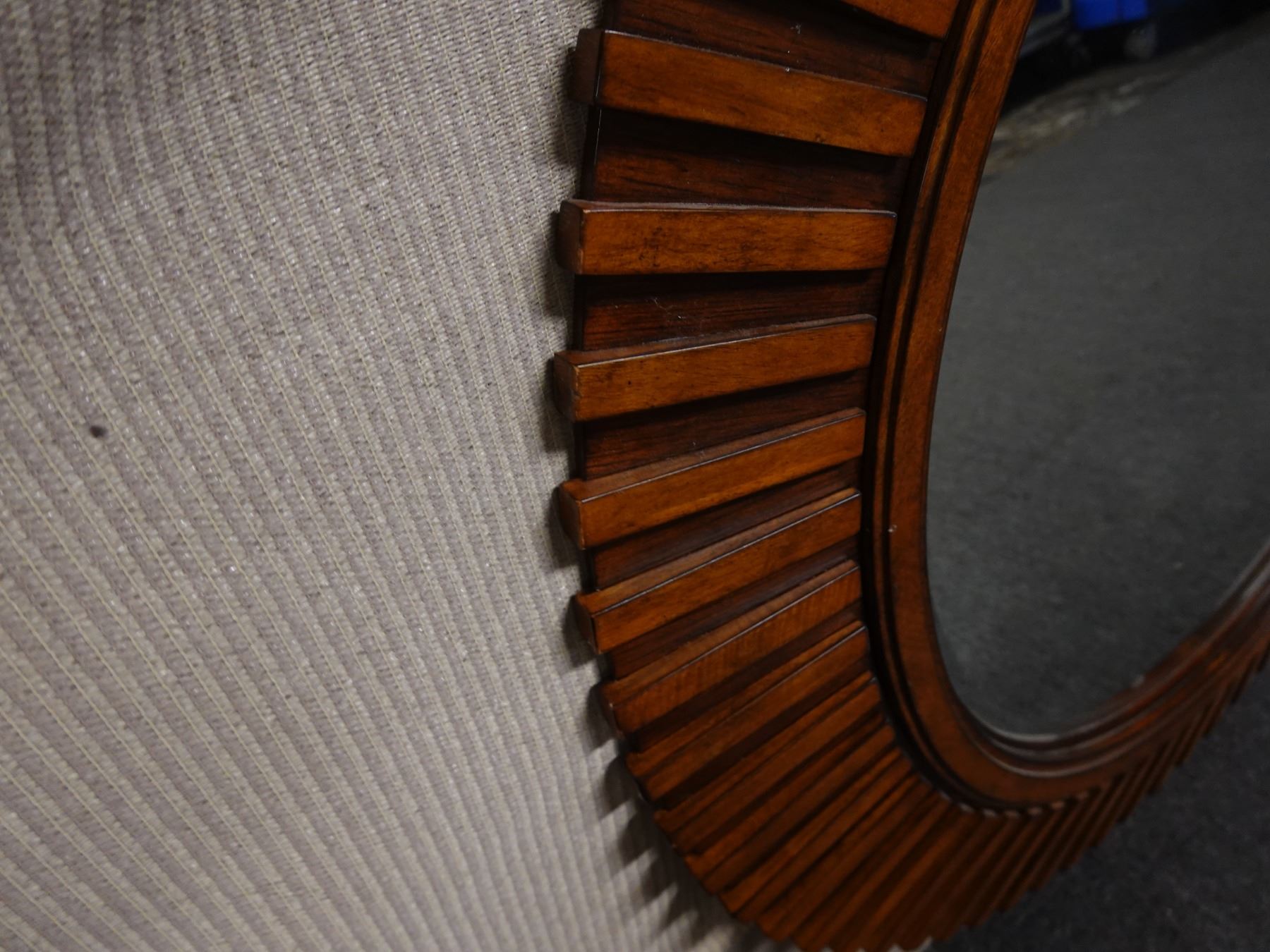 Large Round Wooden Wall Mirror w/ Slatted Design 45" Dia