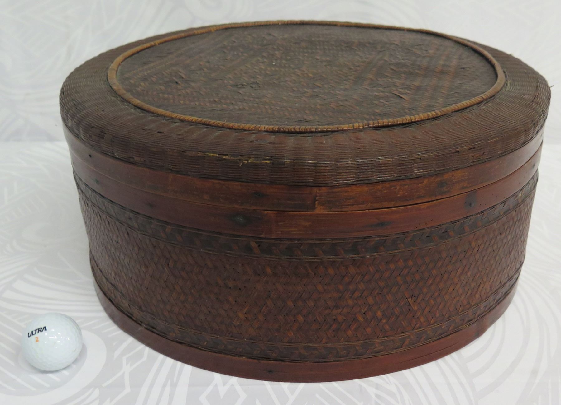 Large Round Woven Container w/ Lid 16" Dia, 8" High. (Golf ball shown in photo to show scale)