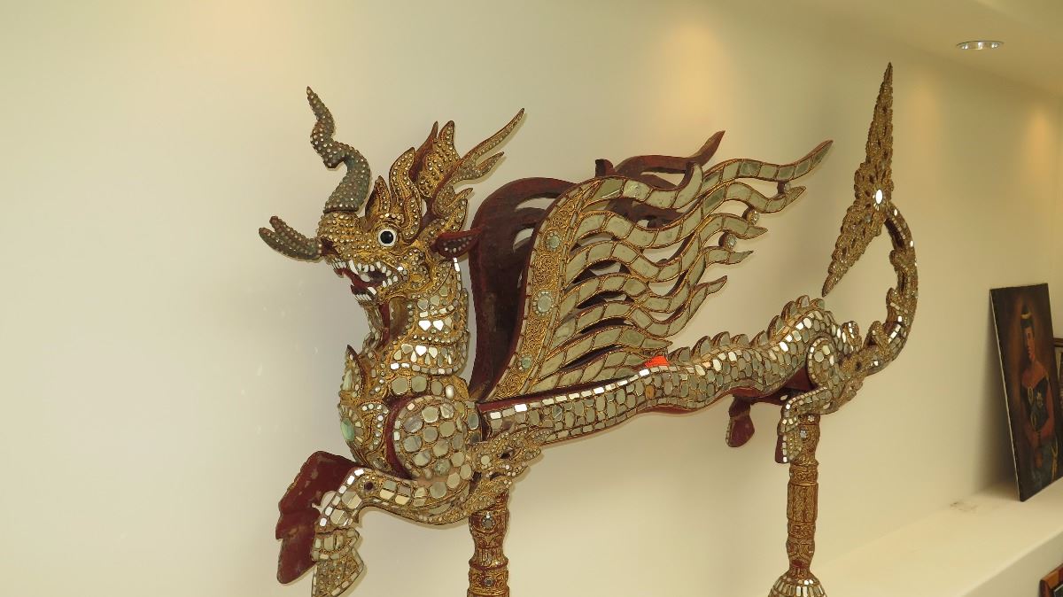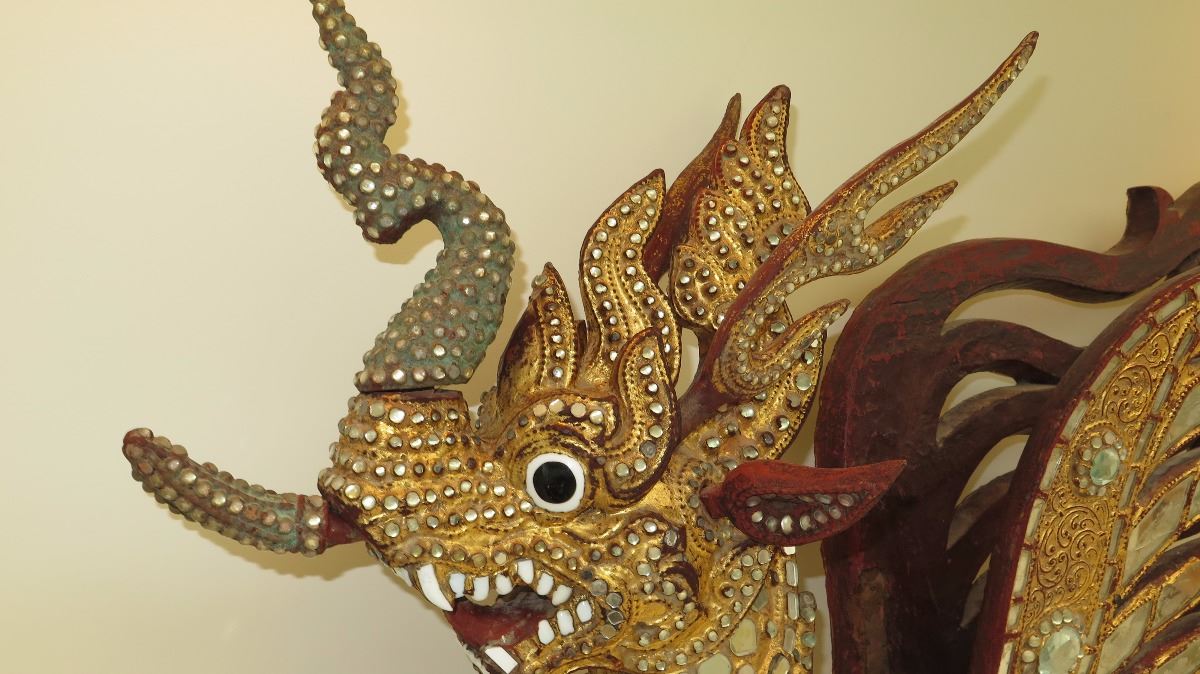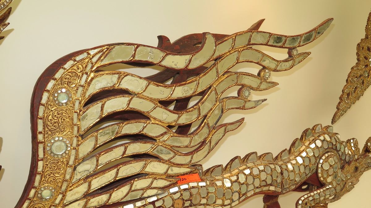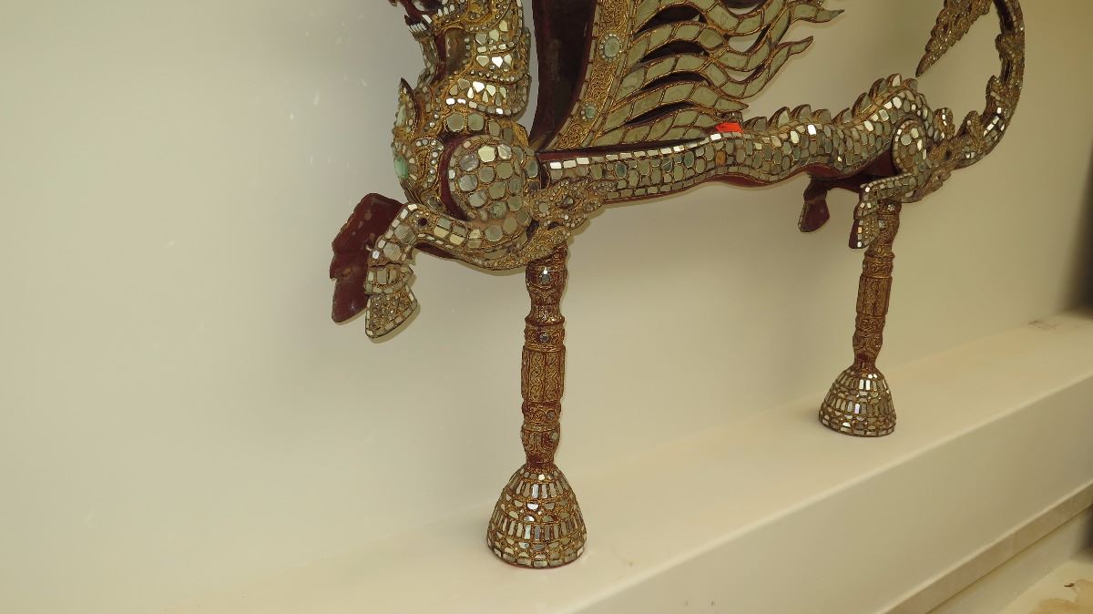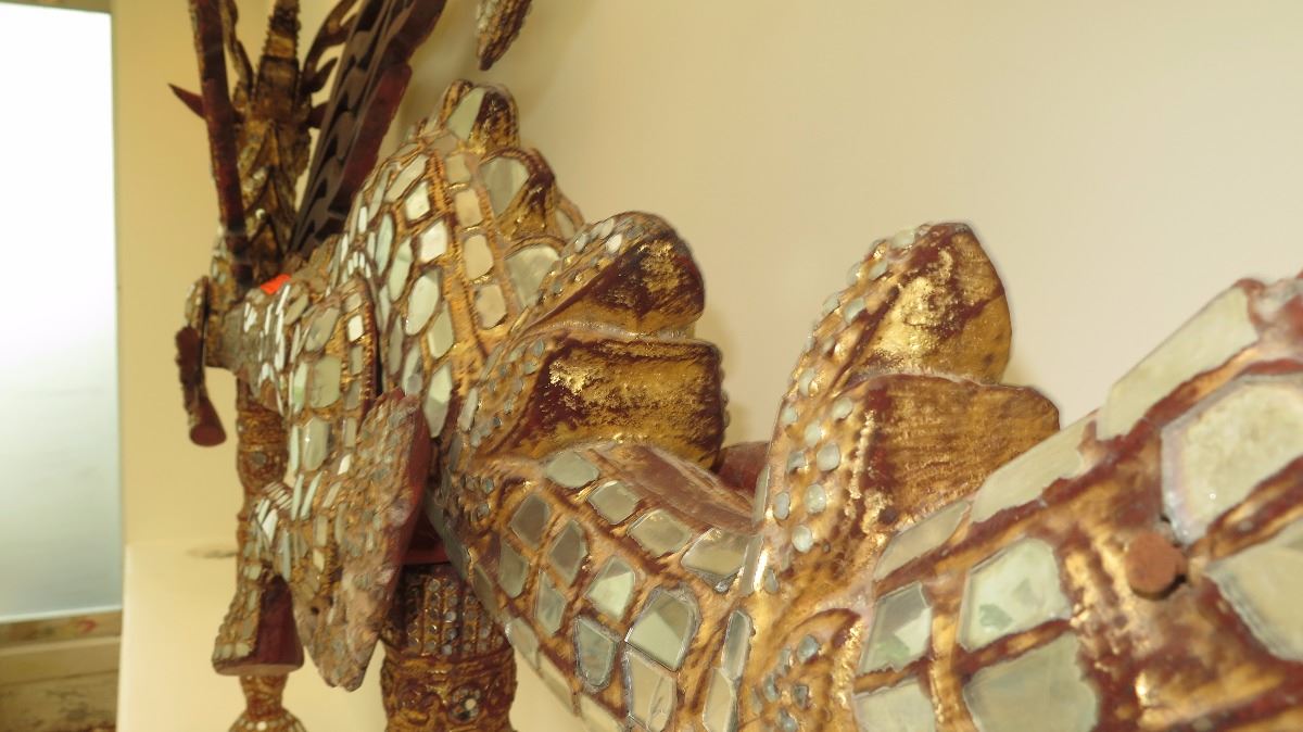 Large Thai Gold Enameled, Studded Dragon w/ Mossaic Embellishments 90X65X14