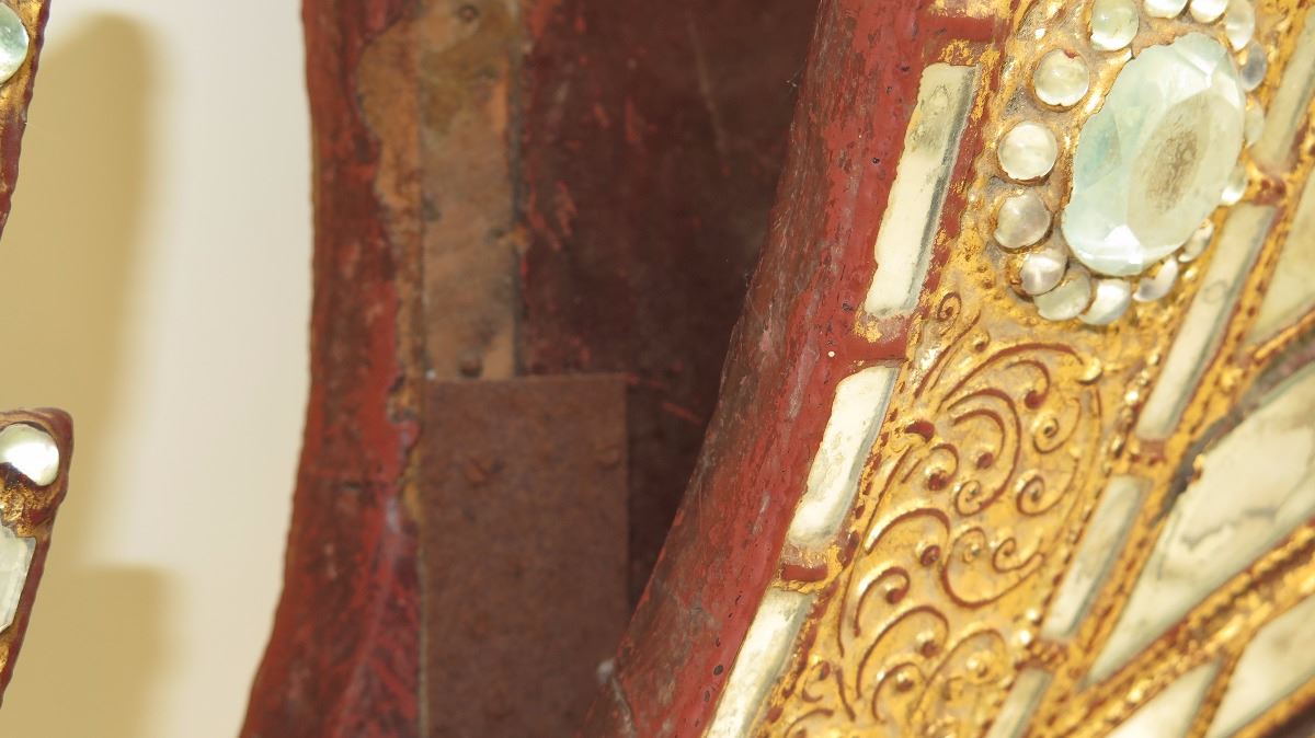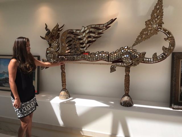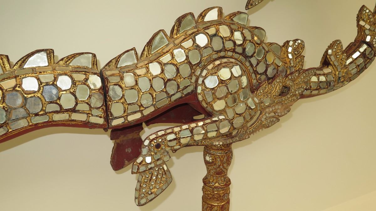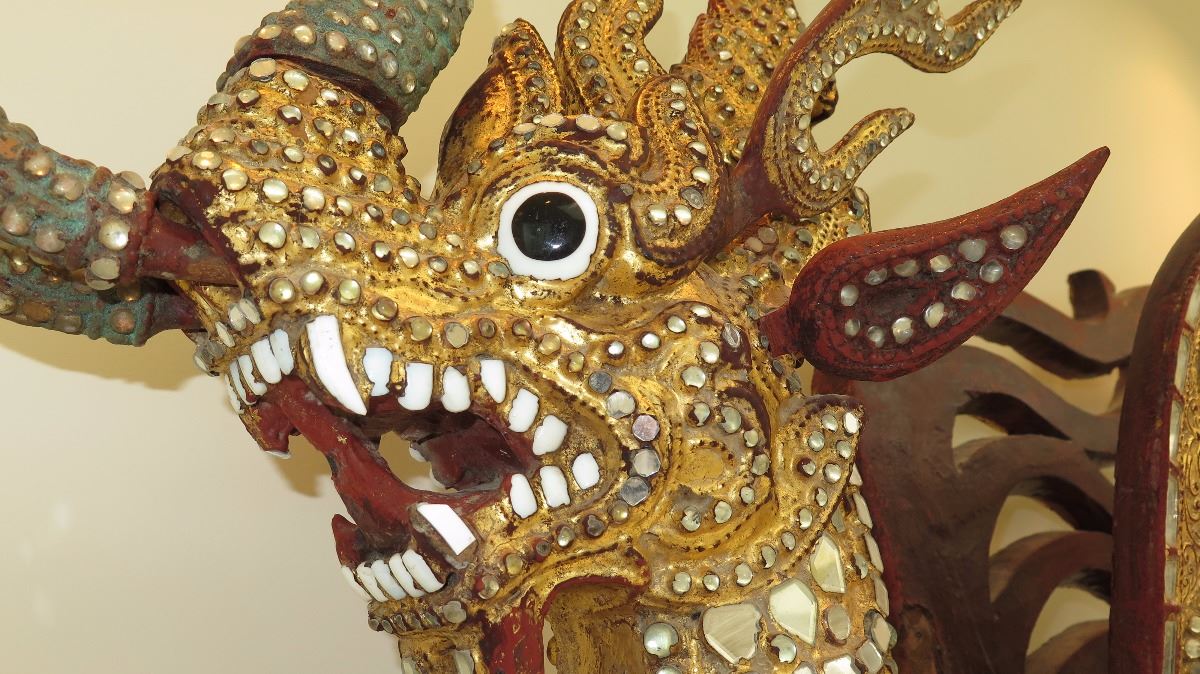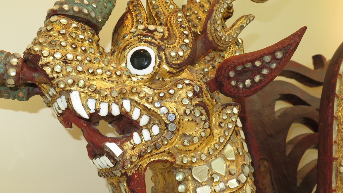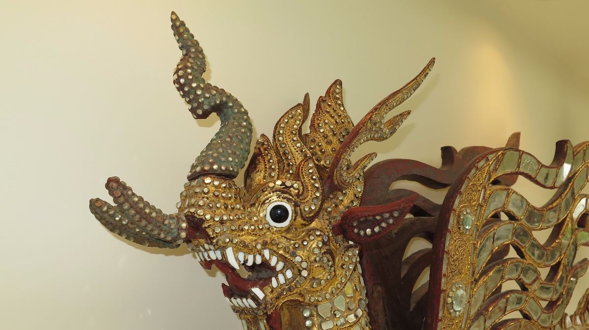 Large Thai Gold Enameled, Studded Dragon w/ Mossaic Embellishments 90X65X14
